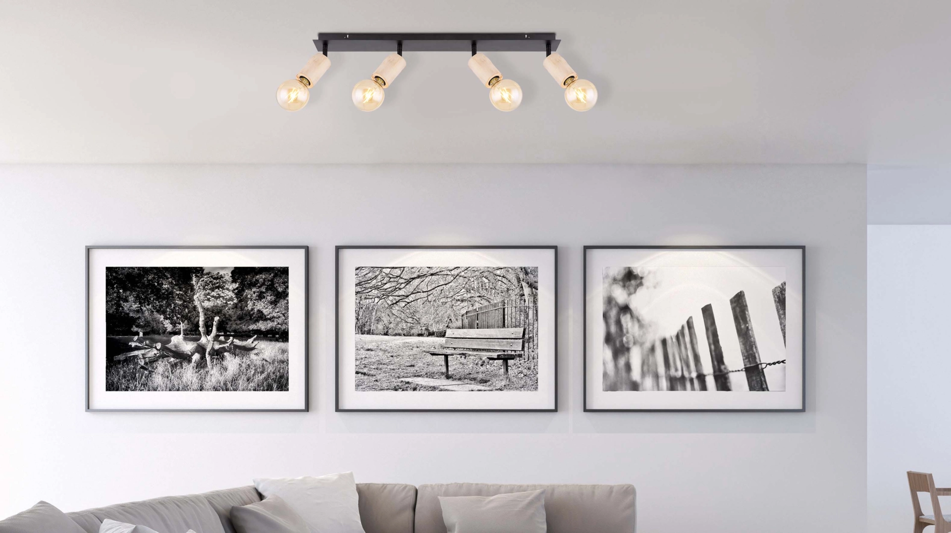 This ceiling spotlight from the Joseba series is a real eye-catcher with its beautiful design made of wood and black-matt ... Read more Read more