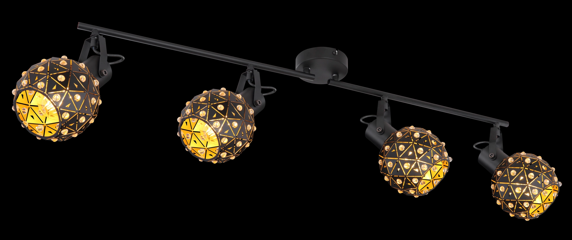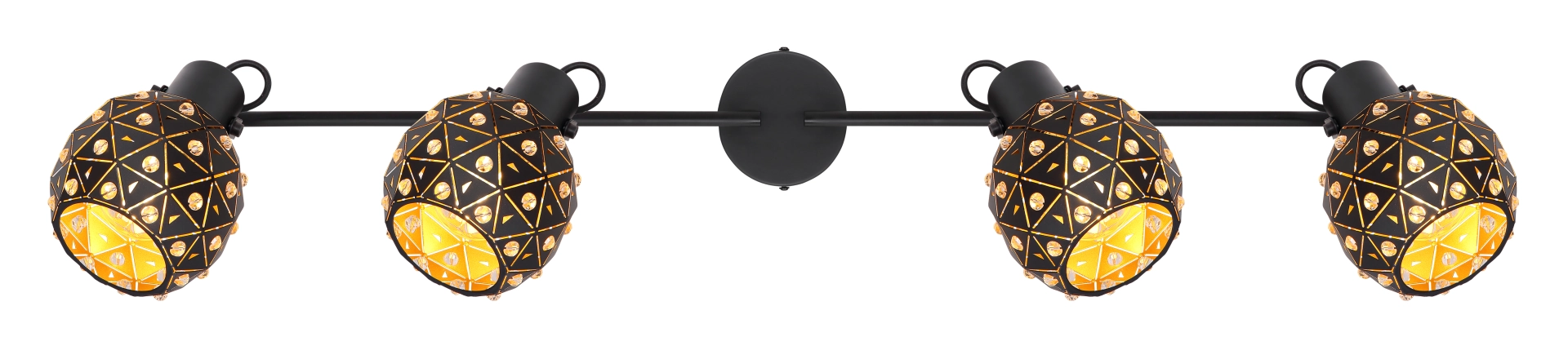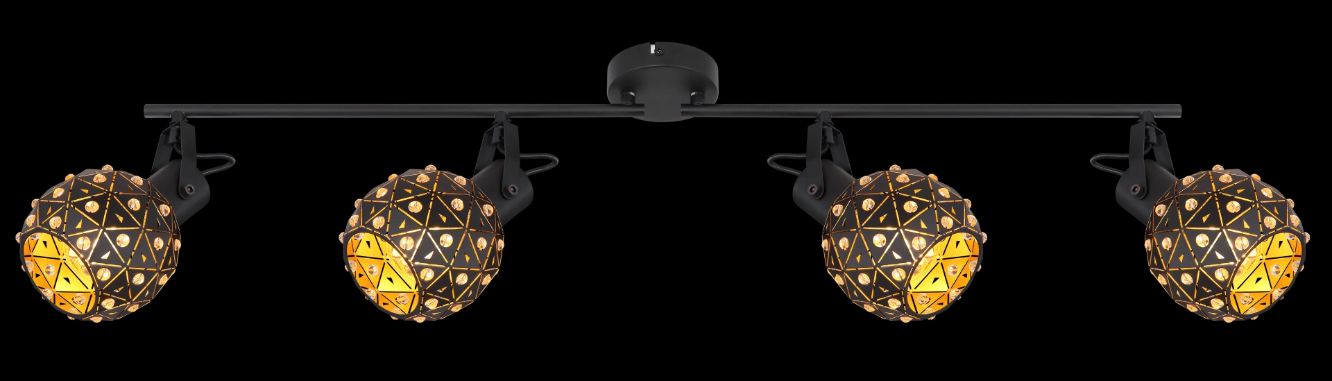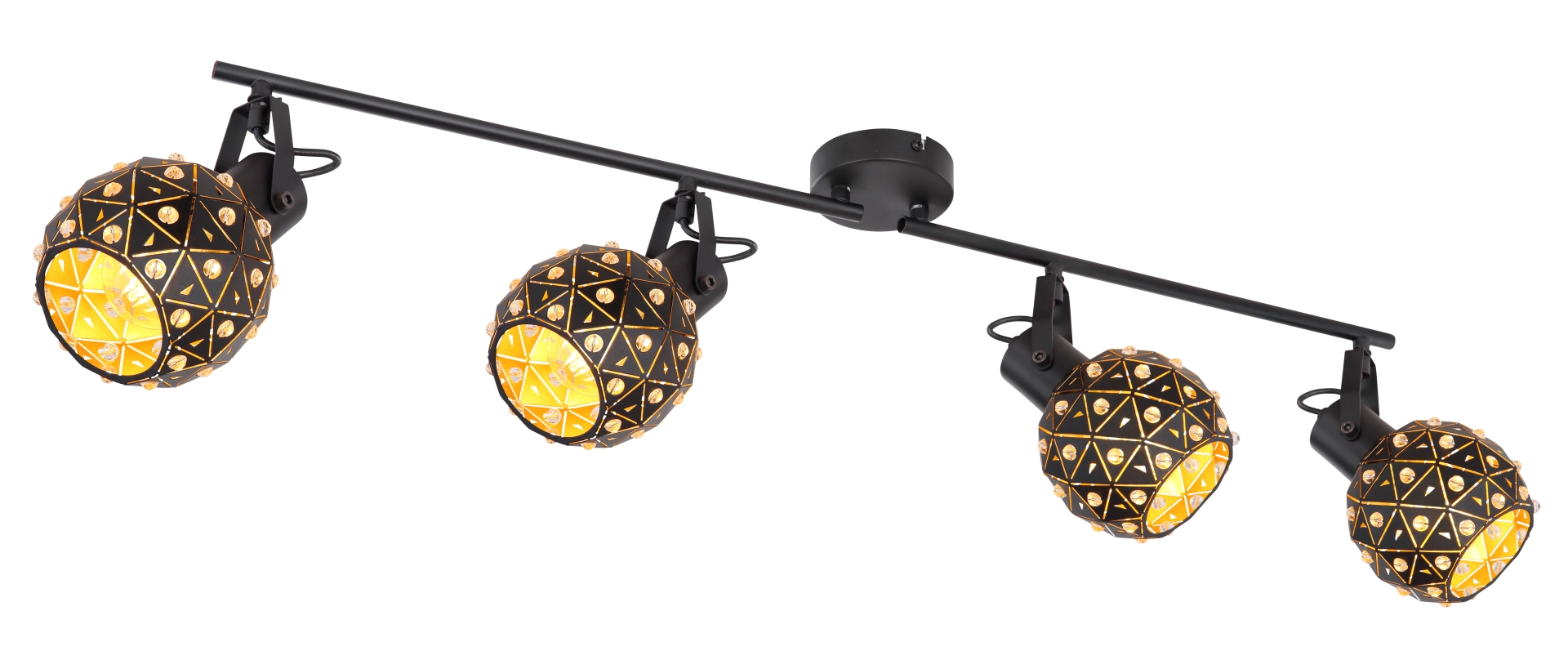 The four flamed spotlights from the Jodie series describe themselves as unusual and stylish. The black matt shade is set with many beautiful K9 crystals, which give your home a very special flair. Since the light source (E27 max. 40 W) is freely selectable, you can decide for yourself in which light color or light intensity your four walls shine. Furthermore, the shades are adjustable to create an optimal lighting result.