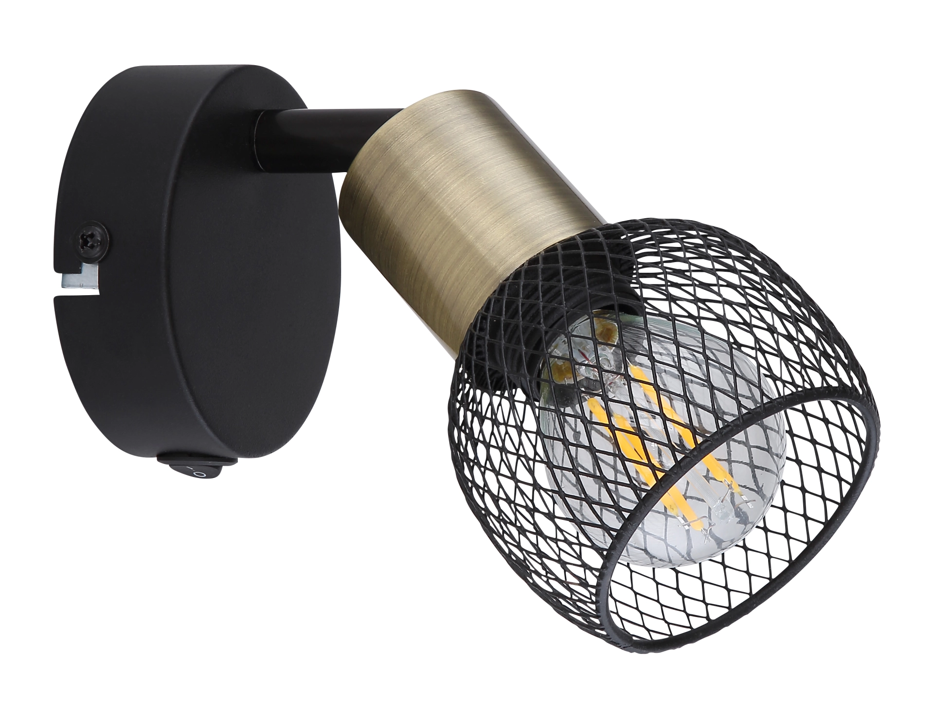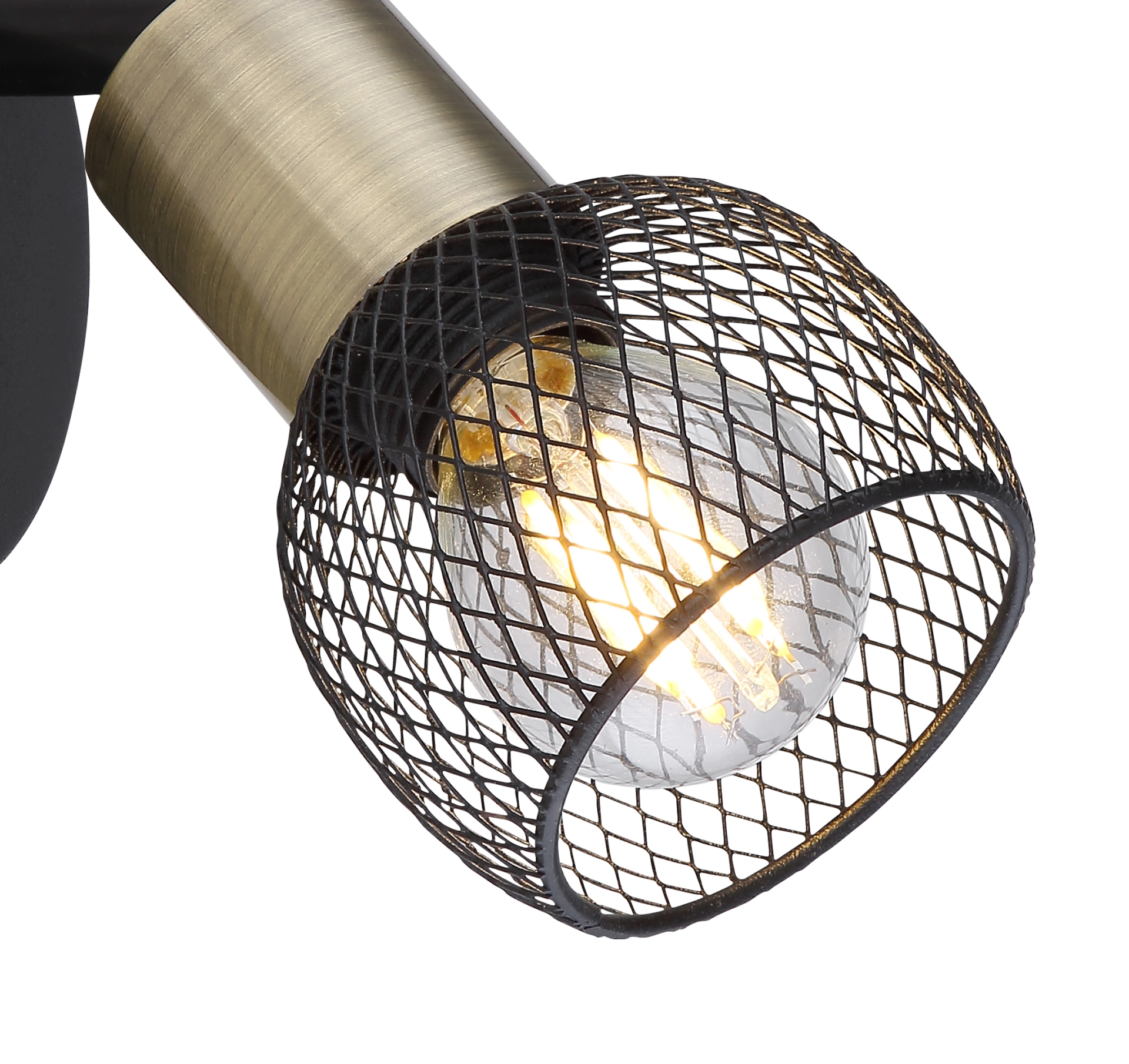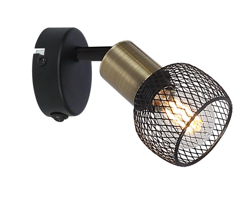 This ceiling spotlight from the Fiastra series convinces with its elegant design made of black-matt metal and old brass. The metal grid shade can be equipped with an E14 bulb of your choice, which gives you the opportunity to determine light color and brightness as you wish. In addition, the spotlight has an included switch that allows convenient switching on and off. With more articles of the Fiastra series you can complete the overall picture of your interiors.