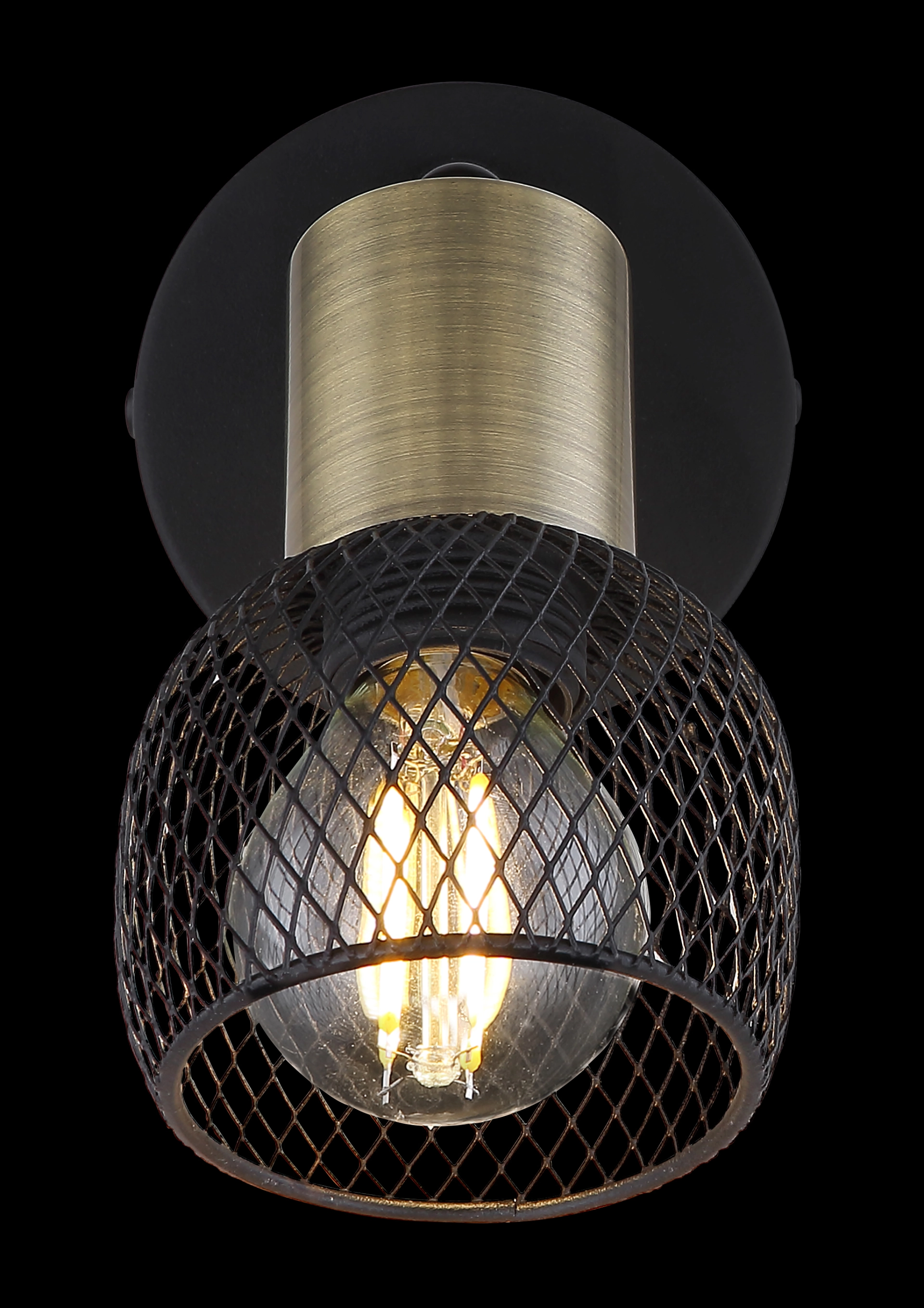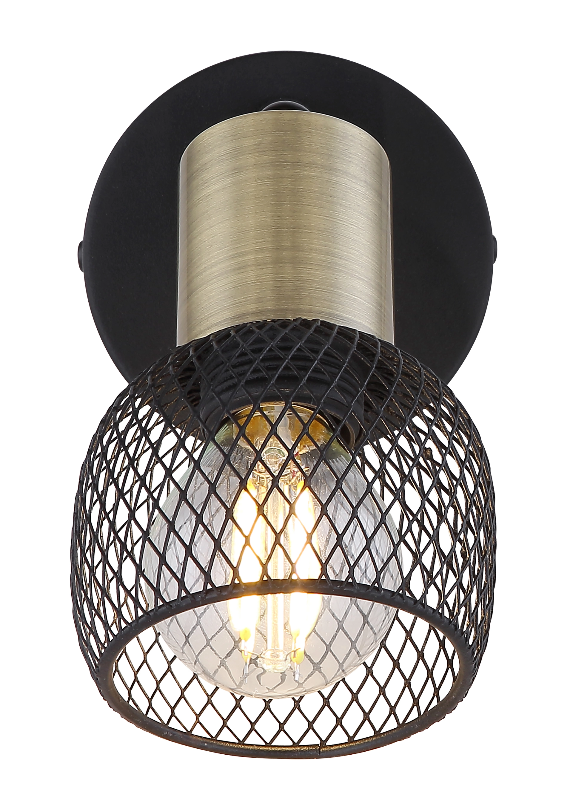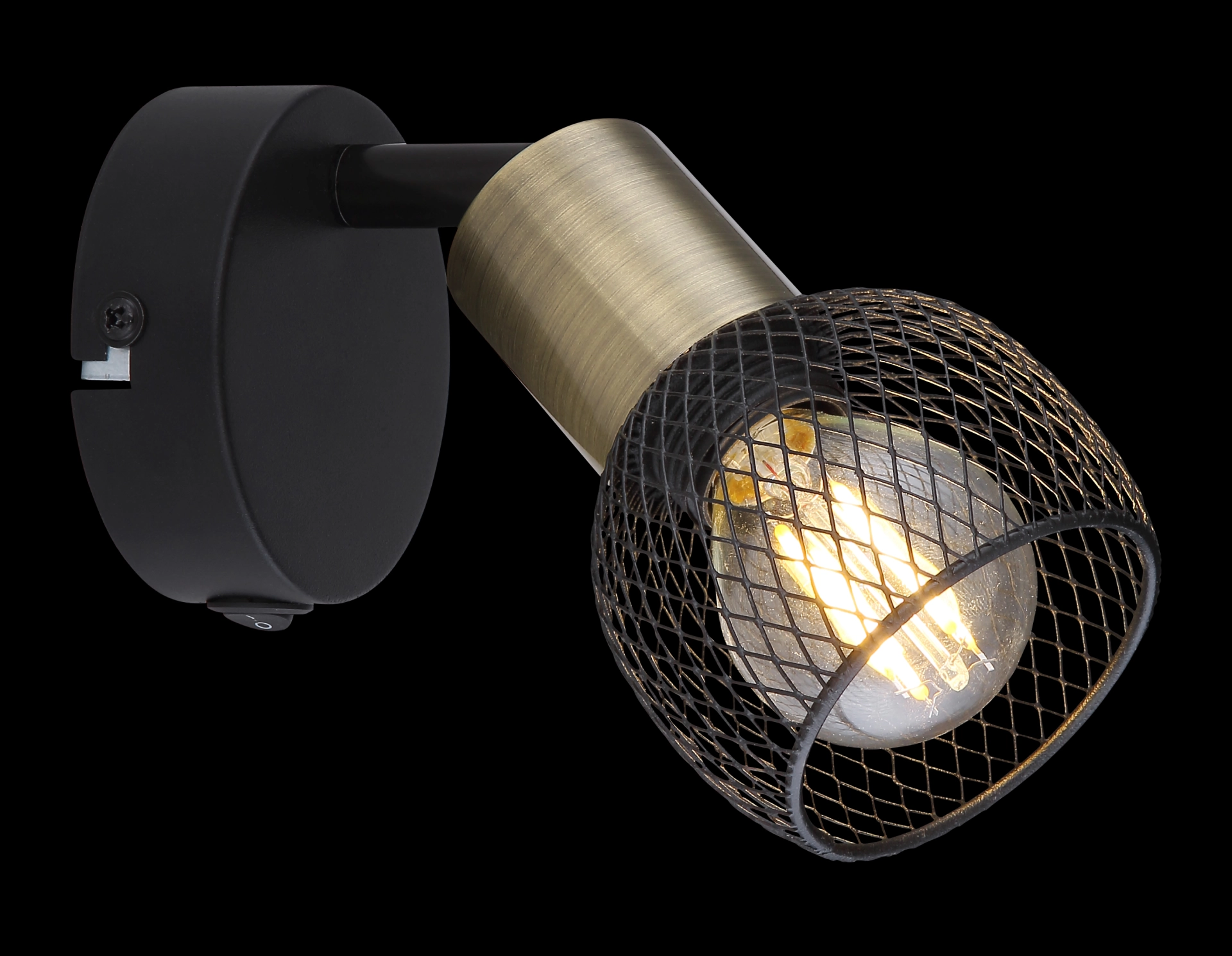This ceiling spotlight from the Fiastra series convinces with its elegant design made of black-matt metal and old brass. The metal grid shade can be equipped with an E14 bulb of your choice, which gives you the opportunity to determine light color and brightness as you wish. In addition, the spotlight has an included switch that allows convenient switching on and off. With more articles of the Fiastra series you can complete the overall picture of your interiors.