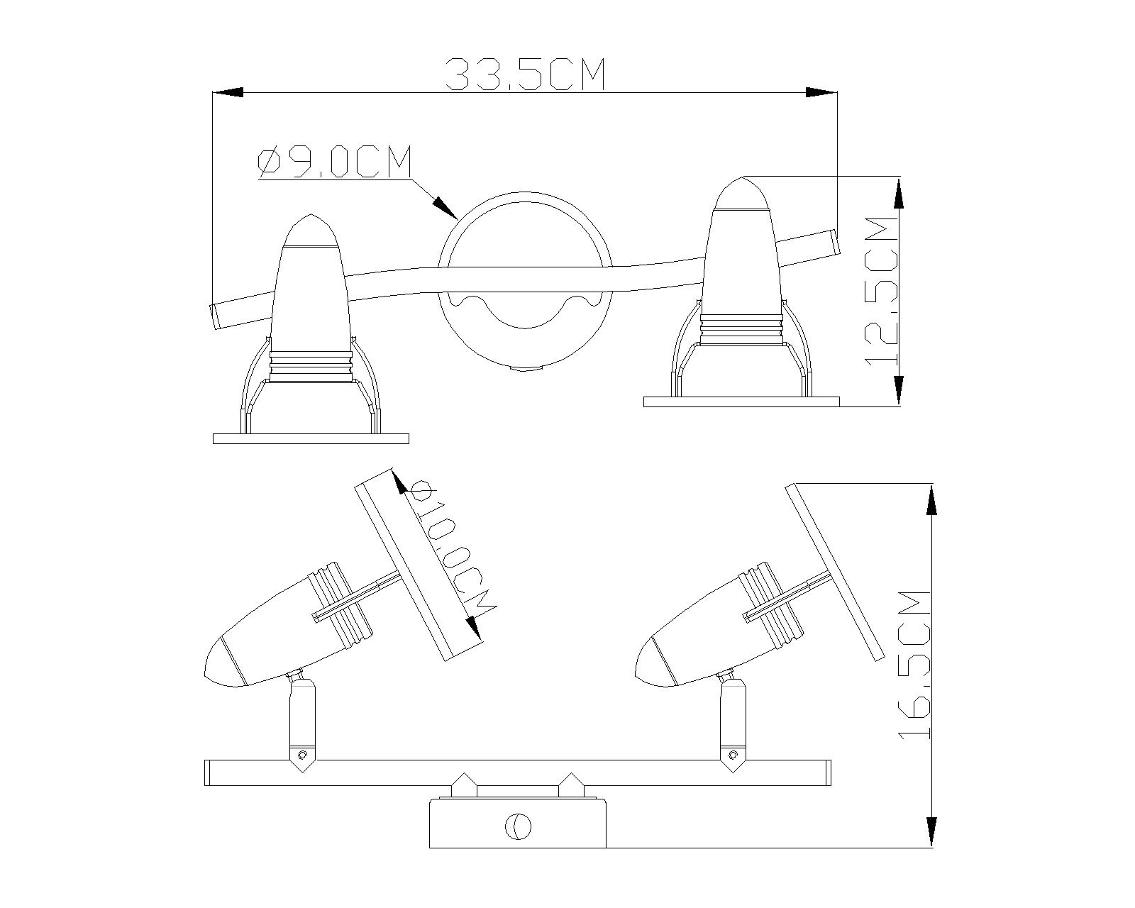 The classic double spotlight from the Frances I product family is made of chrome-plated and nickel-matt metal and clear plastic. The two movable spots of this wall or ceiling spotlight are attached to a beautifully curved fixed arm and each has an E14 socket, which leaves you to choose the right R50 bulb (max. 40W). Due to their power savings and longevity, we recommend LED lamps.