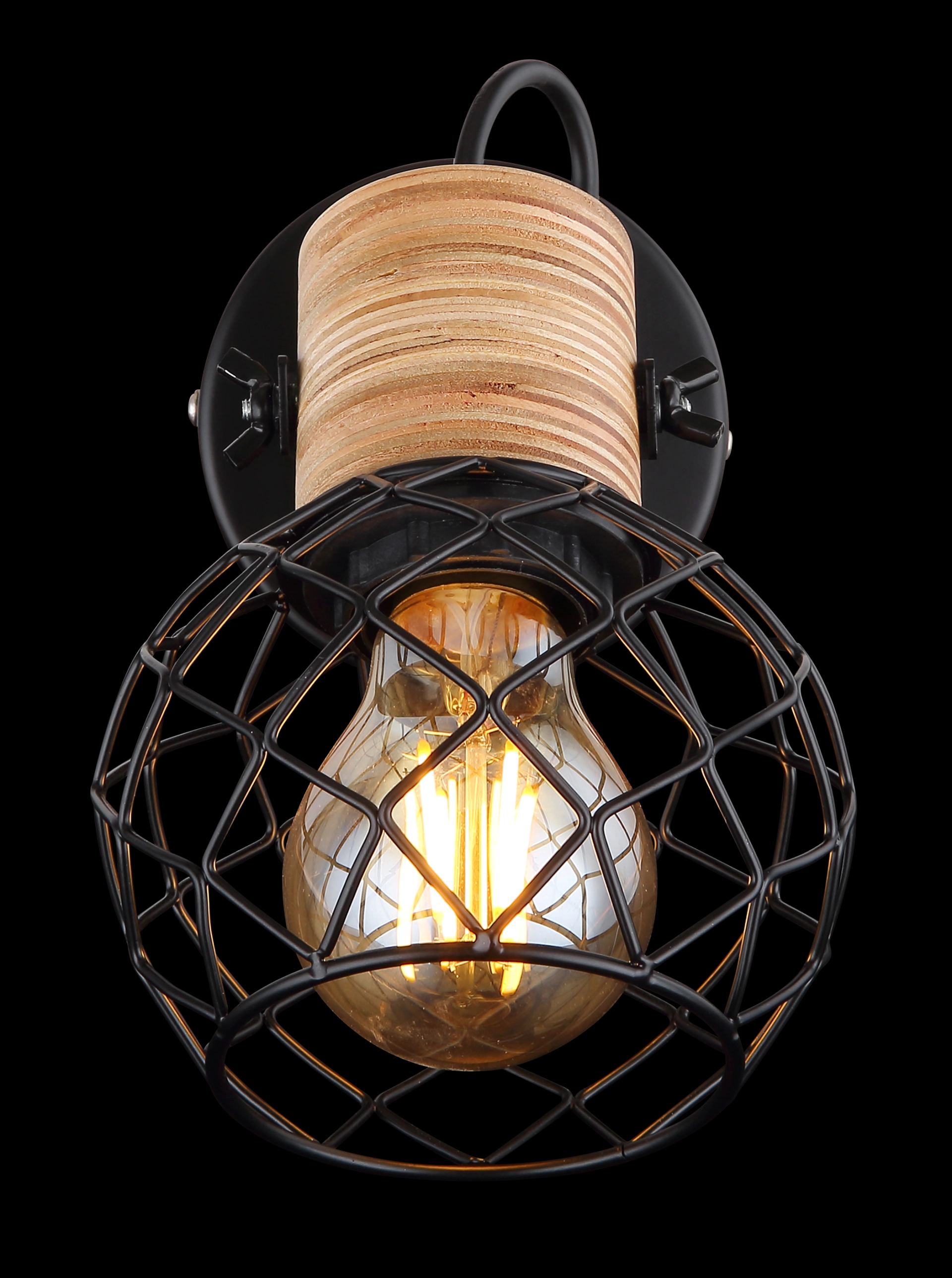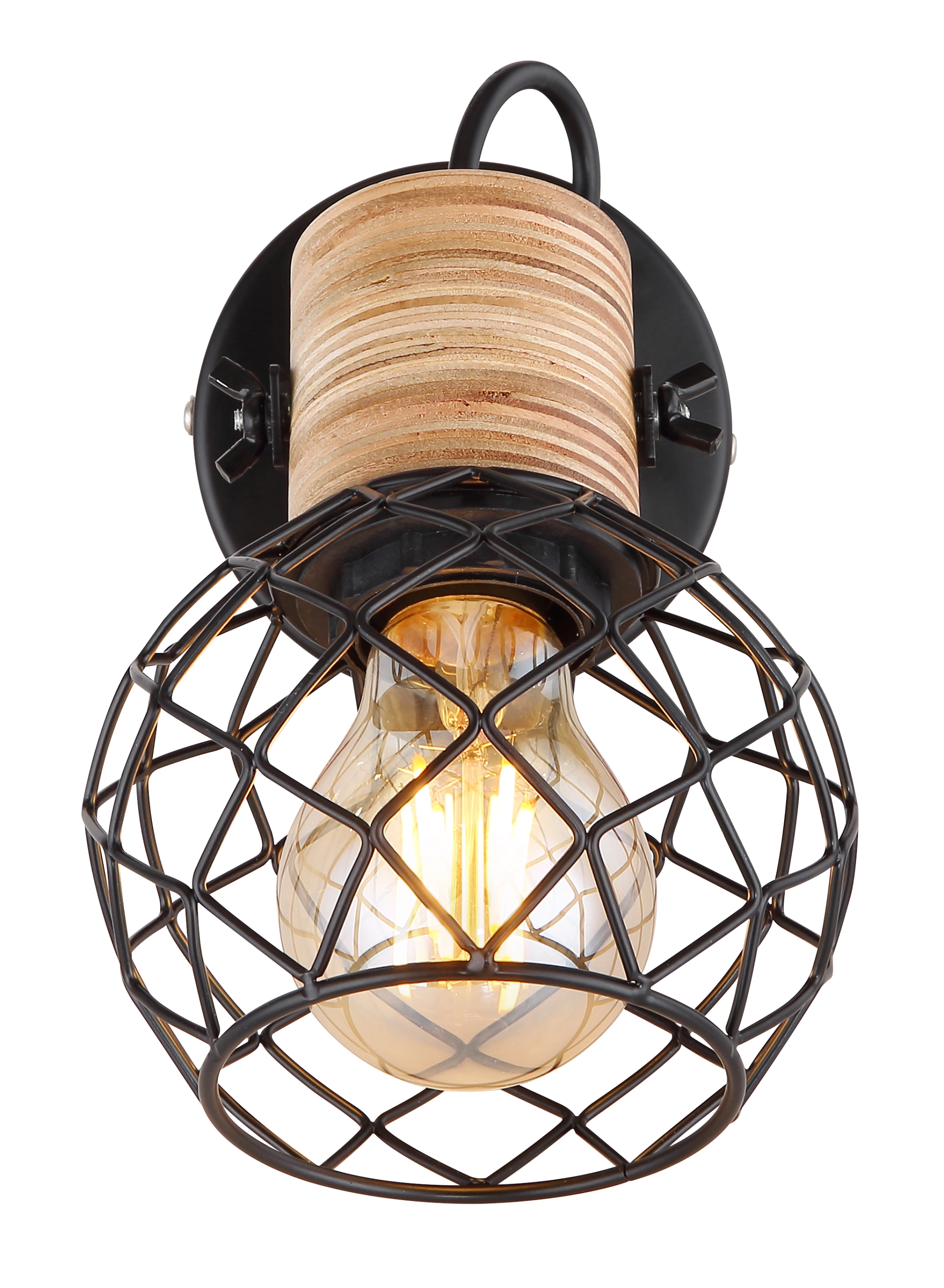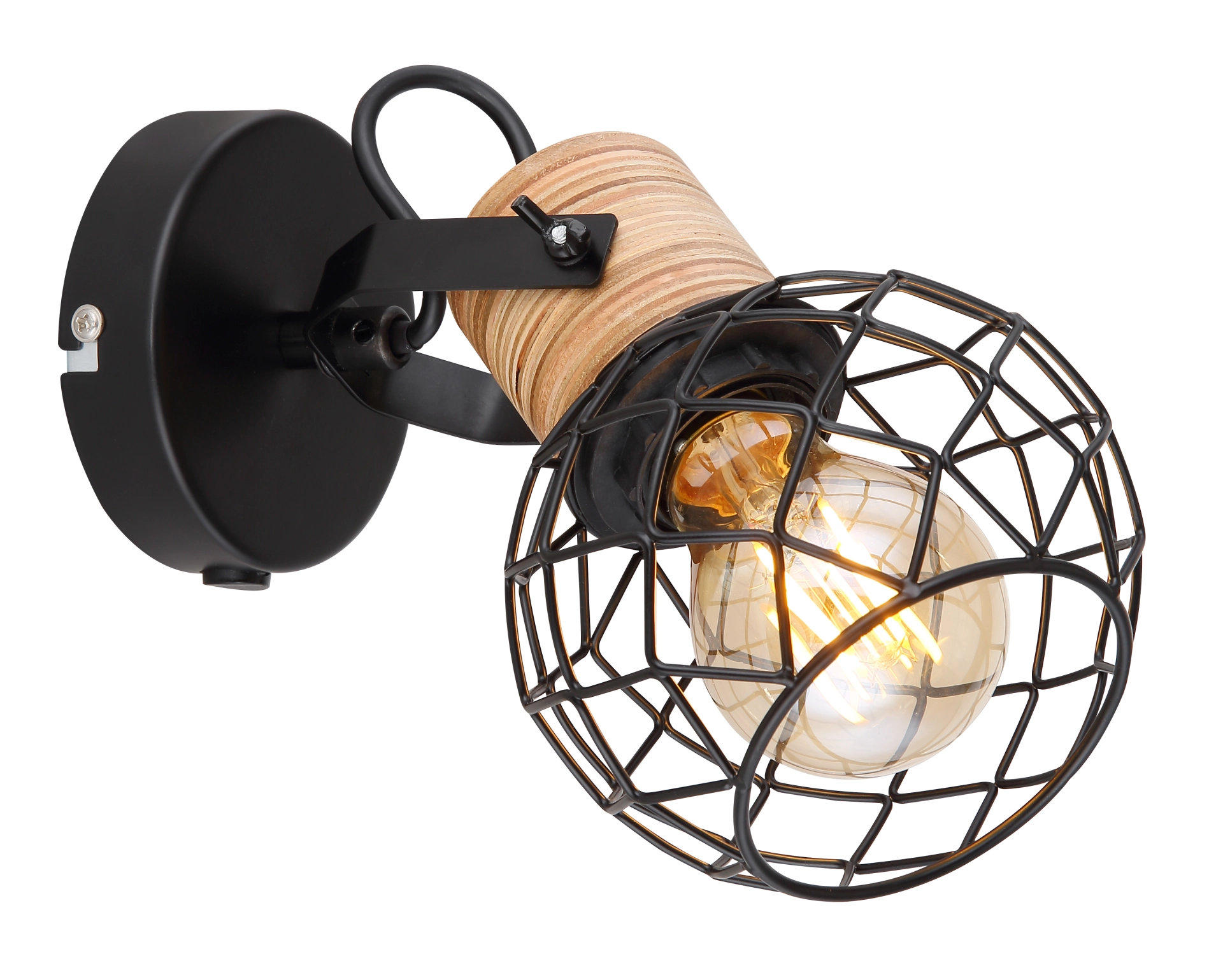 This spotlight from the Lacky series (12x17.5 cm) is a stylish addition to your interiors. It consists of a wood-framed E27 socket with a curved metal grid shade, which you can equip with a suitable bulb of your choice, which allows you to individually determine light color and brightness. With other models of the same series, you can complete the overall picture in your four walls.
