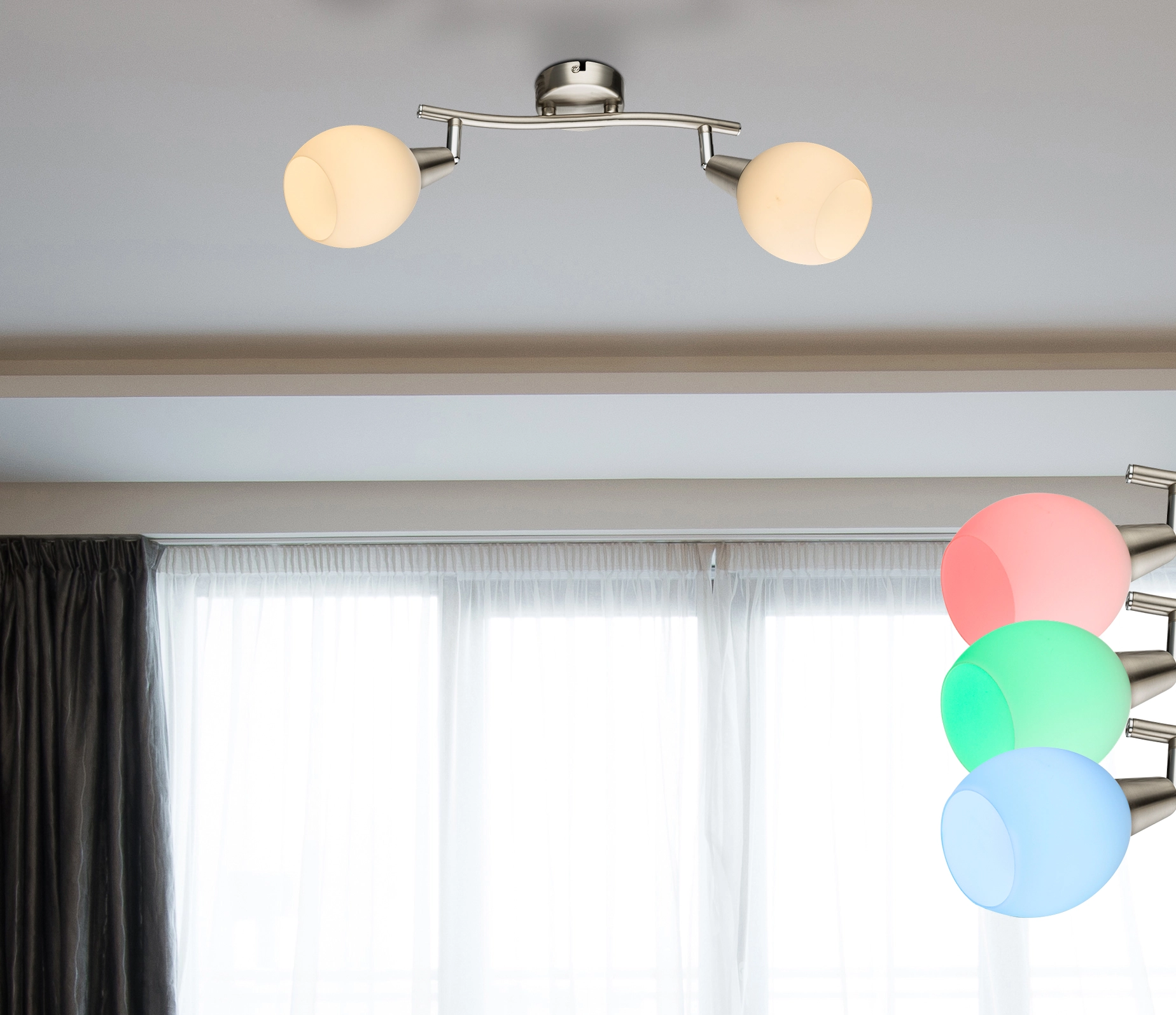 "This first-class nickel-matt ceiling spotlight, from the Elliot series, convinces with its many functions. The two white glass spotlights are ... Read more Read more