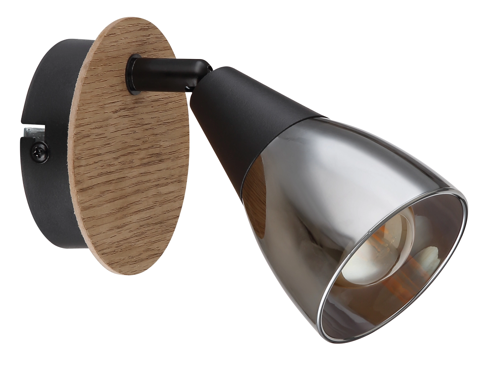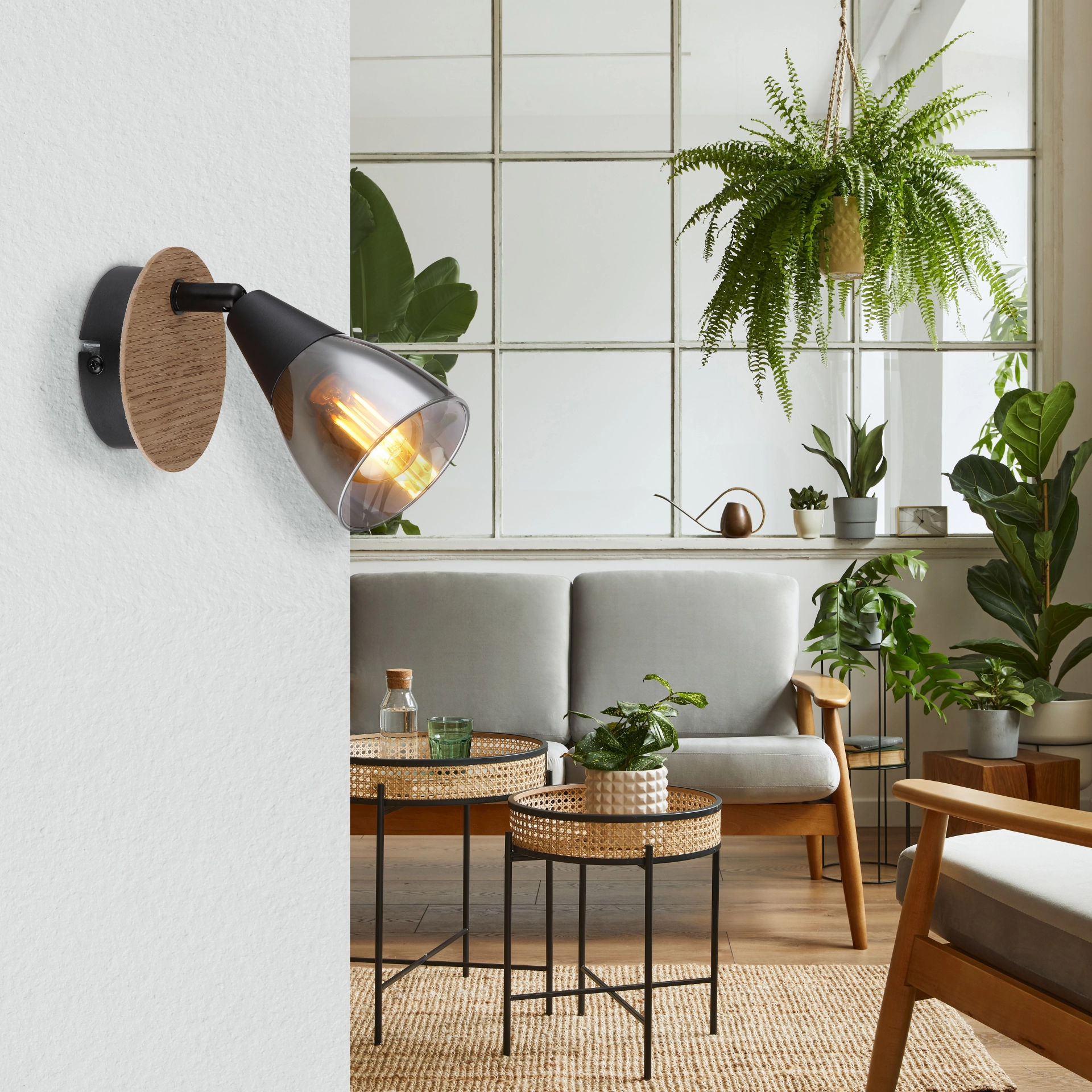 Discover the natural beauty of MUBBY! Our spotlights combine black matt metal, brown wood and smoked glass to create a unique design. With dimensions of 80x130mm (width x height) and a length of 160mm, the MUBBY spotlight fits perfectly into any environment. The noble contrast of metal and wood gives your room a warm and welcoming atmosphere. The E14 socket allows you to determine the light colour and brightness yourself up to a maximum power of 25 watts. Immerse yourself in the world of MUBBY and let your home shine in a pleasant light!
