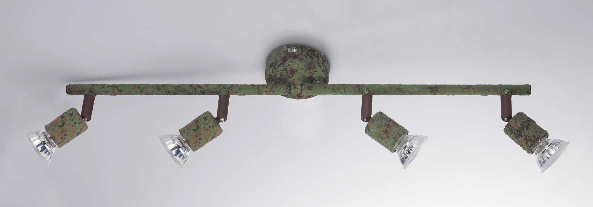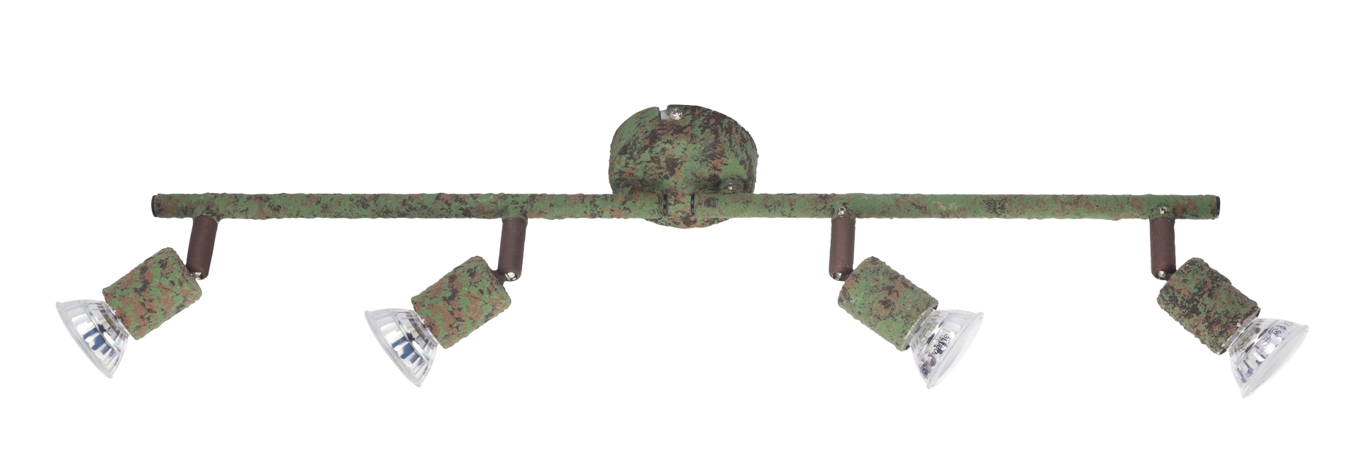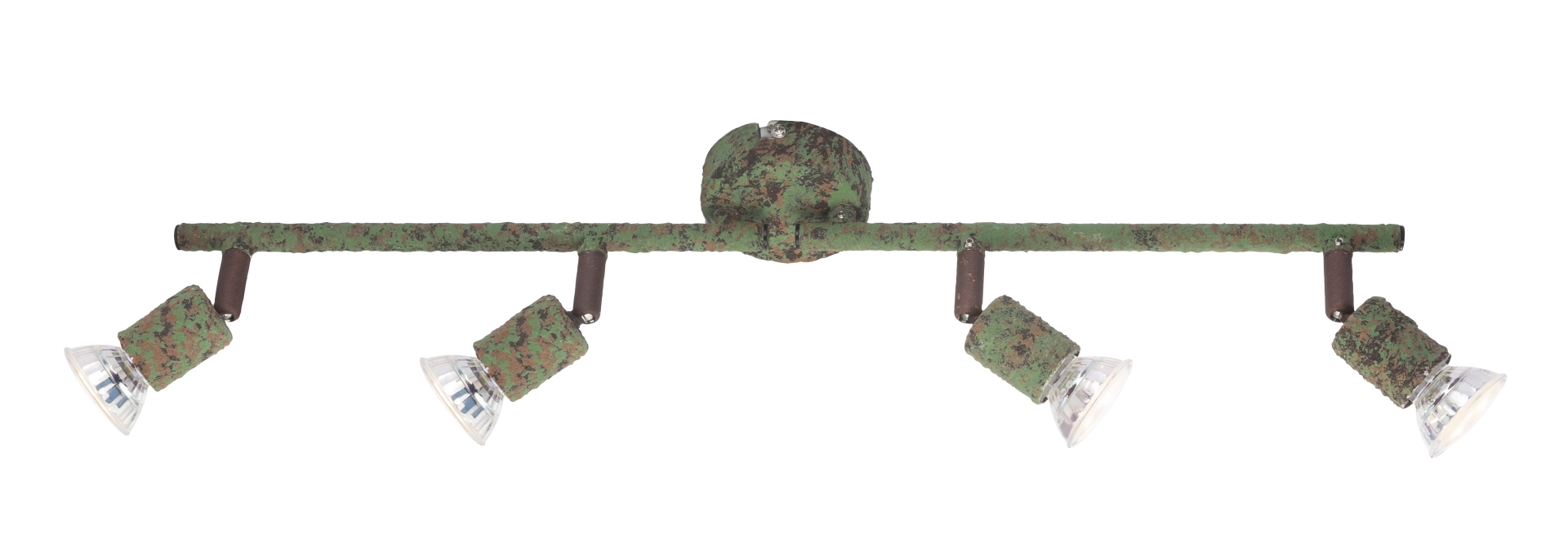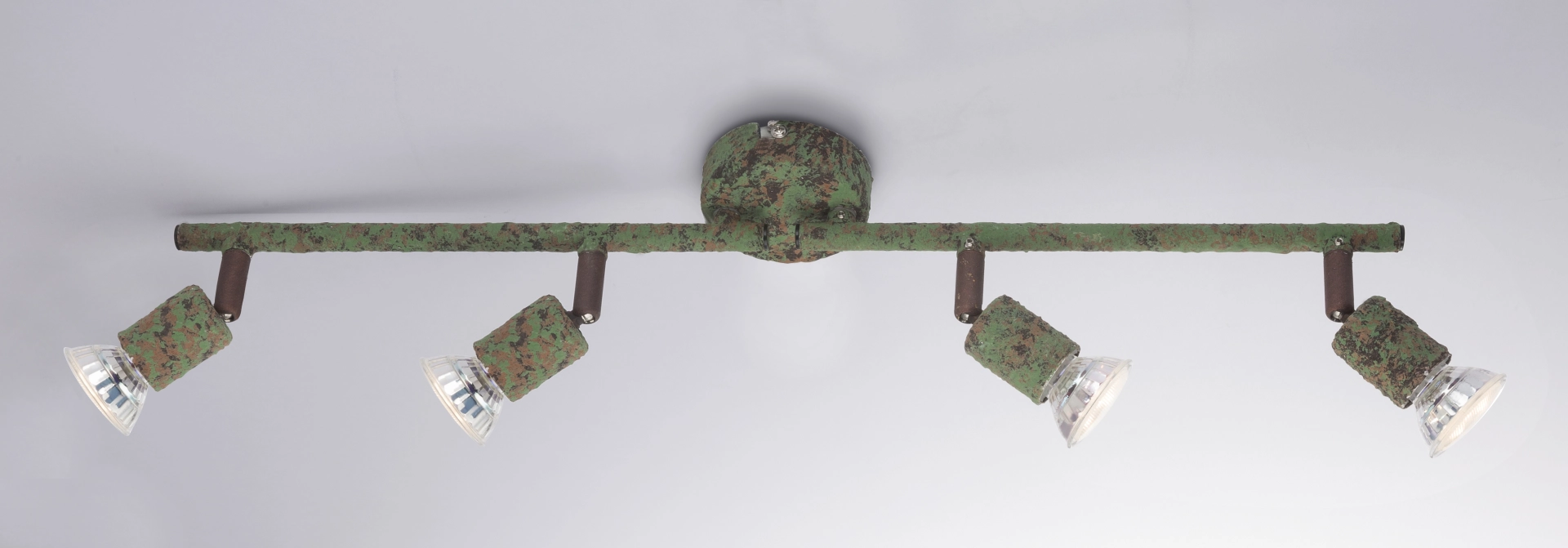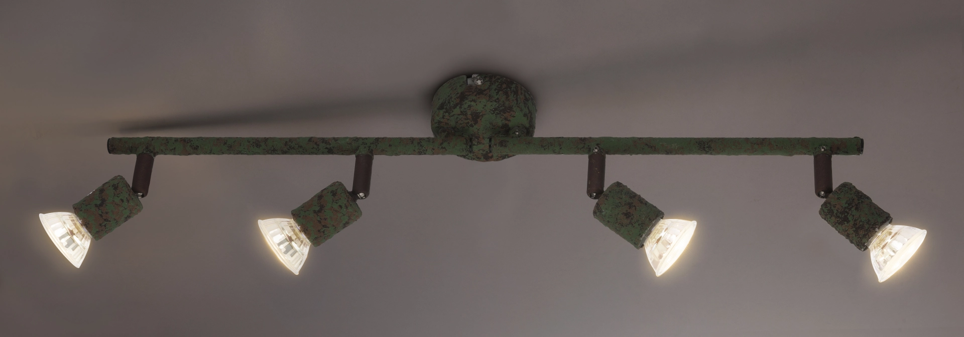 The ceiling spotlight of the Olana series clearly scores with its individual design. Made of rust-colored green metal, this spotlight gives your premises a special touch. The four movable spots, attached to two straight arms, each have a 3W GU10 LED bulb, which together provide 1000 lumens of strong light with a pleasant 3000K warm white light color. With other spotlights of the same model series you can complete the picture in your premises.