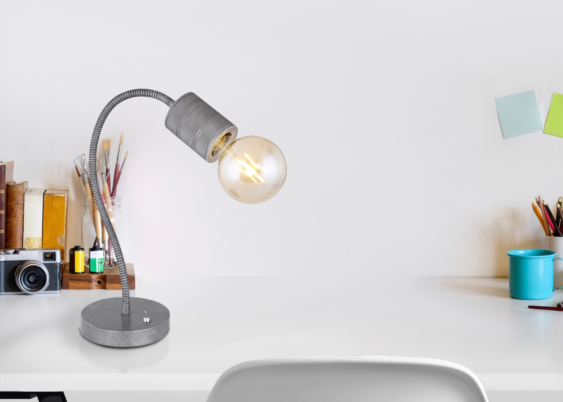 This 59 cm table lamp from the Freddy series is a wonderful addition to your interiors. It consists of a flexible metal rod with an E27 frame framed by silver metallic colored aluminum. You can equip them with a suitable light source of your choice, which gives you the opportunity to determine the light color and brightness according to your ideas. In addition, the table lamp has an included switch with which it can be conveniently switched on and off. With further models of the same series, you can complete the overall picture in your four walls and provide a stylish ambience.