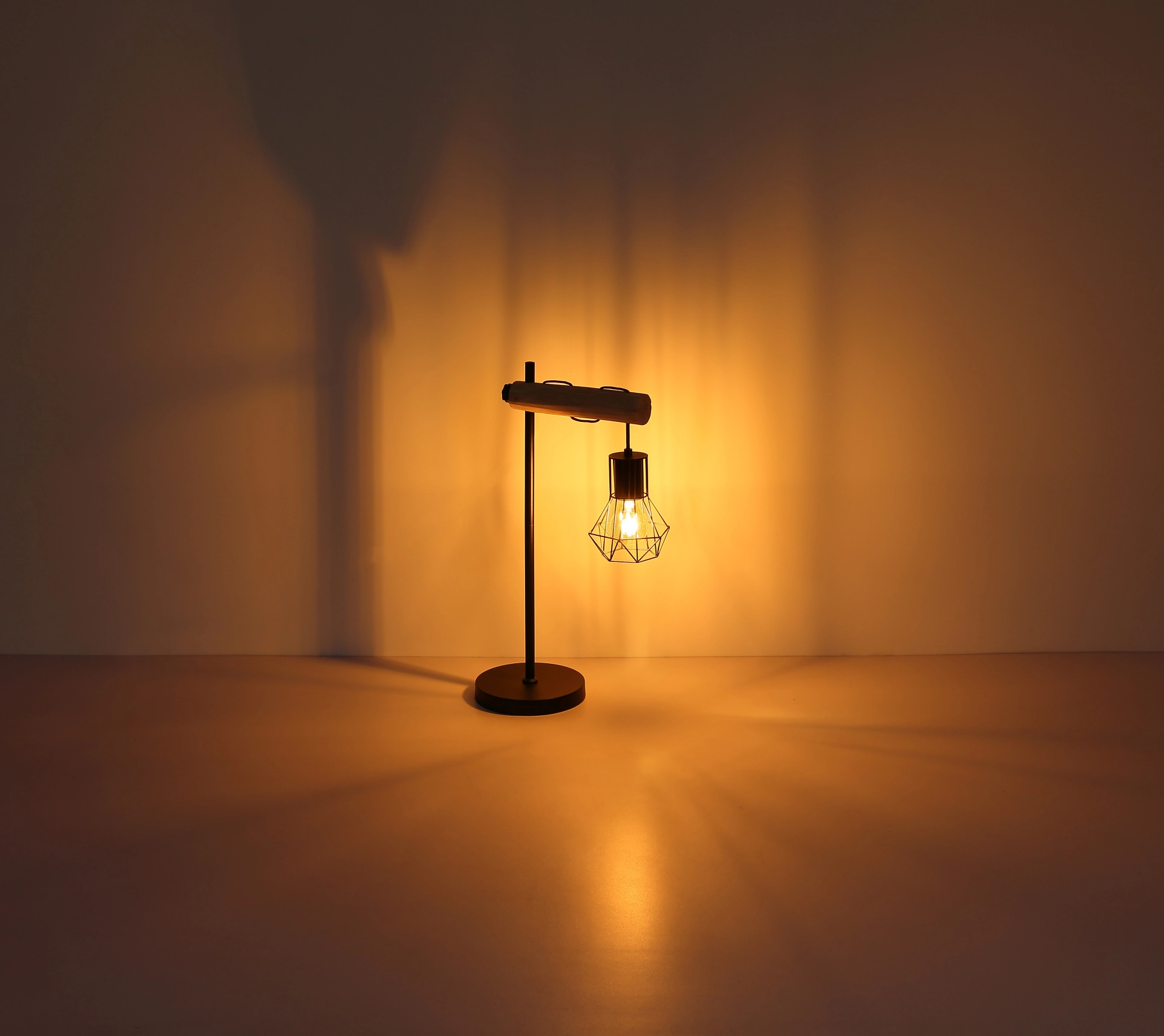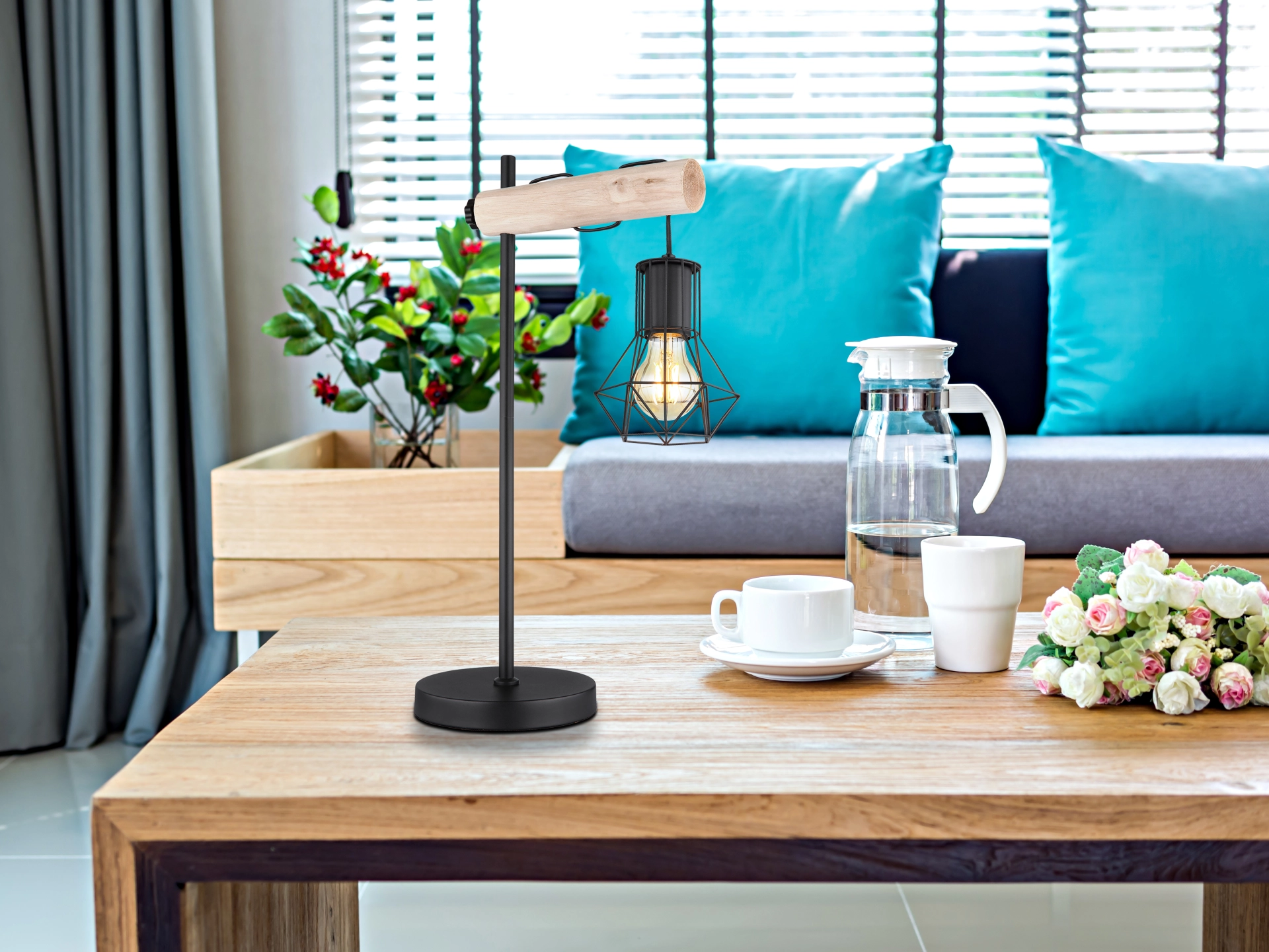 This great table lamp inspires with beautiful design. From a round base protrudes a 55 cm long black metal rod ... Read more Read more