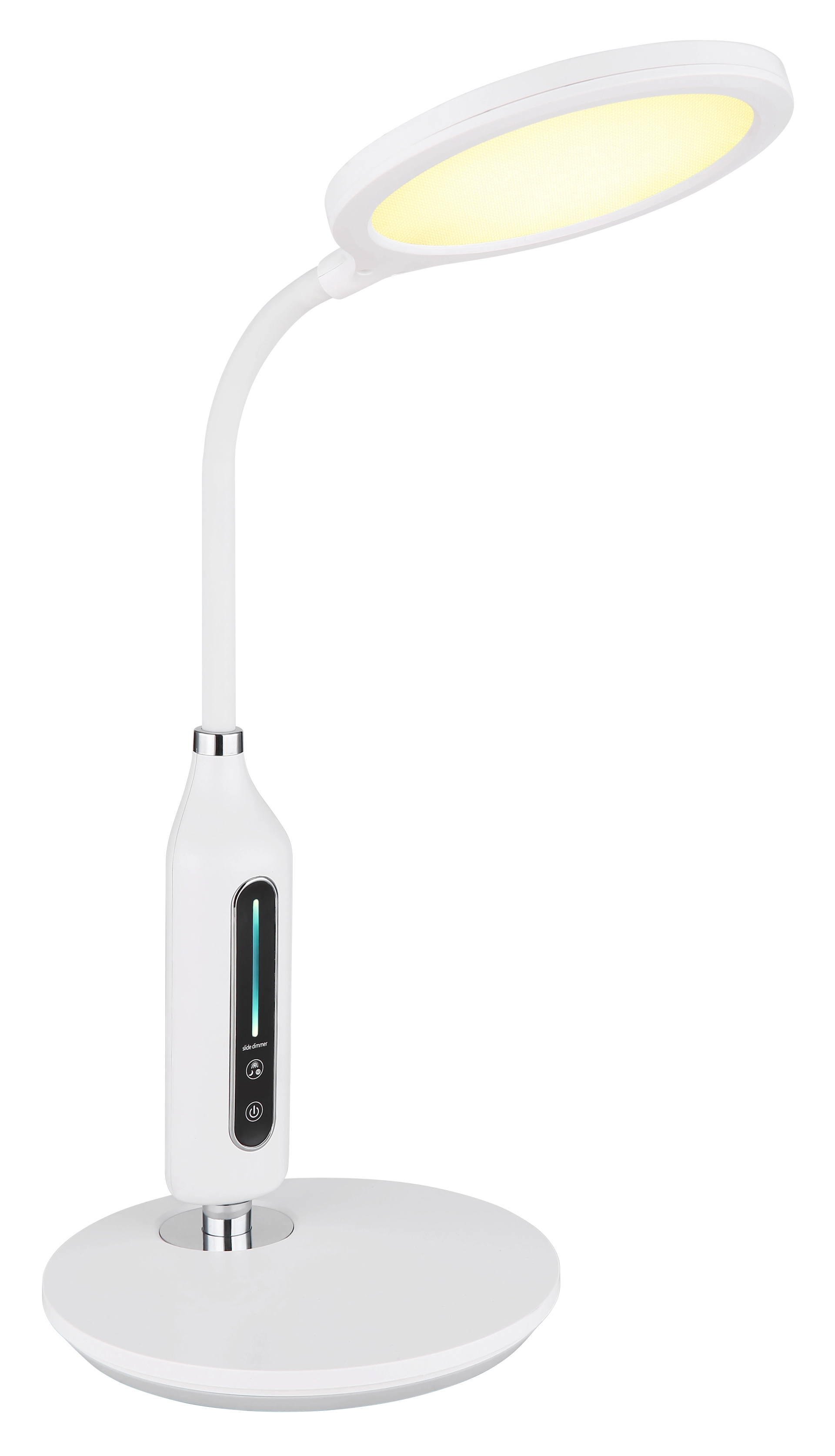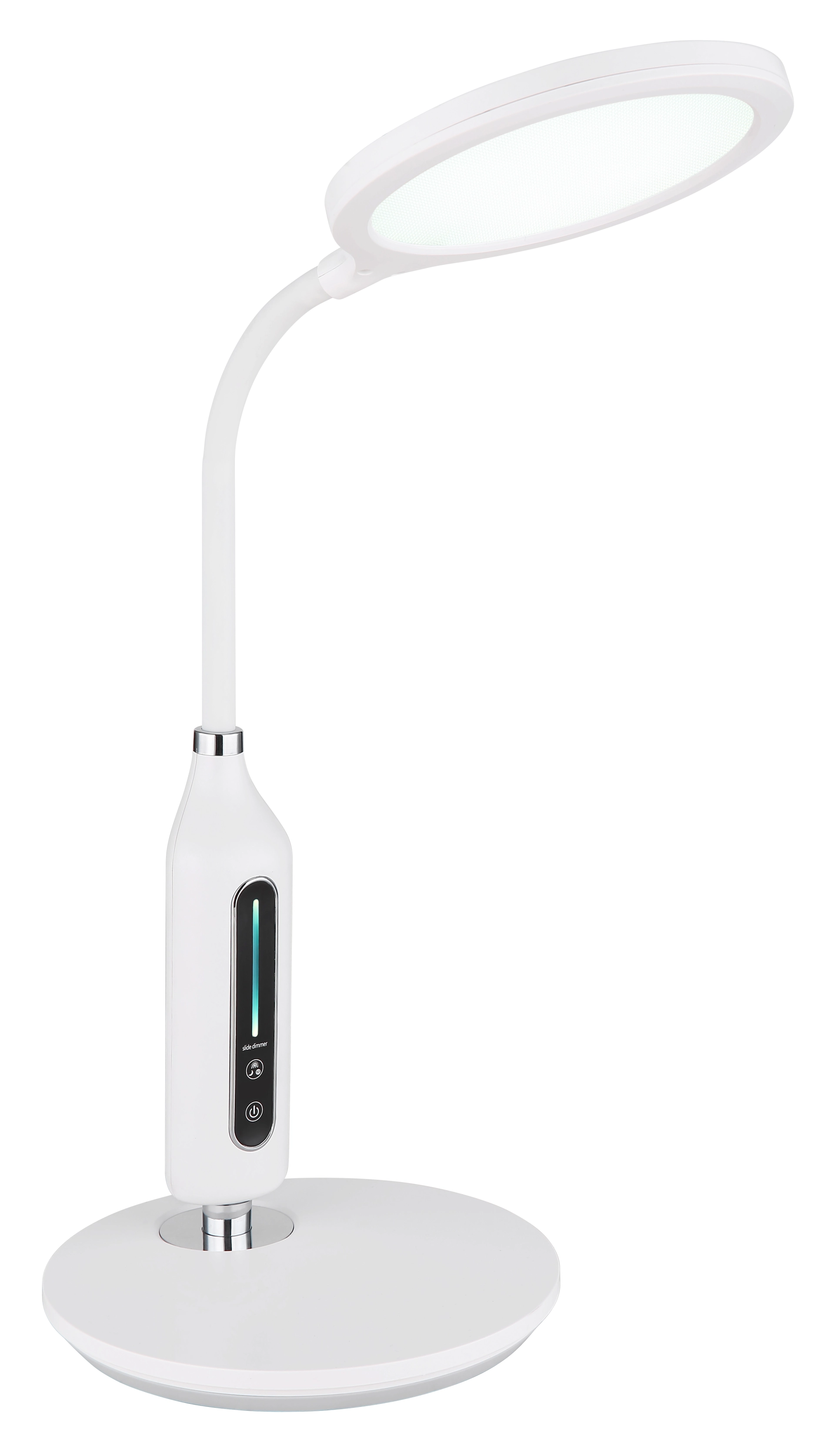 The modern table lamp of the FRUGGY series inspires with a beautiful design and its functions. The chrome-plated table lamp ... Read more Read more