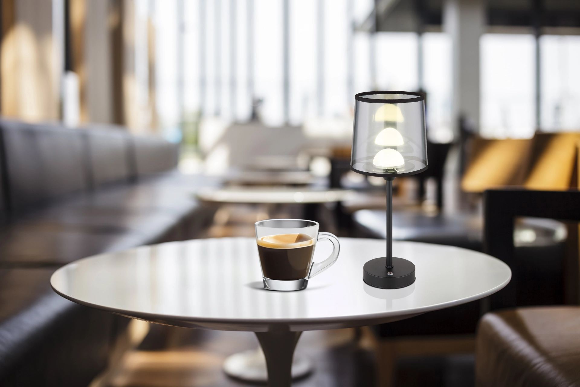 The LUNKI table lamp impresses with its modern design and innovative features. The housing made of matt black metal in ... Read more Read more