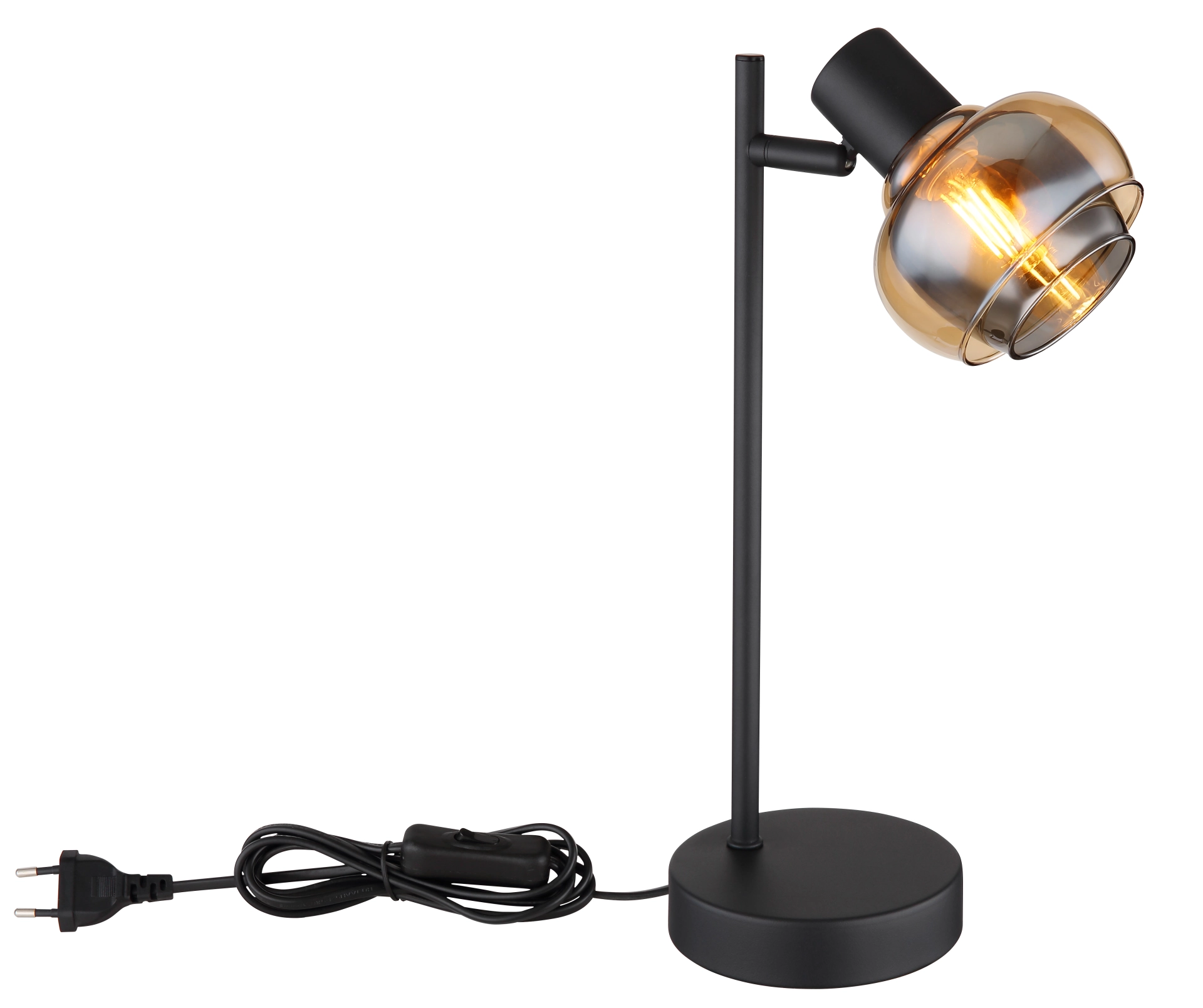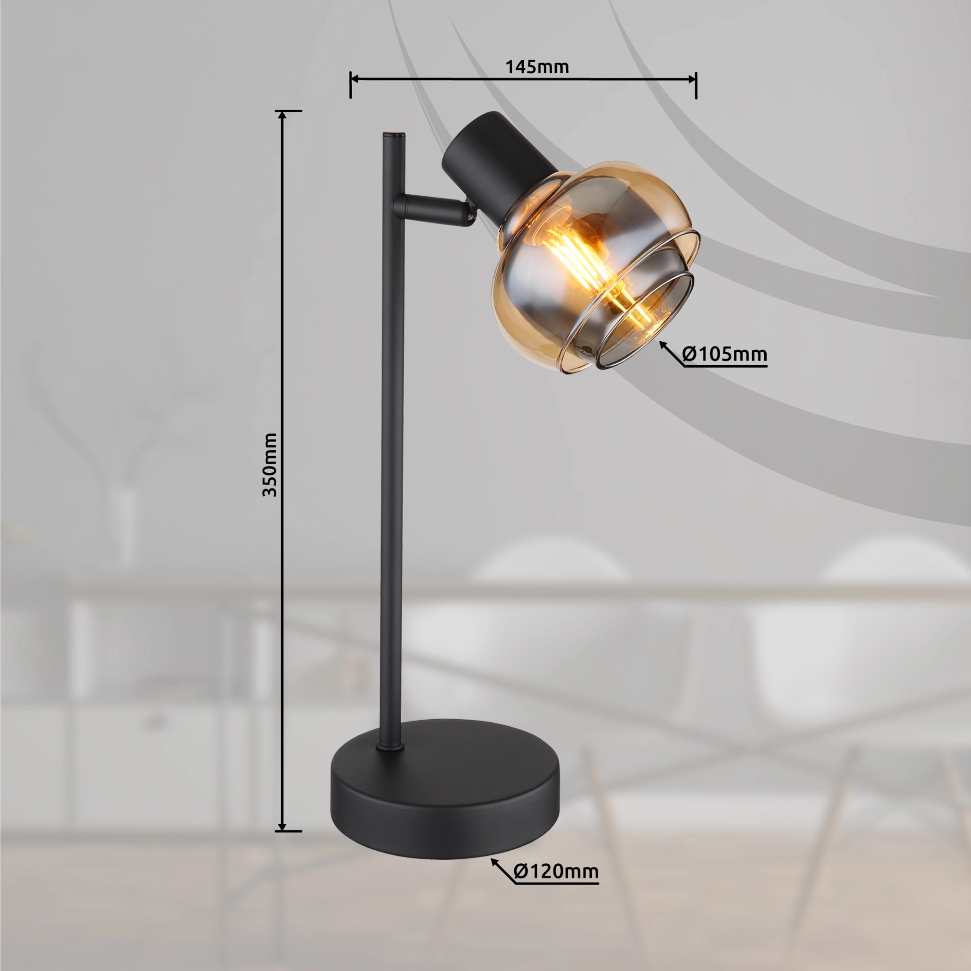 Our table lamp is made of black matt lacquered metal and clear glass in amber and smoke colors that reflect the light beautifully. The luminaire is equipped with a rocker switch on the cable and has a size of LxWxH: 145x120x350mm. The cable is made of PVC and black. Please note that the bulb is not included. You will need 1 E14 bulb with a power of 40 watts and a voltage of 230 volts. Our table lamp is a real eye-catcher and will be a highlight in every room. With its unique combination of modern design and high-quality materials, it is guaranteed to be an eye-catcher in your home.