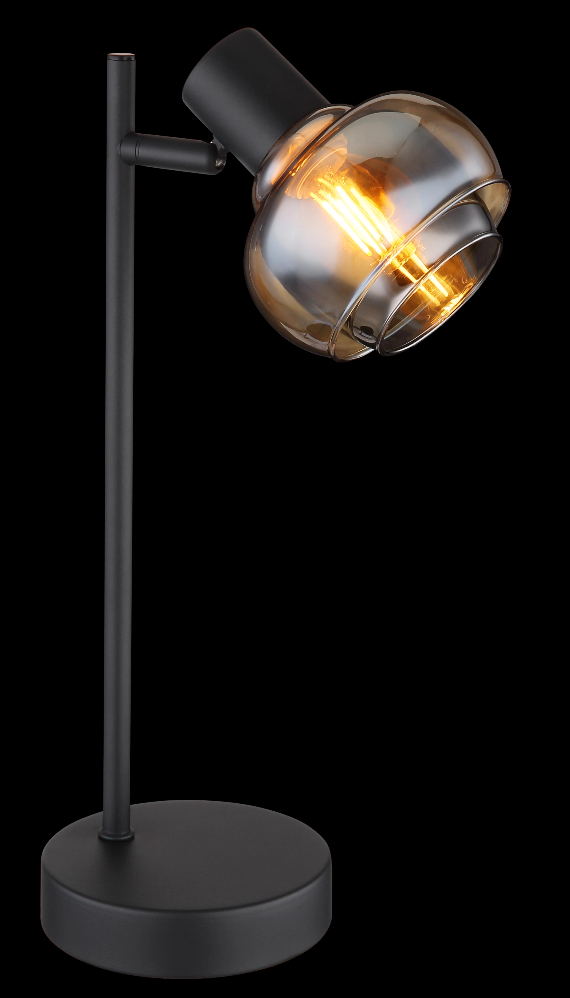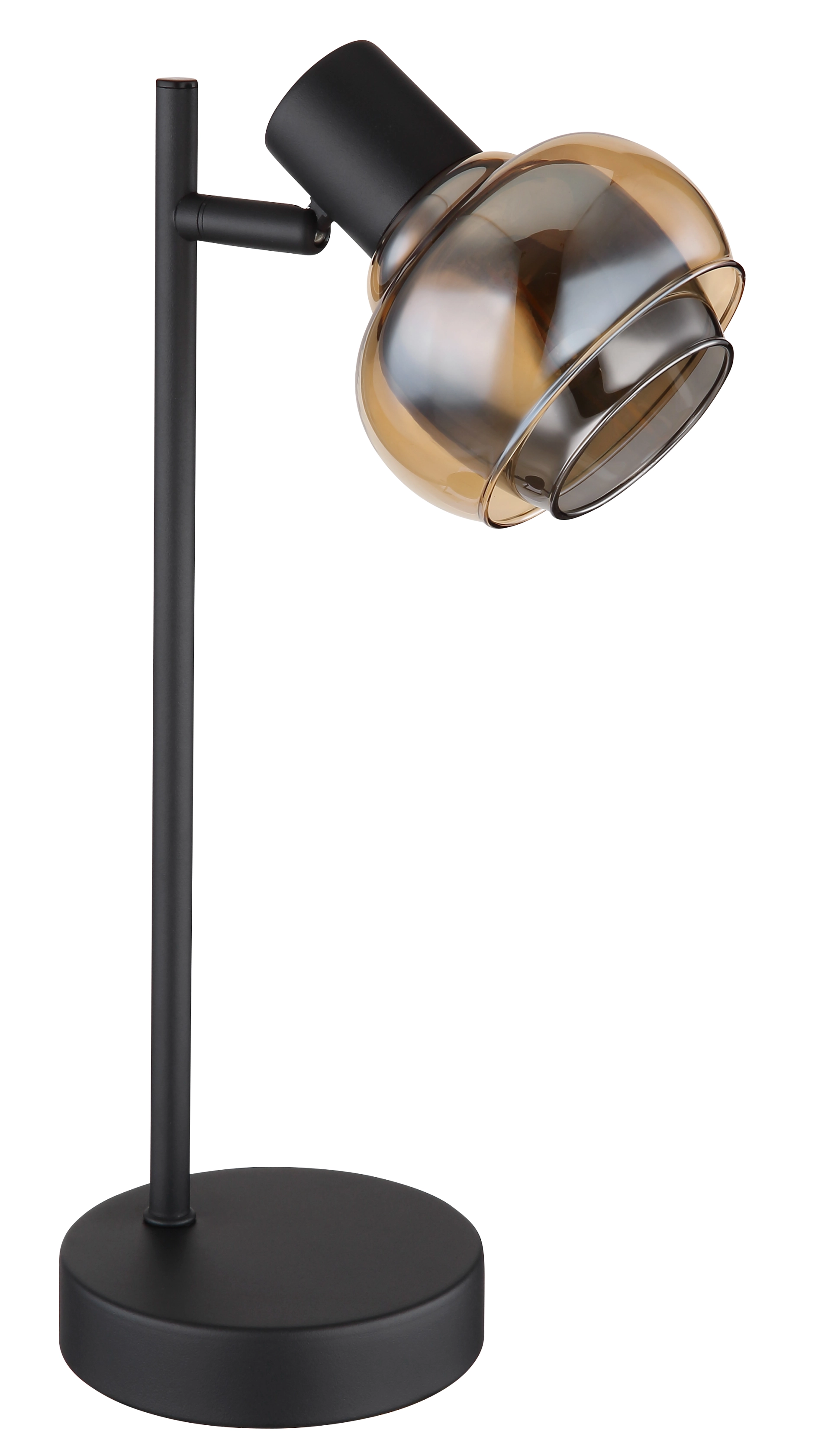 Our table lamp is made of black matt lacquered metal and clear glass in amber and smoke colors that reflect ... Read more Read more