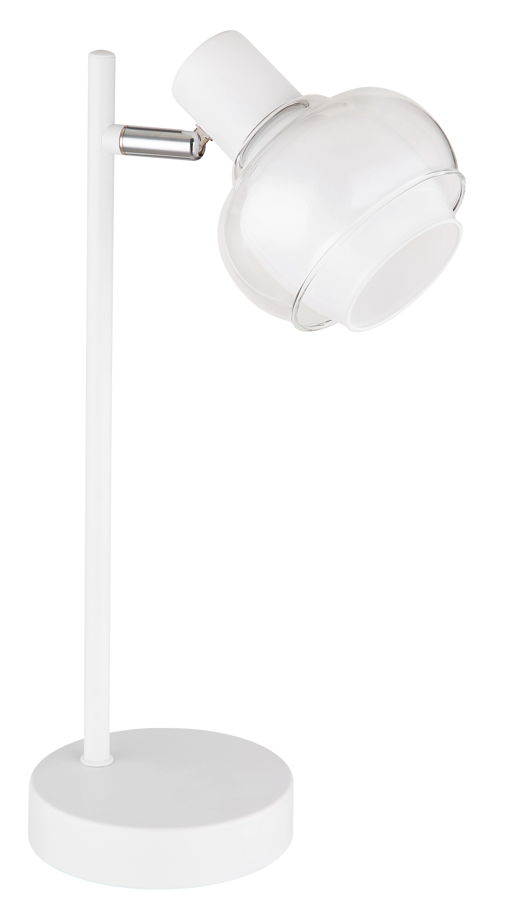 Our table lamp is made of white matt lacquered metal, chrome and clear as well as opal glass, which reflect ... Read more Read more