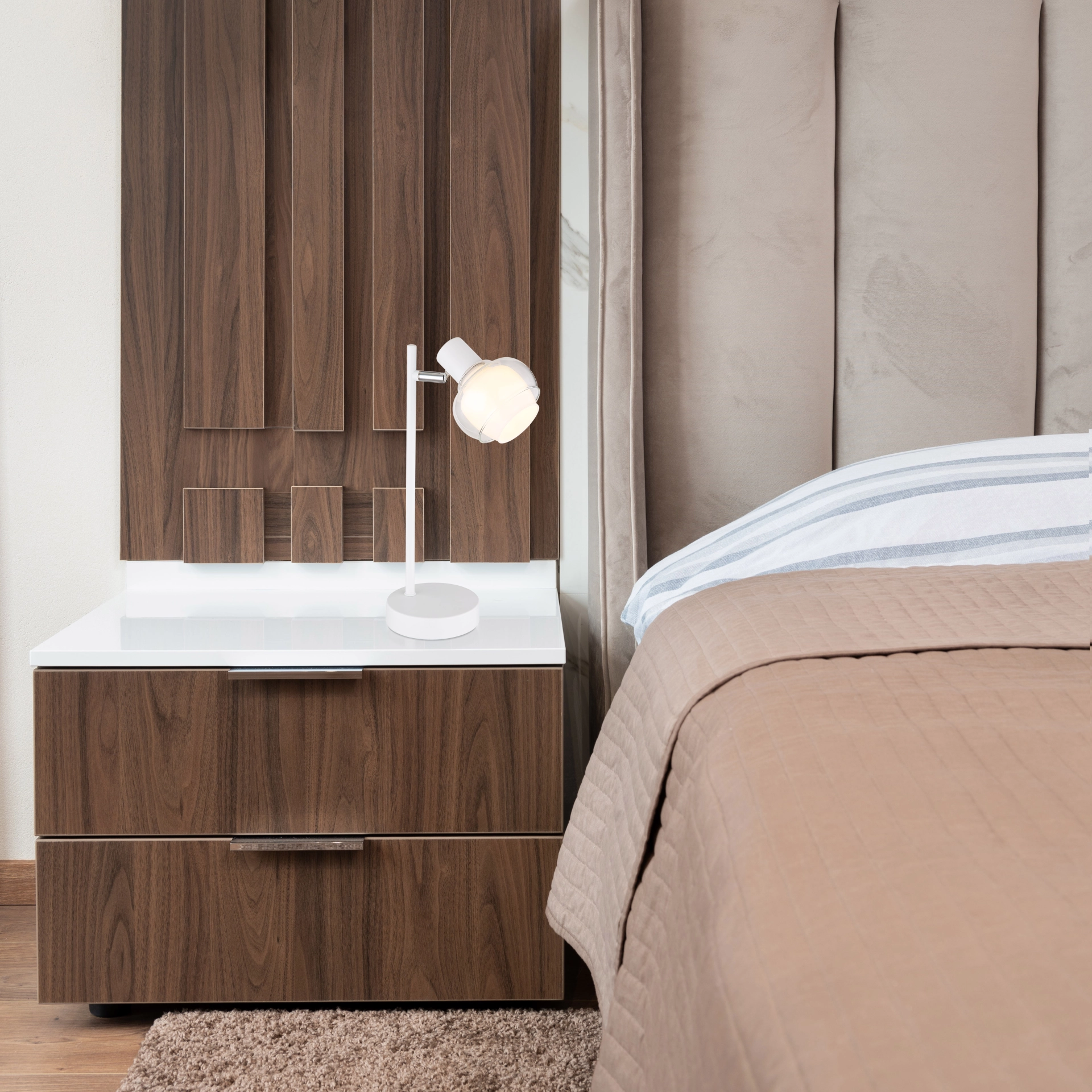 Our table lamp is made of white matt lacquered metal, chrome and clear as well as opal glass, which reflect the light beautifully. The luminaire is equipped with a rocker switch on the cable and has a size of LxWxH: 145x120x350mm. The cable is made of PVC and white. Please note that the bulb is not included. You will need 1 E14 bulb with a power of 40 watts and a voltage of 230 volts. Our table lamp is a real eye-catcher and will be a highlight in every room. With its unique combination of modern design and high-quality materials, it is guaranteed to be an eye-catcher in your home.