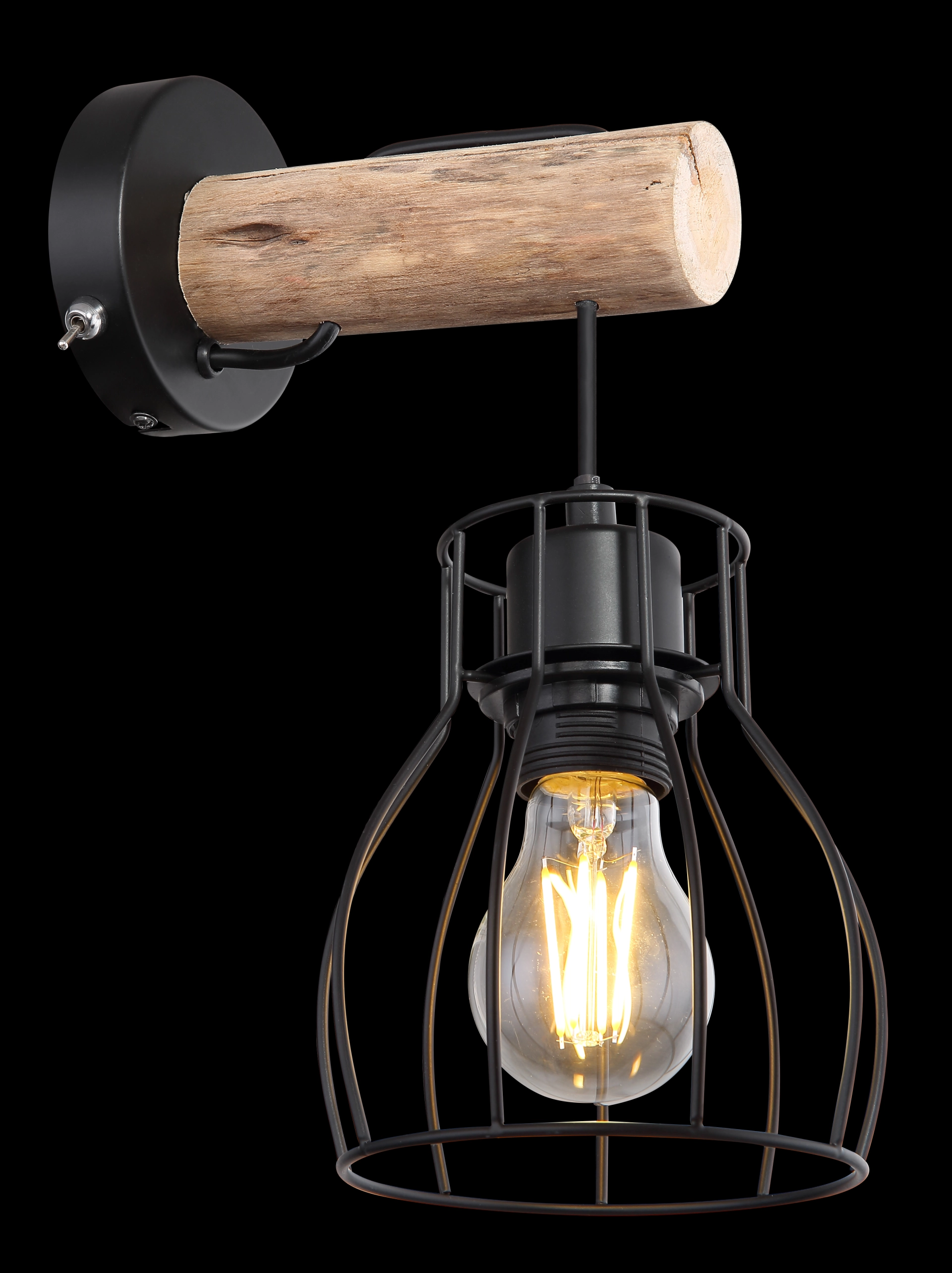 This wall lamp of the Mina series convinces with its retro design. The lattice-shaped lampshade (Ø13.6cm) made of metal is black and has been attached to a wooden-look bracket. Through the grid, an interesting shadow look is brought to the wall. By freely choosing the light source (E27/max. 40W), you can determine the light intensity and light color of this interior luminaire yourself. Due to their longevity, we recommend LED lamps. With other models of this series, you can further beautify the image of your living space.