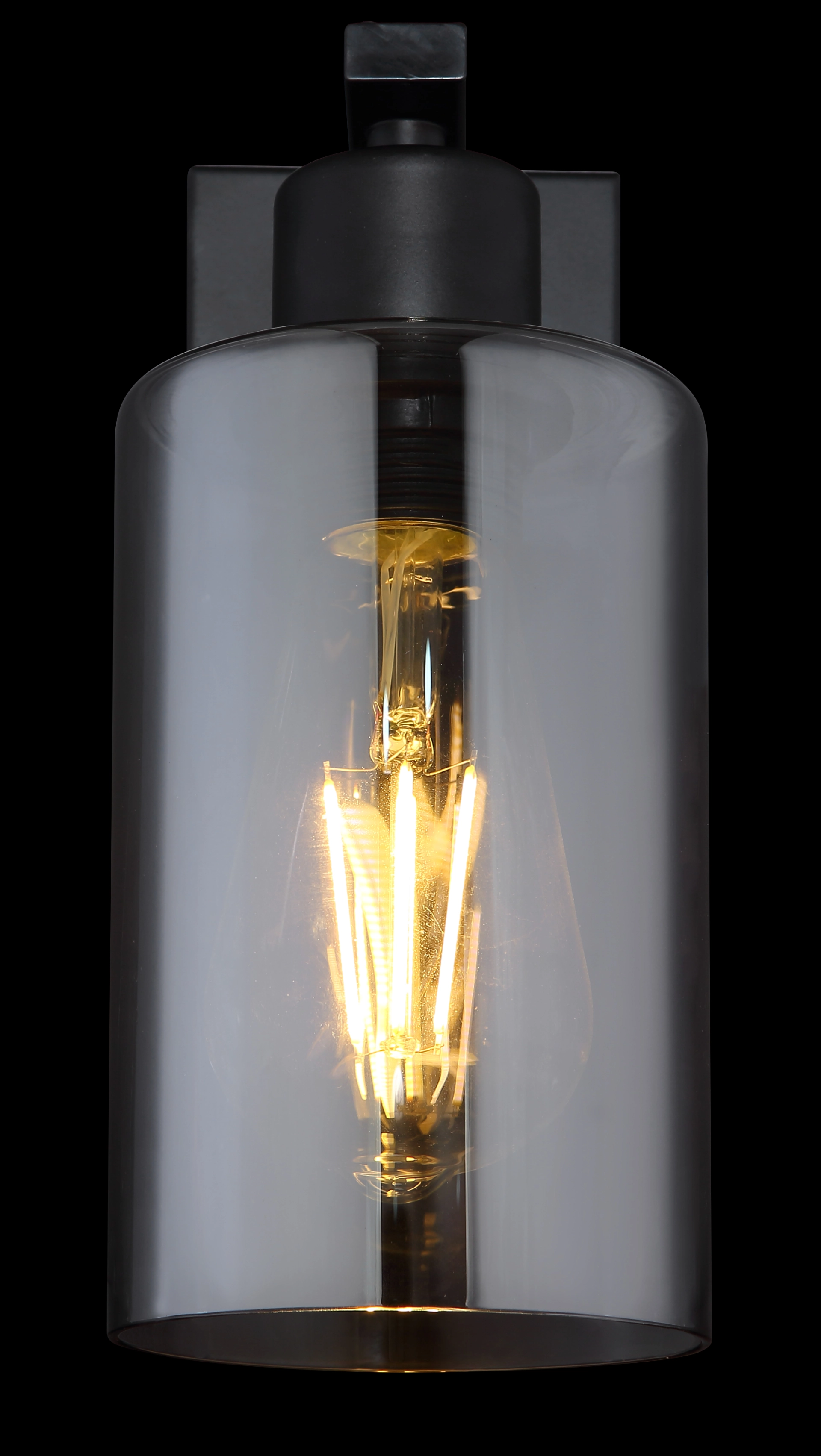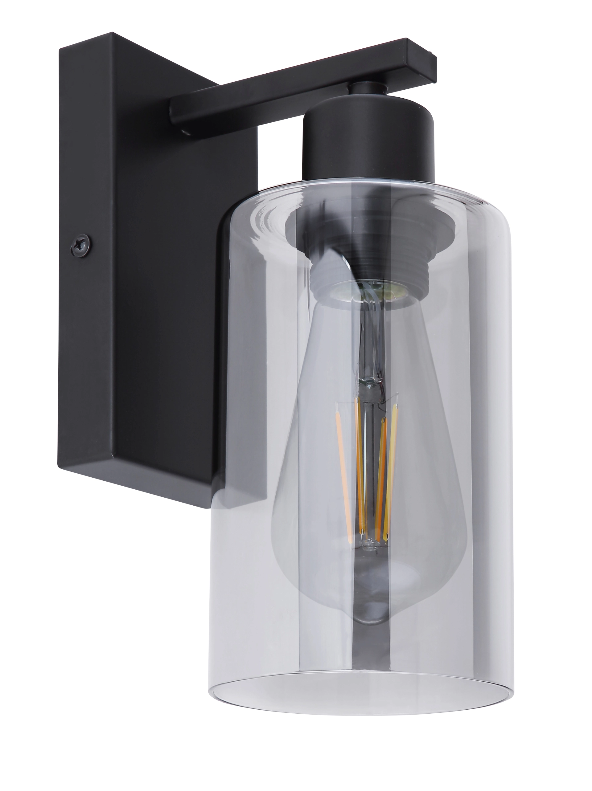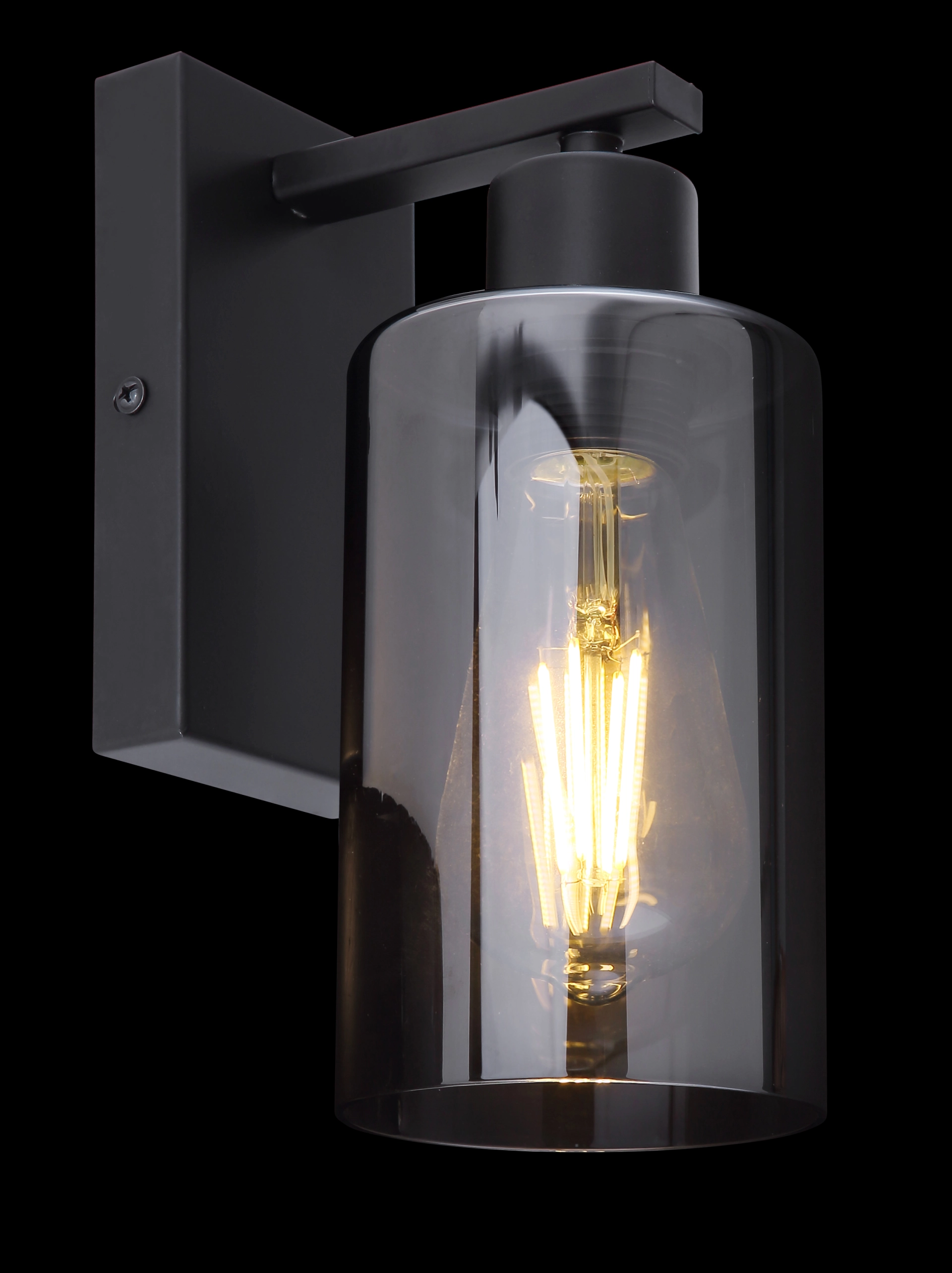 This wall lamp from the Hadera series convinces with its beautiful design made of black-matt metal and smoky glass. The ... Read more Read more