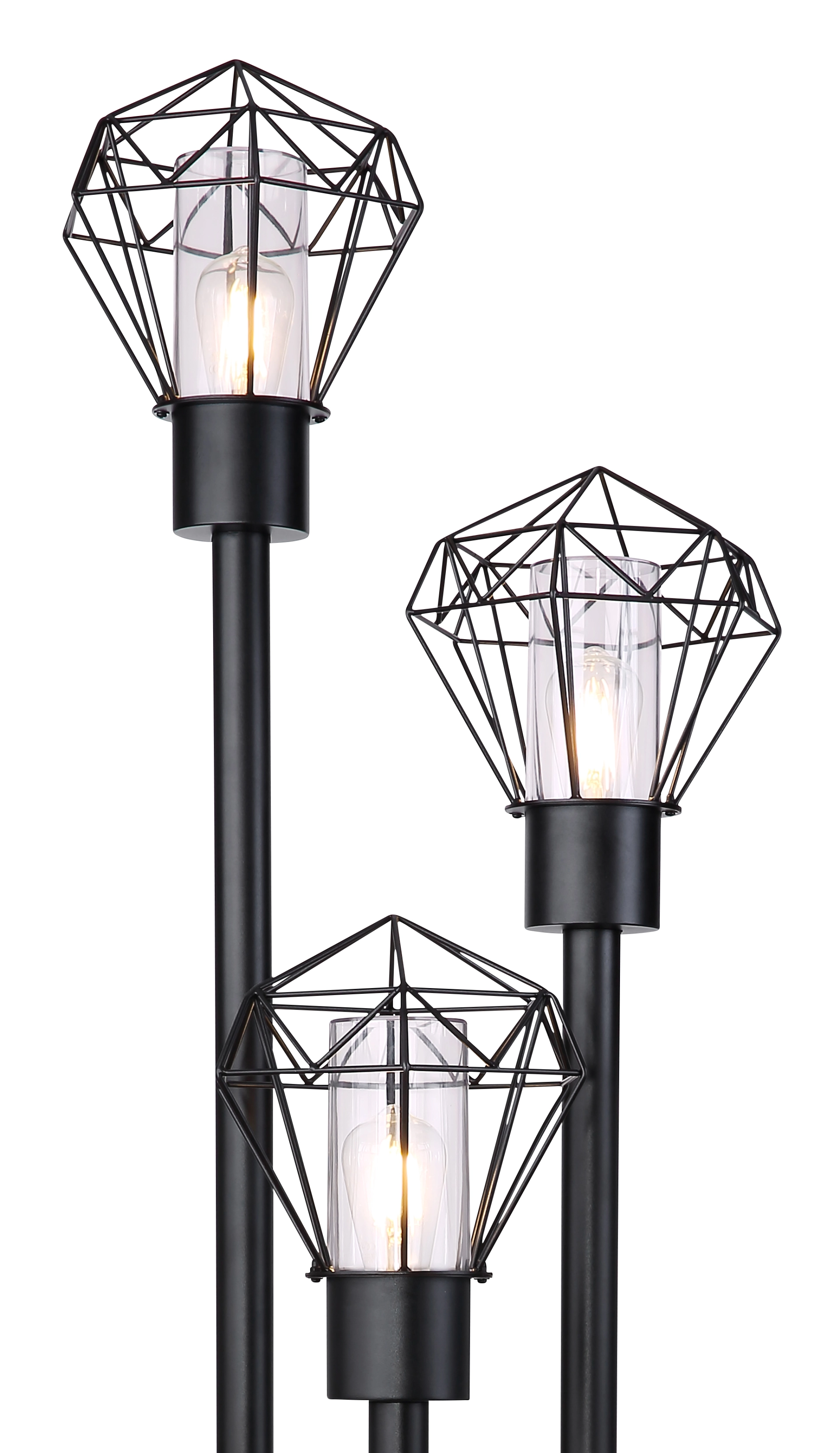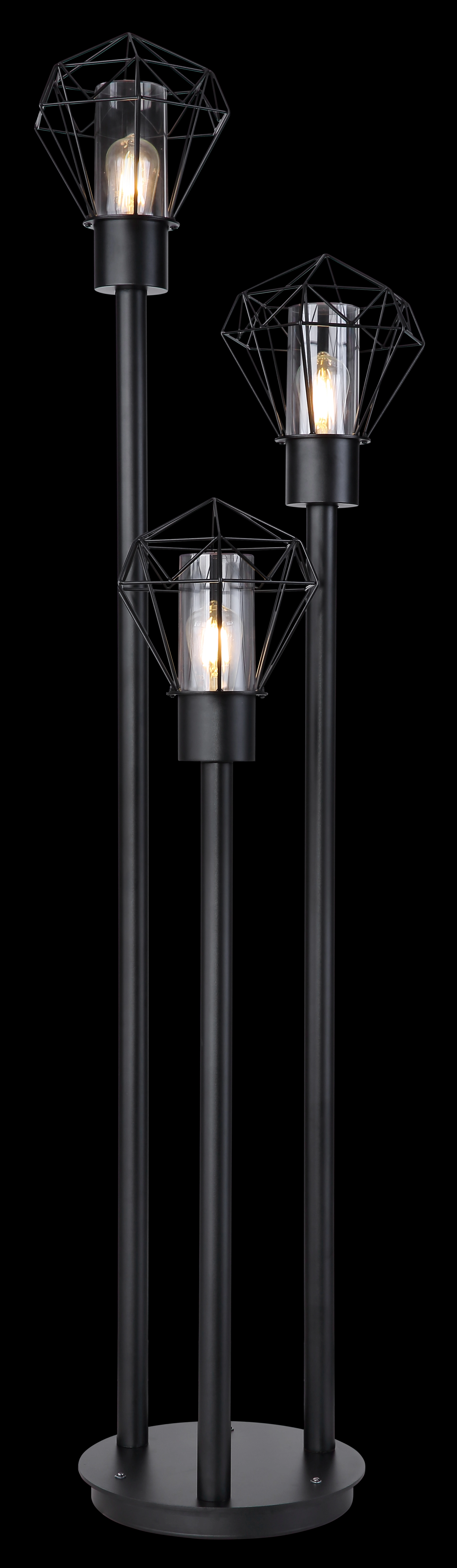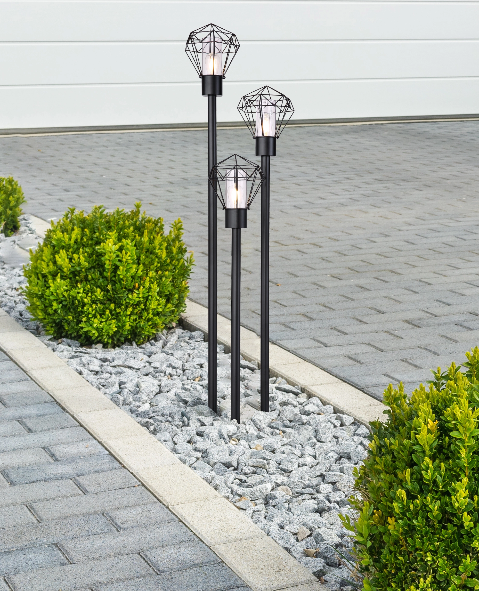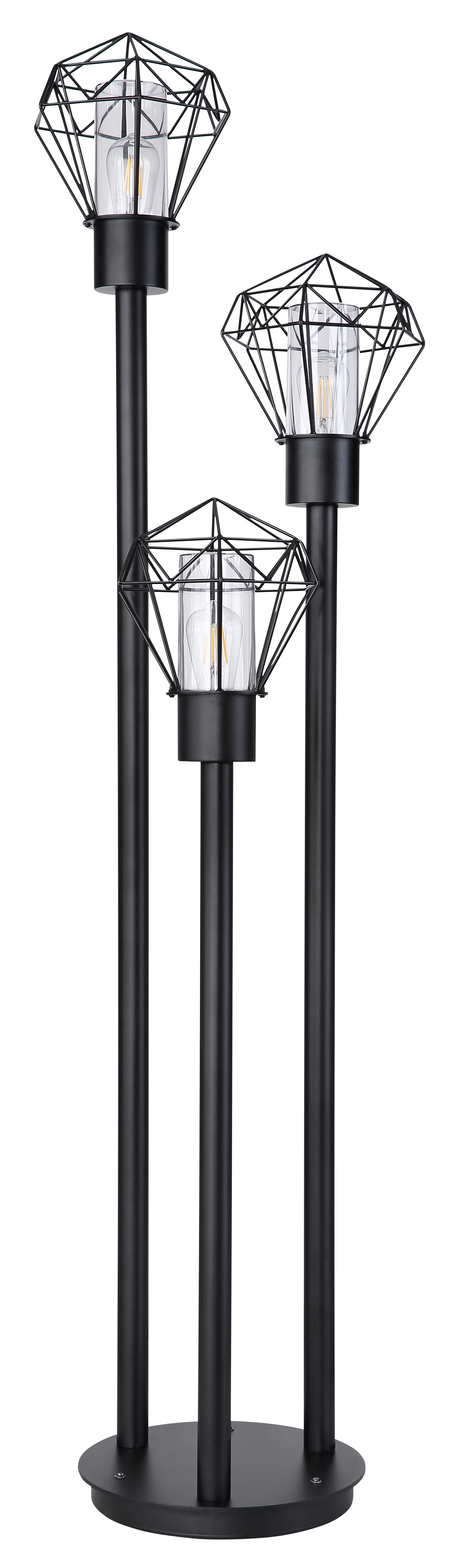 The black stainless steel lamp fits perfectly into any garden. The cover is made of clear plastic and is ideally suited for outdoor use due to the degree of protection IP 44. The lamp is 44.2 cm wide, 170cm high and provides a pleasant light through the lattice-shaped metal shades. The three bulbs with an E 27 socket can be freely selected up to 3x15W. We recommend using an LED bulb for even more sustainability.