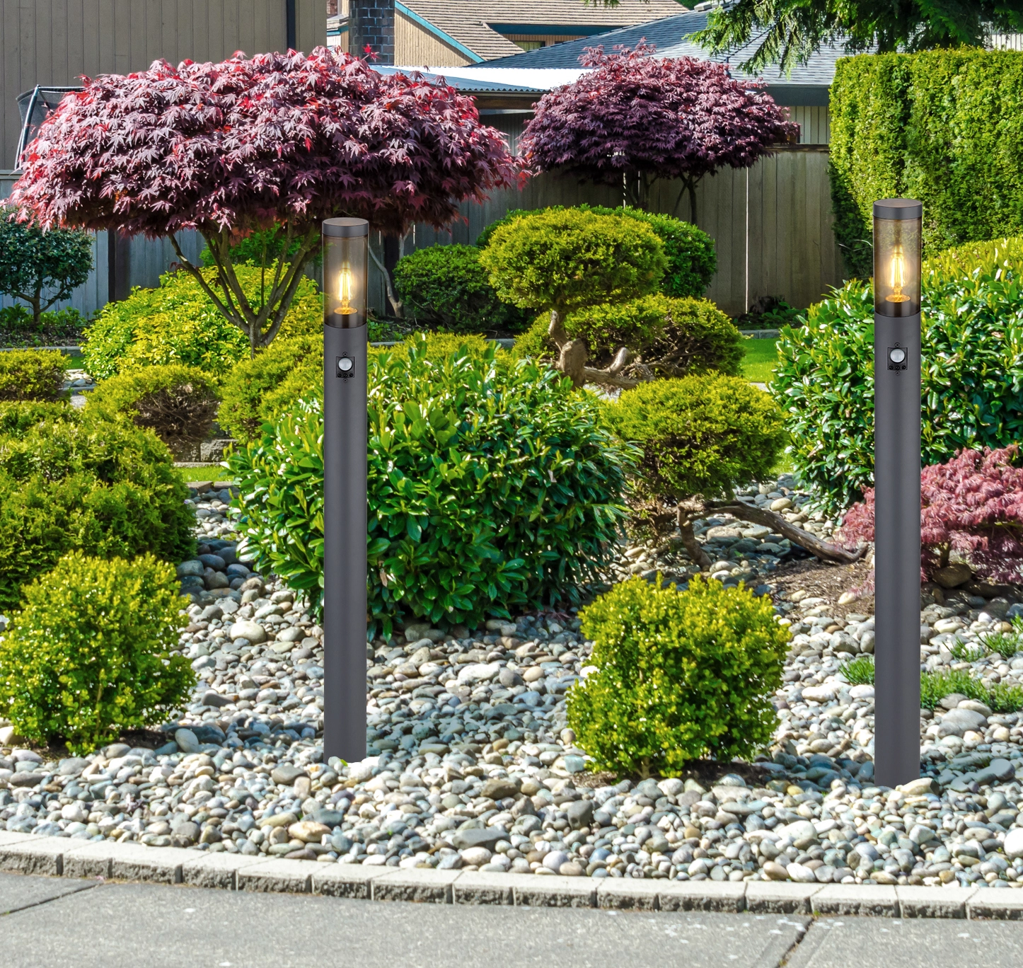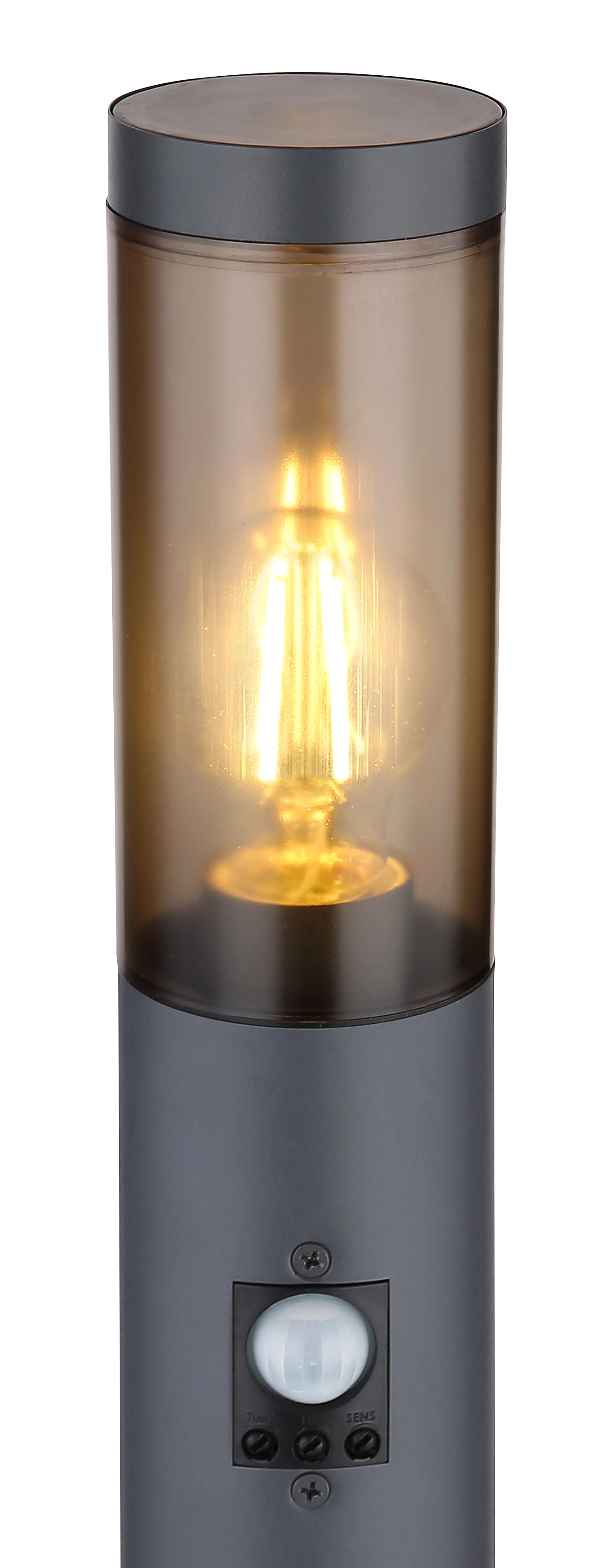 This elegant base lamp of the Boston series is characterized by its stylish design and great workmanship. The shapely outdoor lamp is ideally suited for outdoor use due to its IP44 degree of protection. This model is made of stainless steel and plastic in anthracite and has a total size of 1.1 meters. The lamp is equipped with an E27 socket and allows you to use a bulb (max. 15W) of your choice. Due to their power savings and longevity, we recommend LED lamps. An additional advantage is the integrated motion detector (90°) with a range of 2 to 8 meters. With other base lamps and wall lamps of the same product series you can complete the picture.