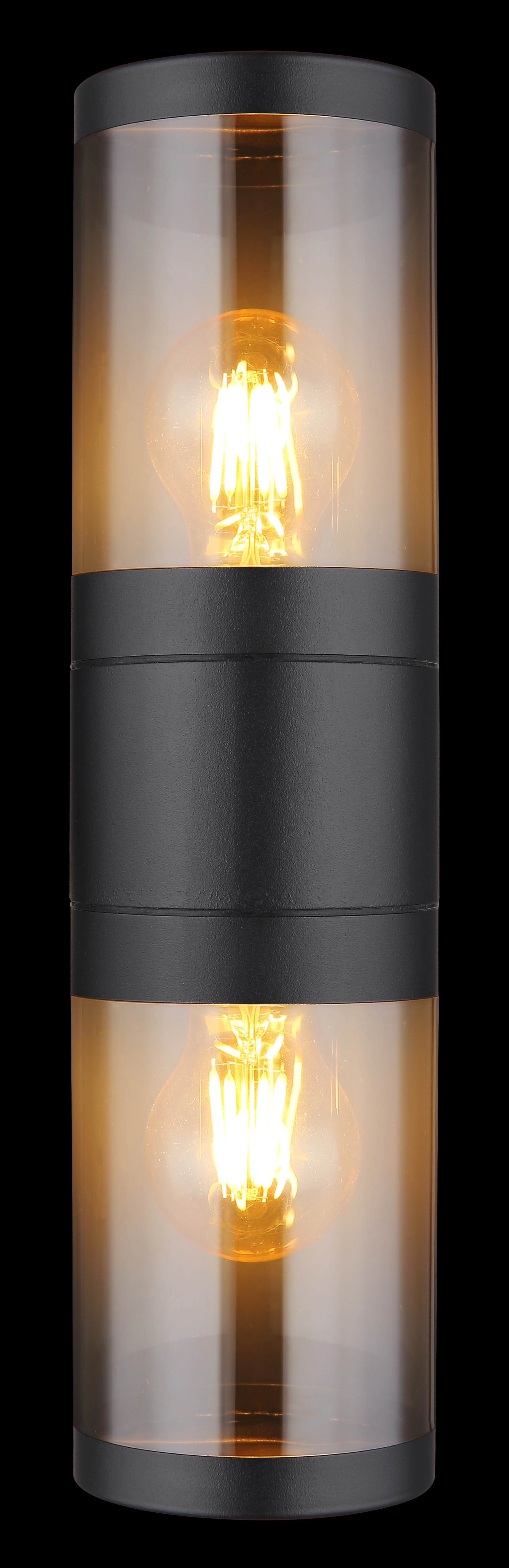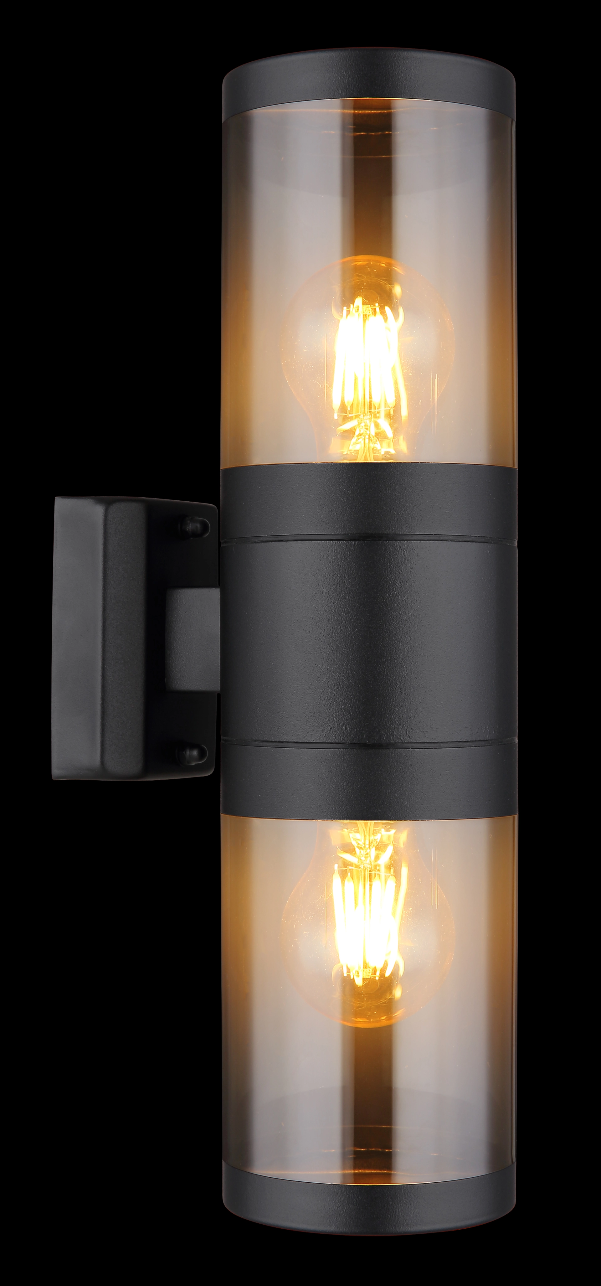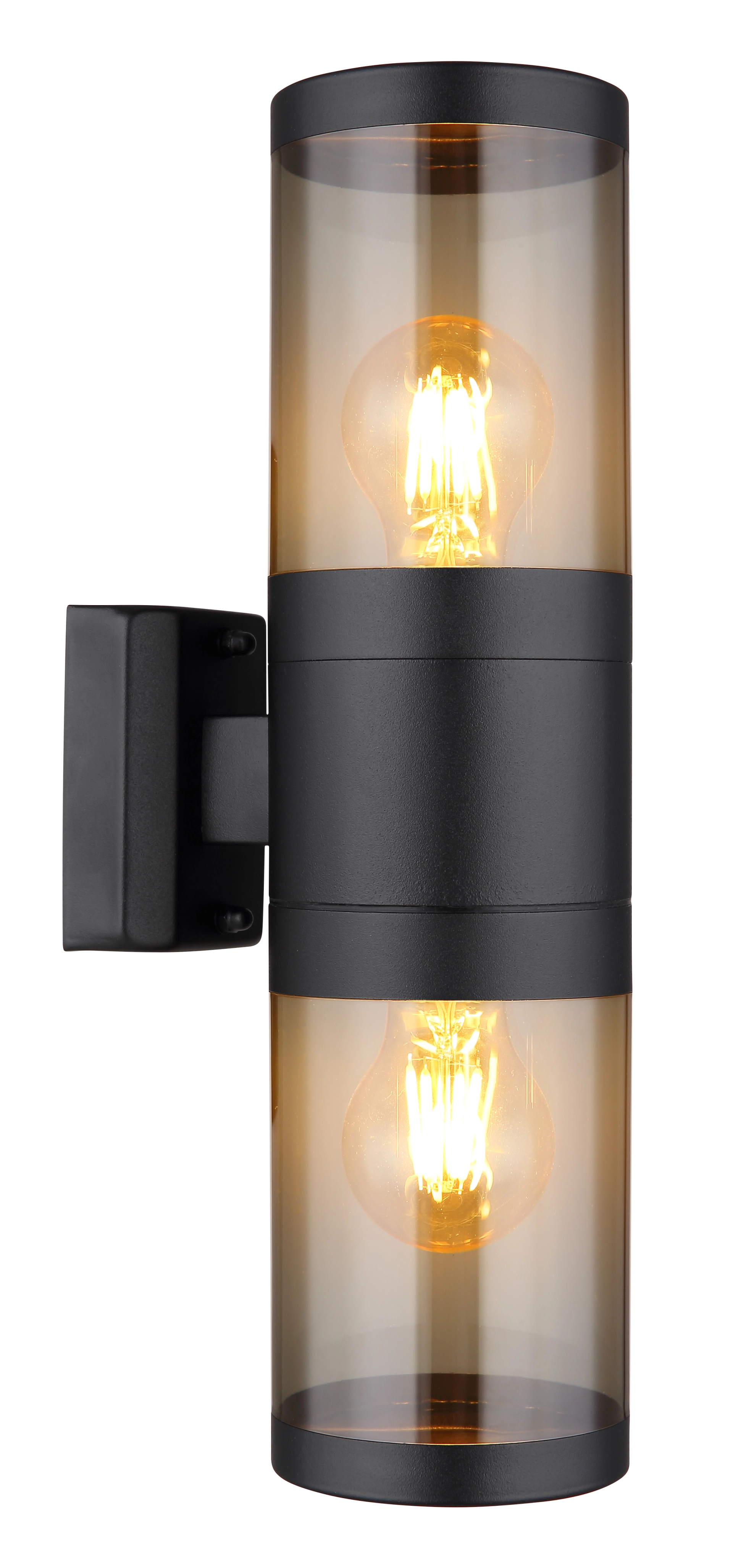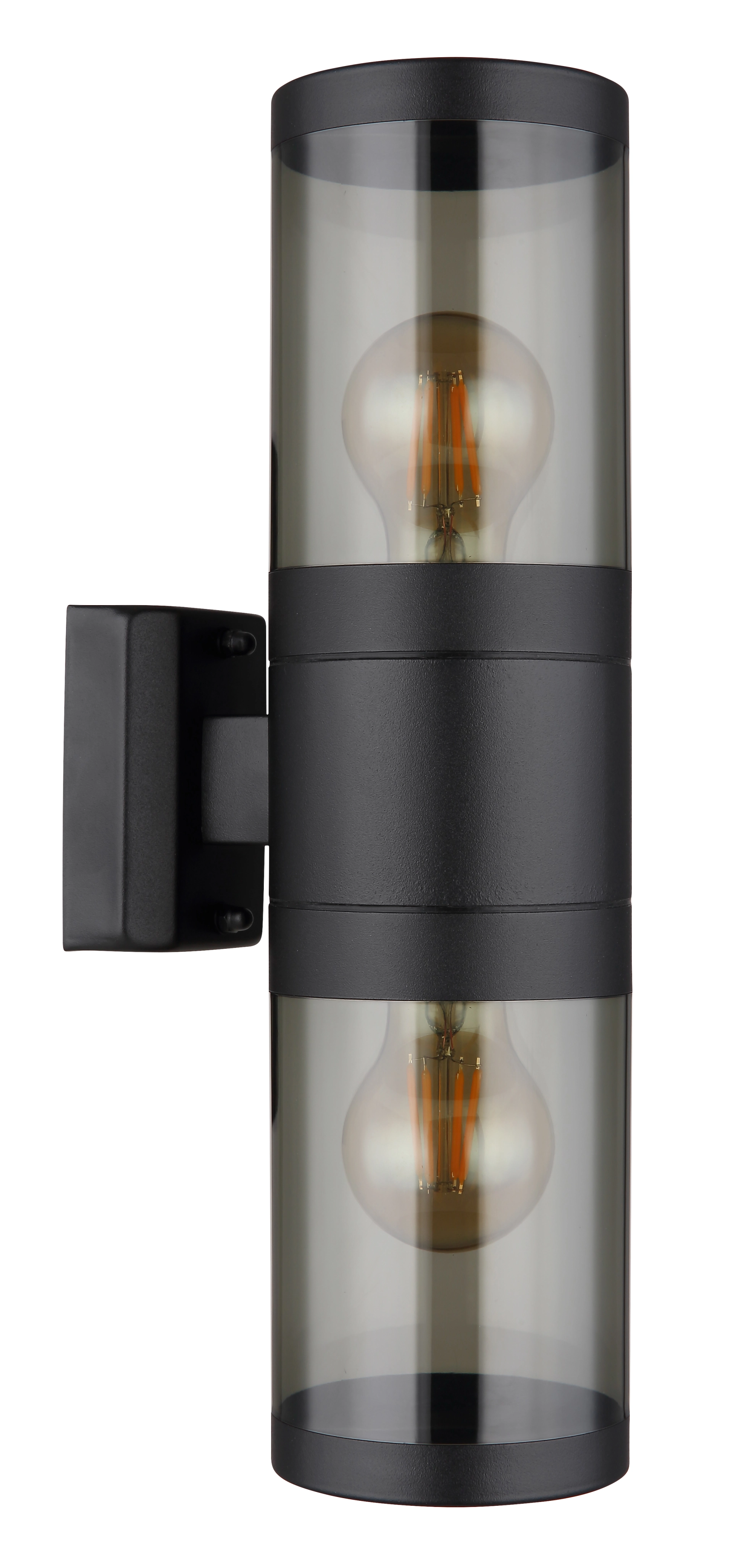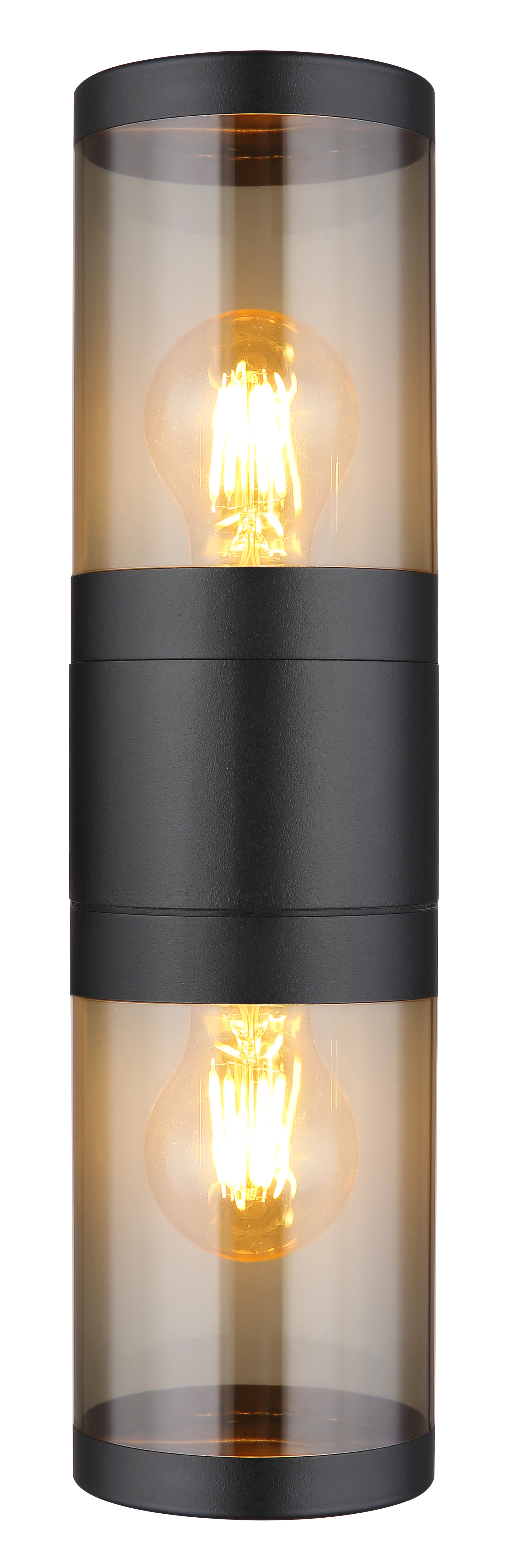 This great wall lamp inspires with its modern design. A cylindrical housing with smoky glass and two E27 sockets, which ... Read more Read more