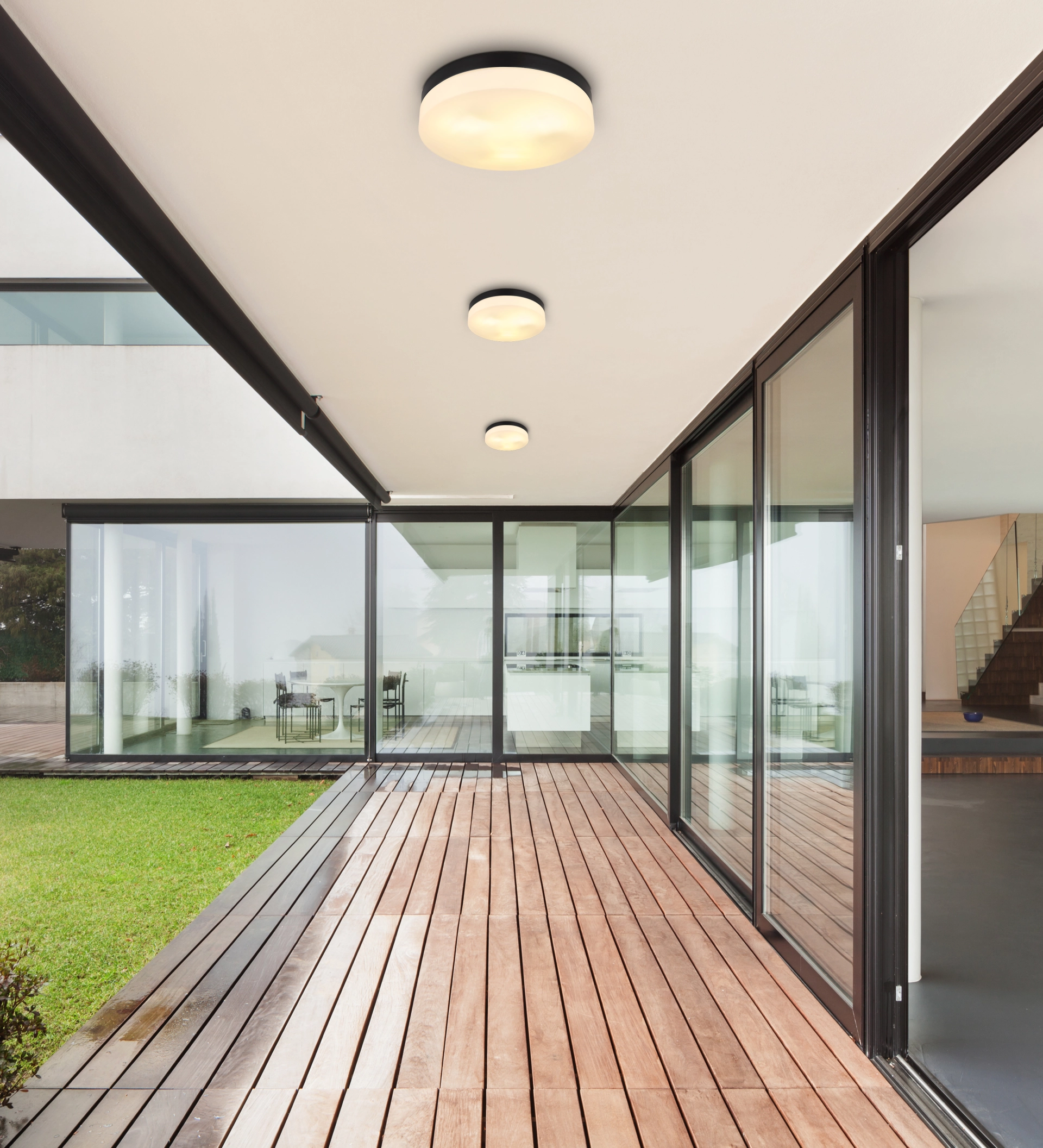 This great outdoor lamp inspires with great design. The round lamp made of aluminum and glass (Ø30cm) not only has ... Read more Read more