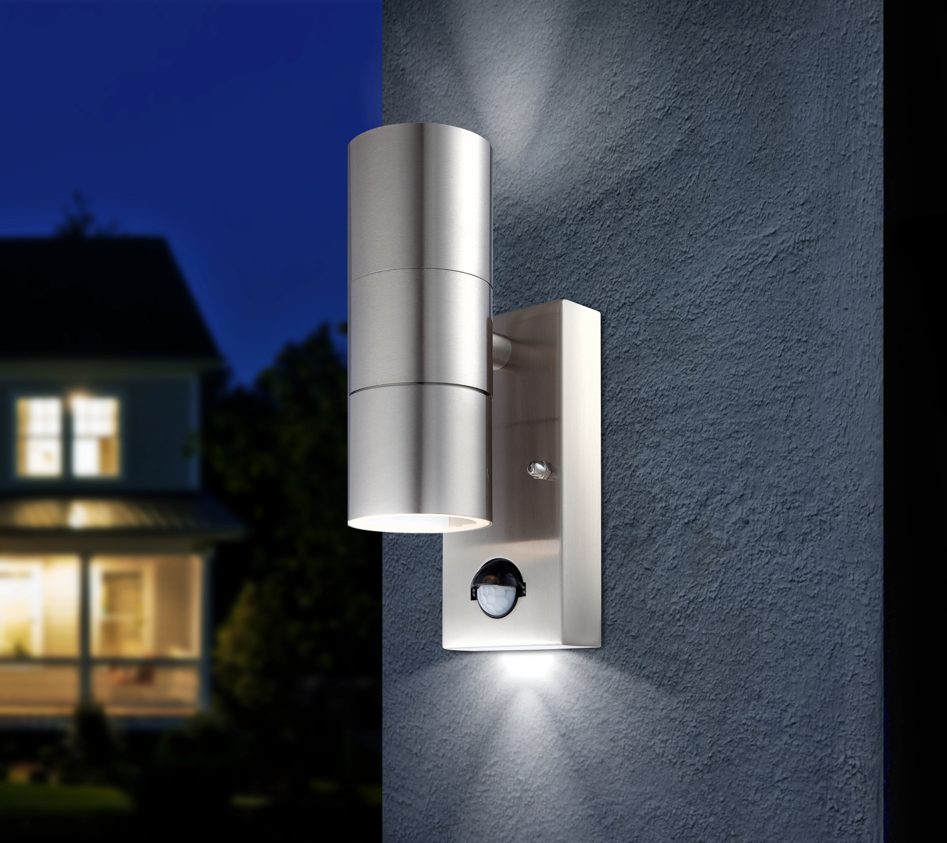 Style is the name of this outdoor lamp model series. This truly stylish stainless steel wall lamp with its IP44 degree of protection is absolutely suitable for outdoor use. The modern 16.5 cm outdoor lamp has a built-in motion detector (6 m / 100°) with the two included, replaceable LED bulbs each provides a 210 lumens strong light with a pleasant 3000K warm white light color and provides both up and down light.