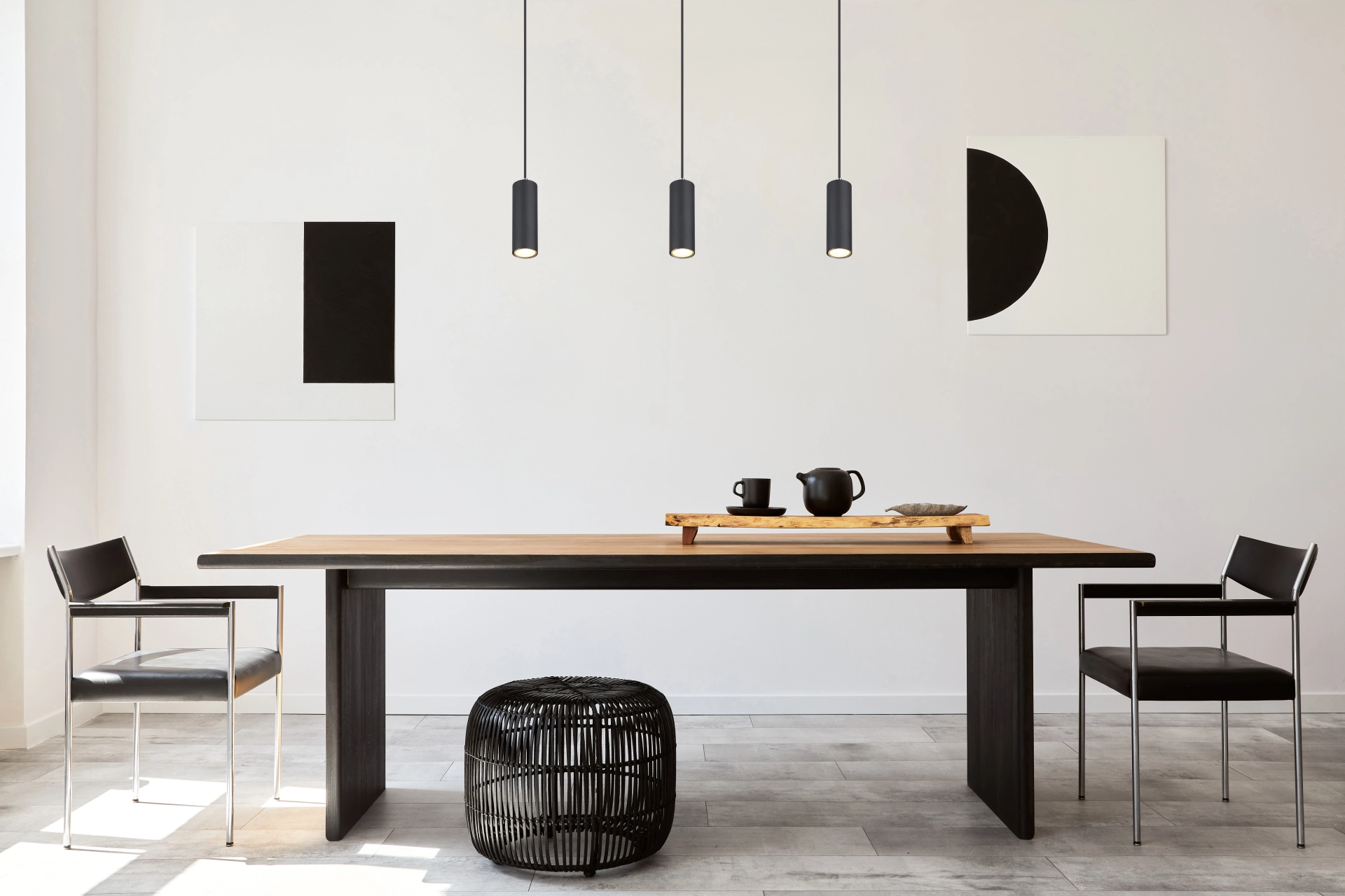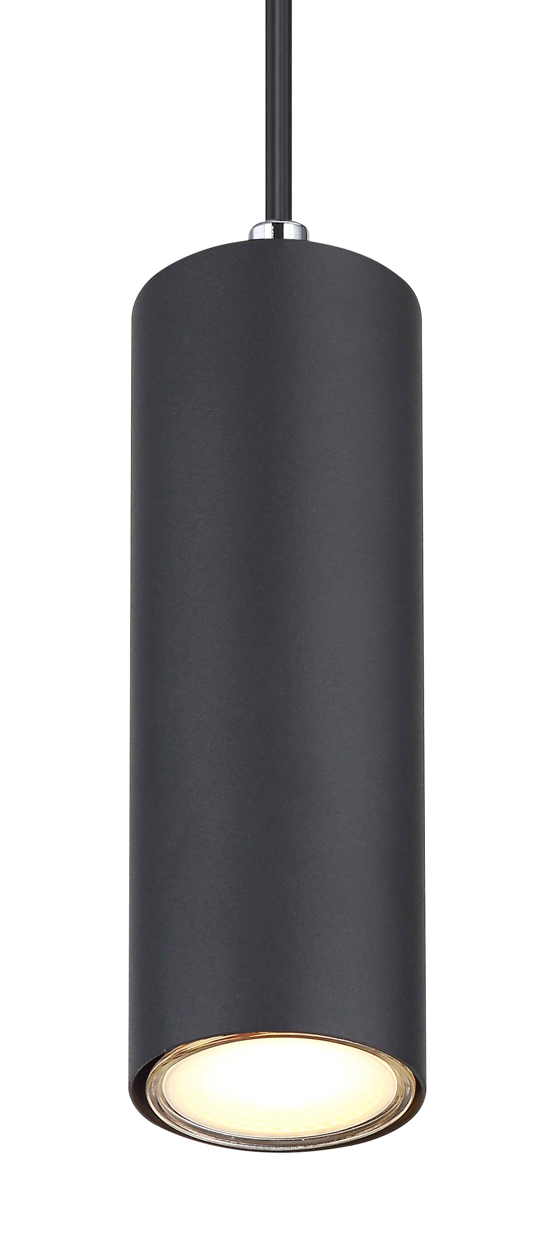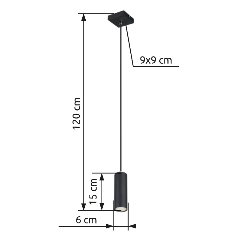 This enchanting pendant lamp inspires with its design. A cylindrical shade in matt black covers a GU10 socket which hangs on a black cable 1.2m from the ceiling. The GU10 socket allows you to freely choose bulbs, up to a maximum power of 35 Watt.