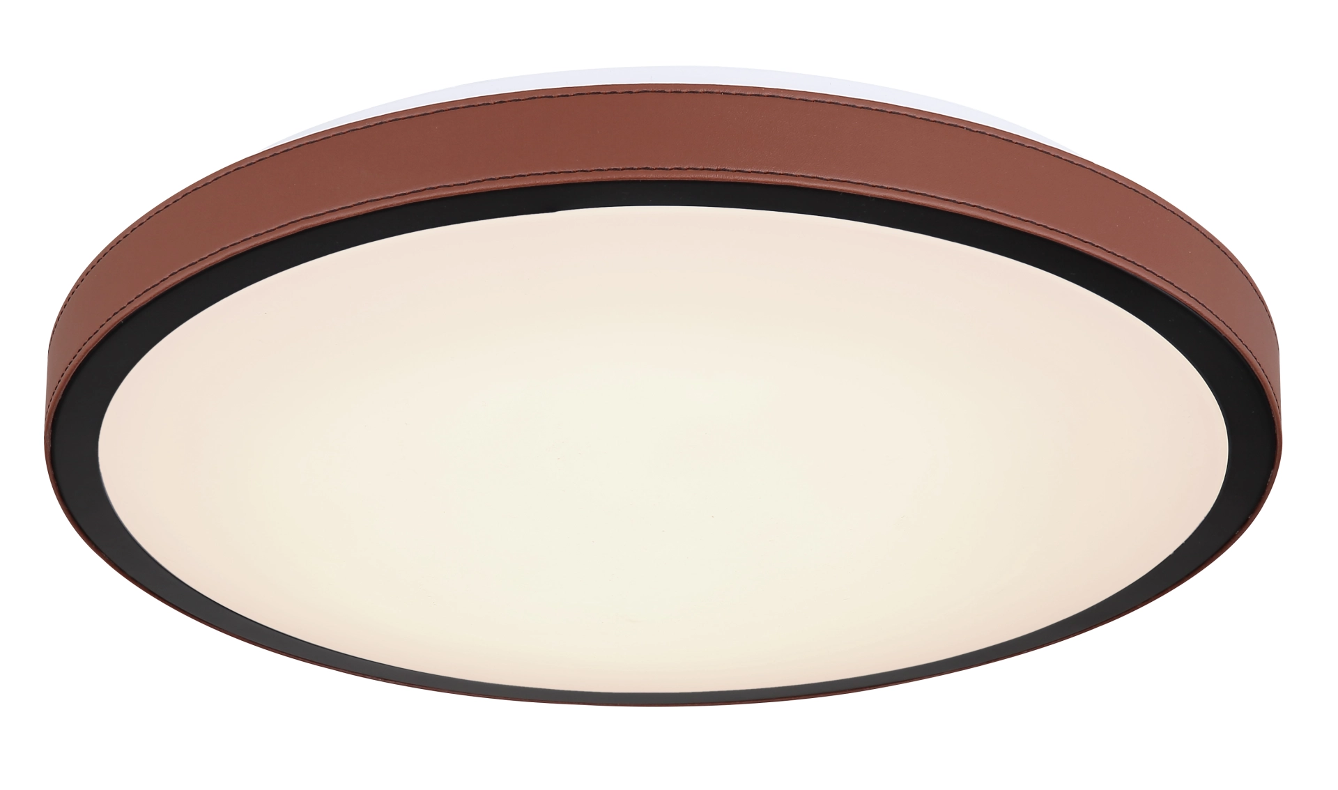 This round ceiling lamp inspires with its wonderful color scheme. The opal plastic, which covers the included LED bulbs, is enclosed by the round outer housing made of stylish dark brown metal (Ø42cm). With the LED lamps, the ceiling lamp provides a 1189 lumens strong light with a light colour of 3000 Kelvin warm white, 4500 Kelvin neutral and 6000 Kelvin cold white.