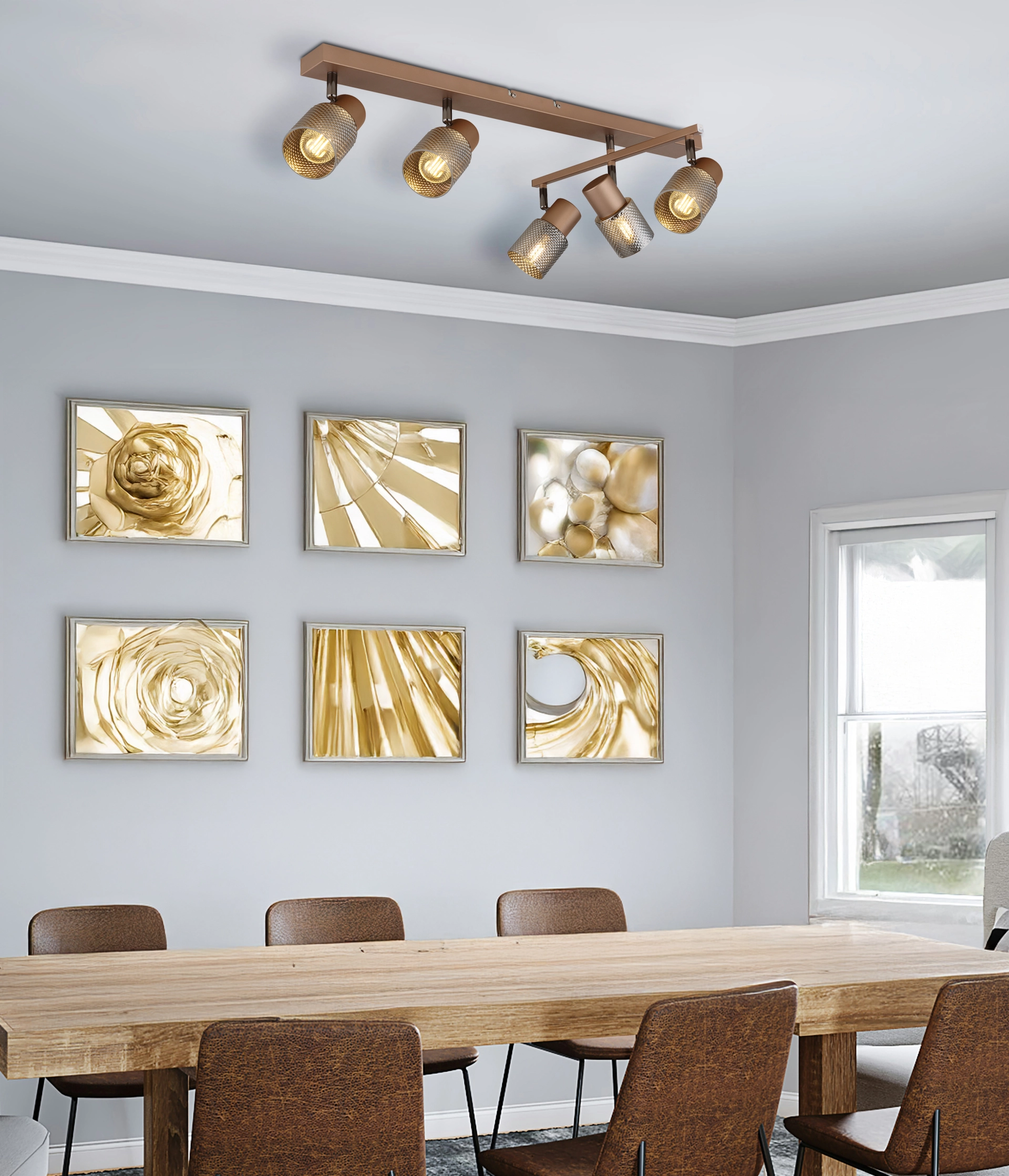 The SATELLA spotlight impresses with its rectangular design with a total of five cylindrical shades in crystal optics, which provide ... Read more Read more