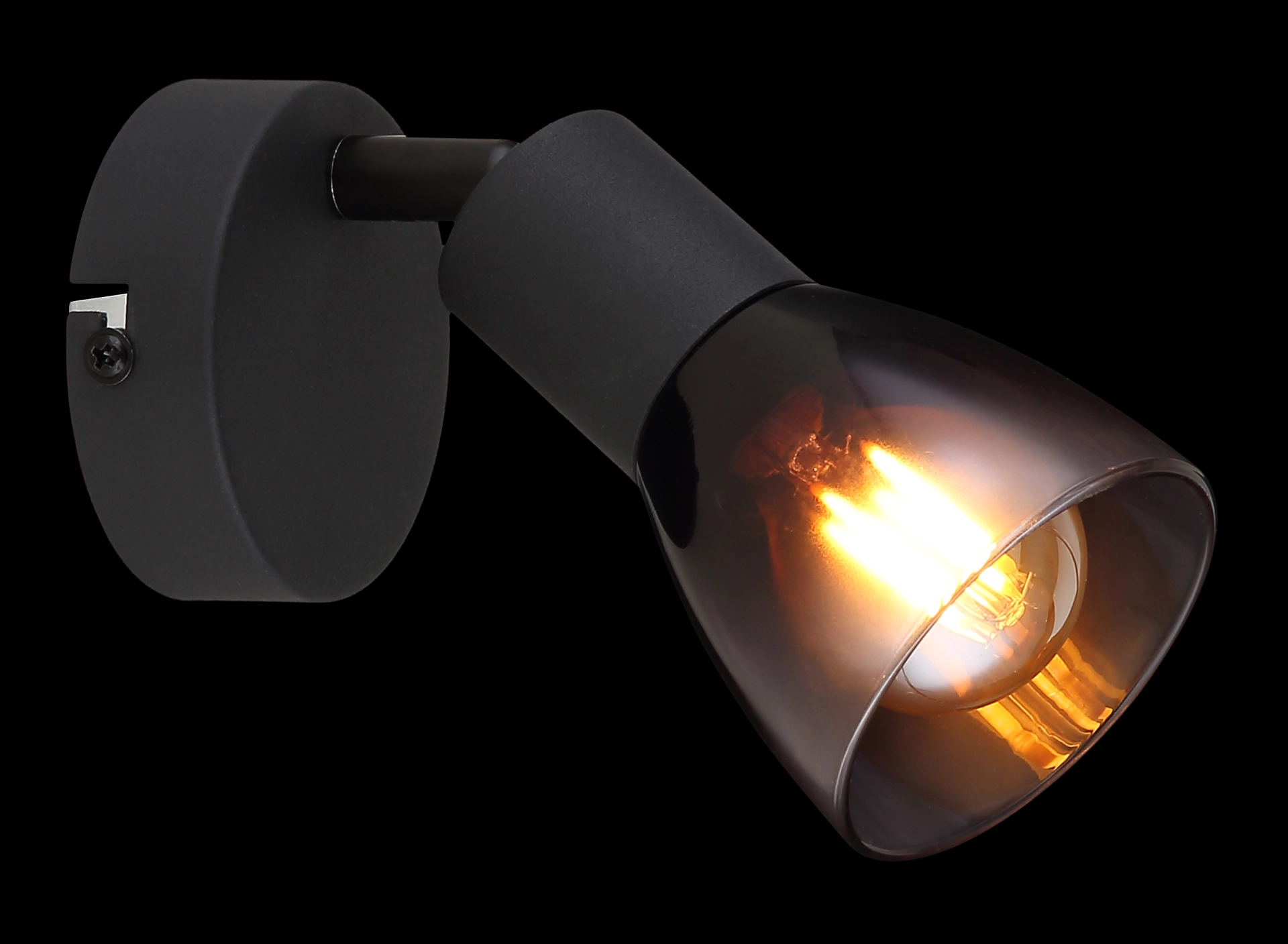 The elegant round wall sign with a body made of matt black metal and a clear smoke-coloured glass shade is ... Read more Read more