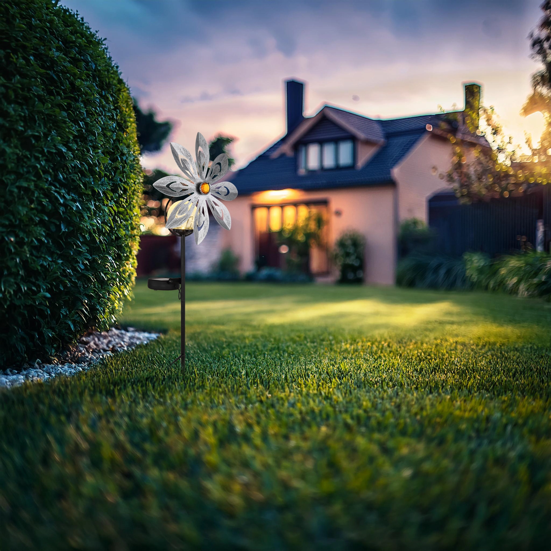 The SOLAR LIGHT METAL SILVER GREY in wind turbine design gives your garden an elegant touch. The silver-grey metal body ... Read more Read more