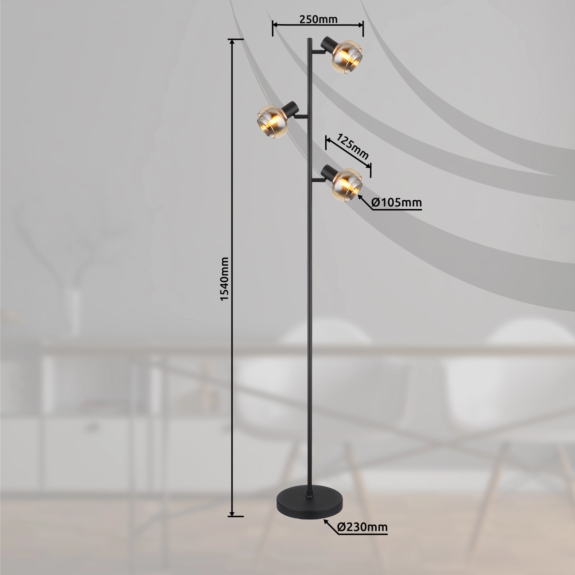 Discover the fascinating floor lamp with 3xE14 sockets! With its matt black lacquered metal housing and the unique glass variants ... Read more Read more