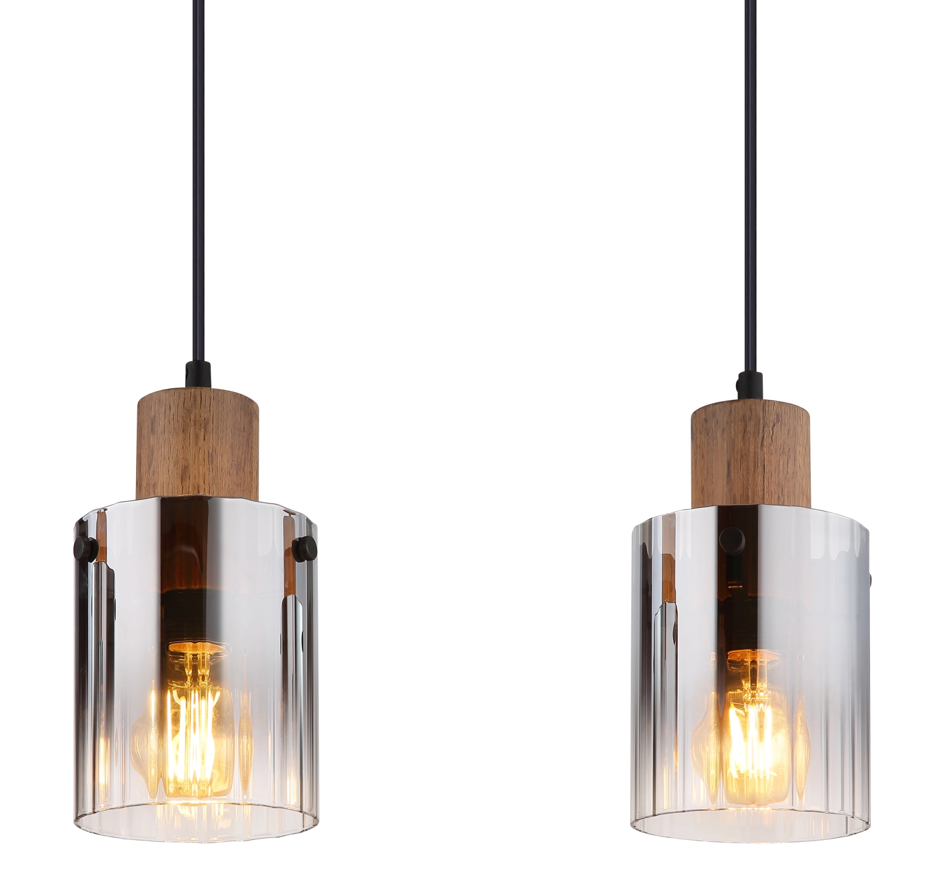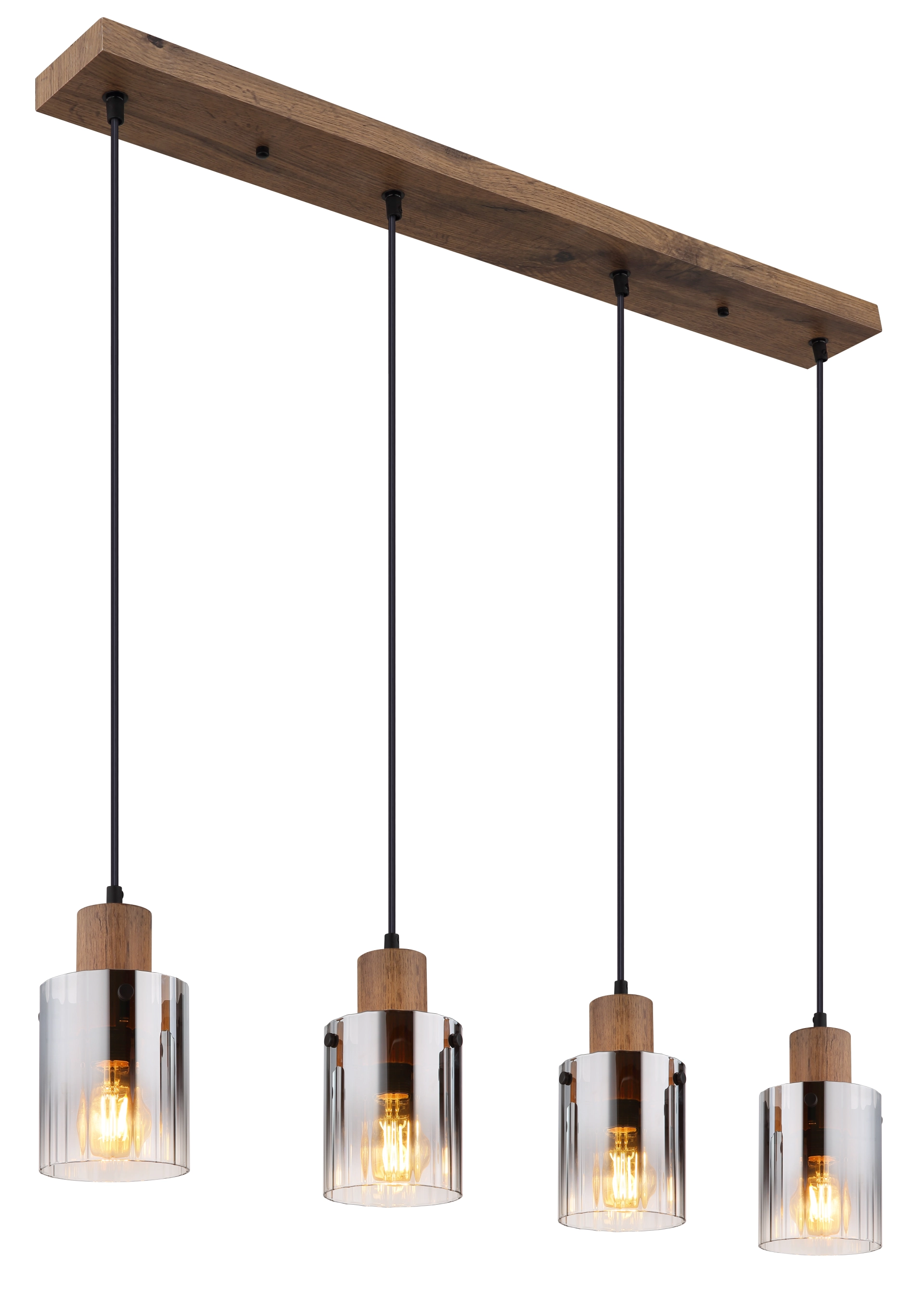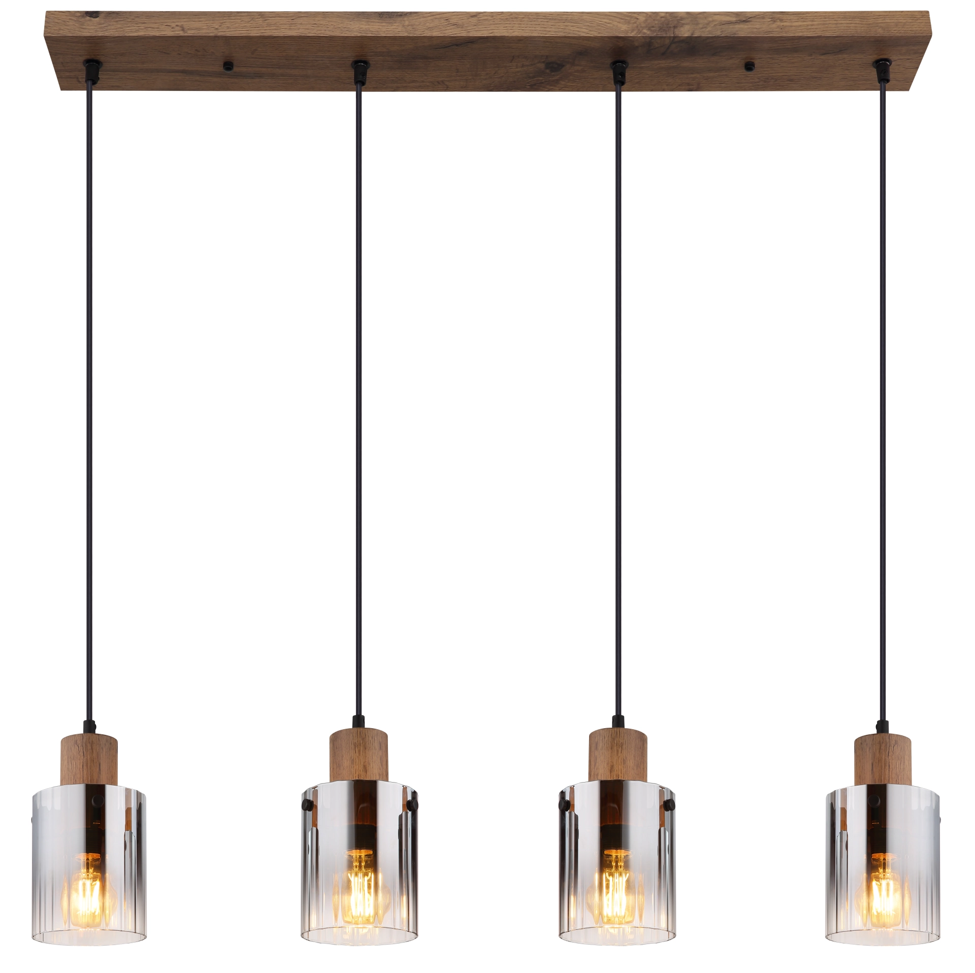 The UNDERWOOD pendant lamp impresses with its rectangular design and four stylish, clear glass cylinders. The MDF body in a dark wood look provides a rustic look. Suitable for E27 bulbs (exclusive).