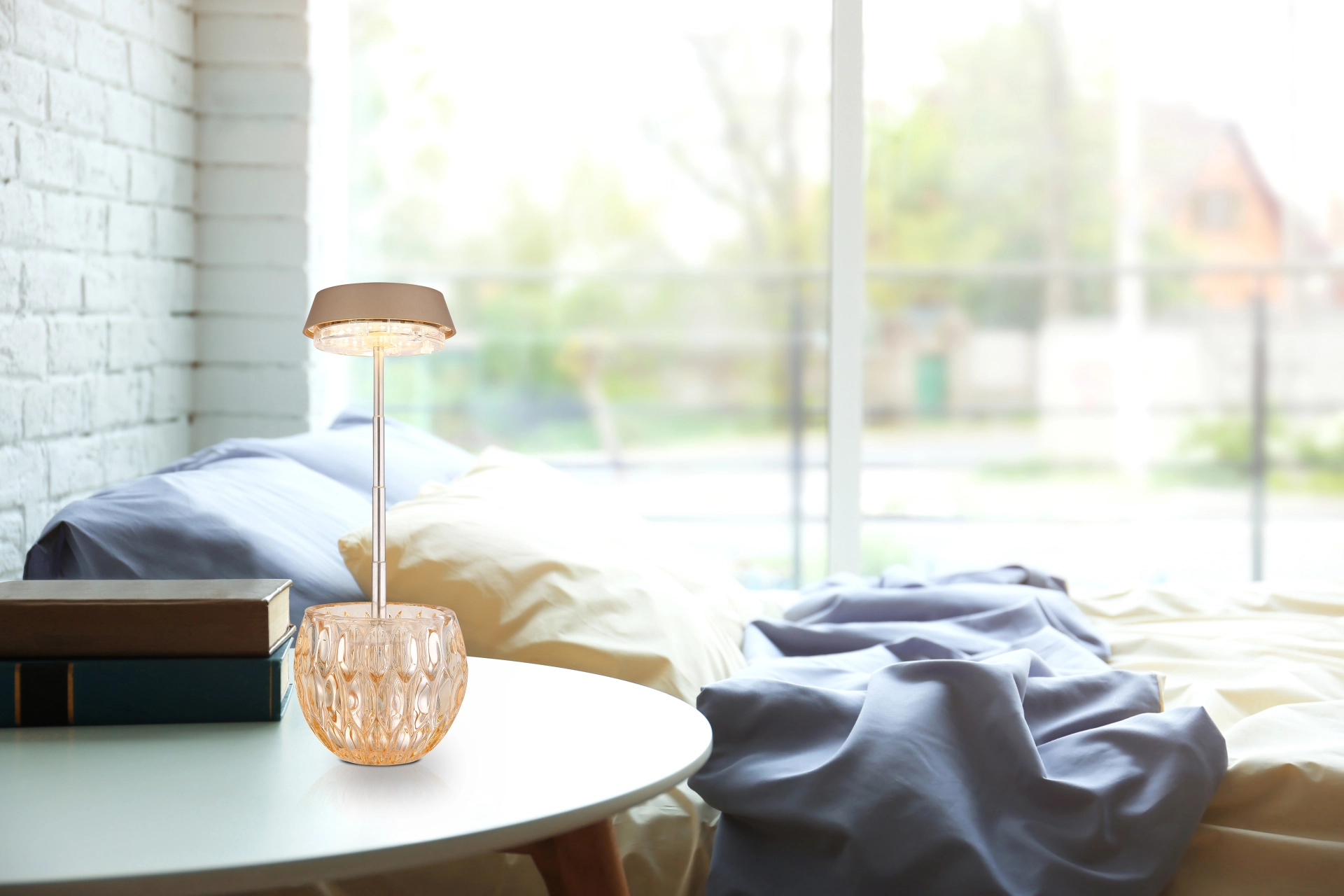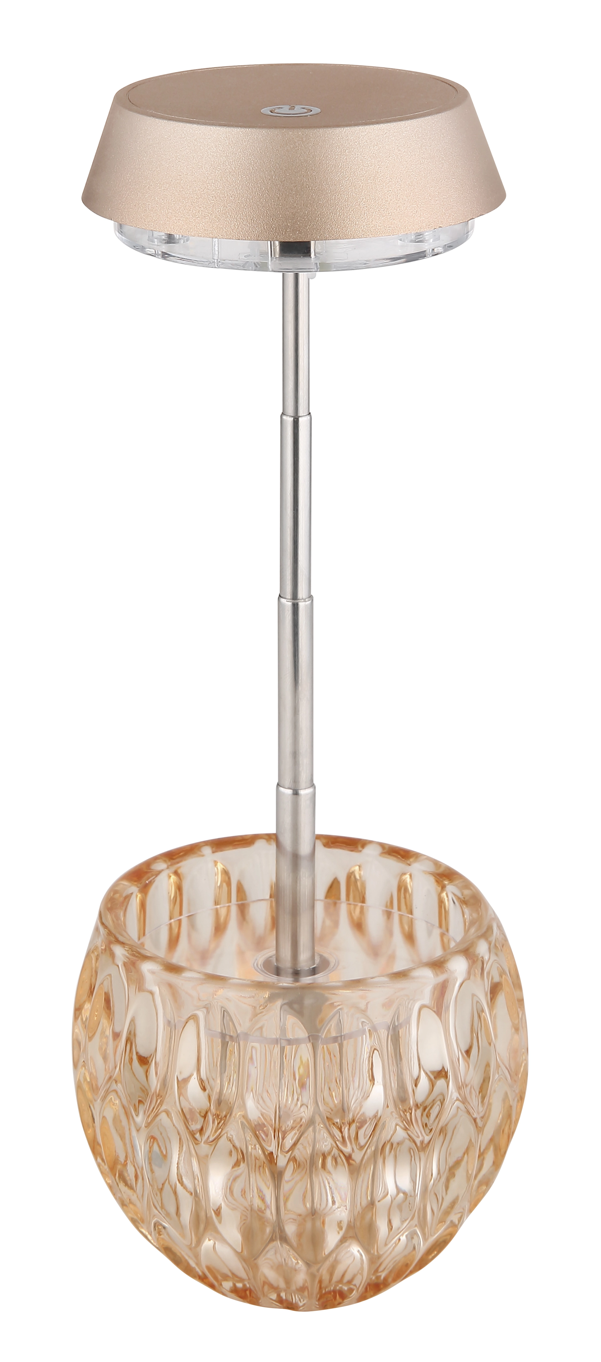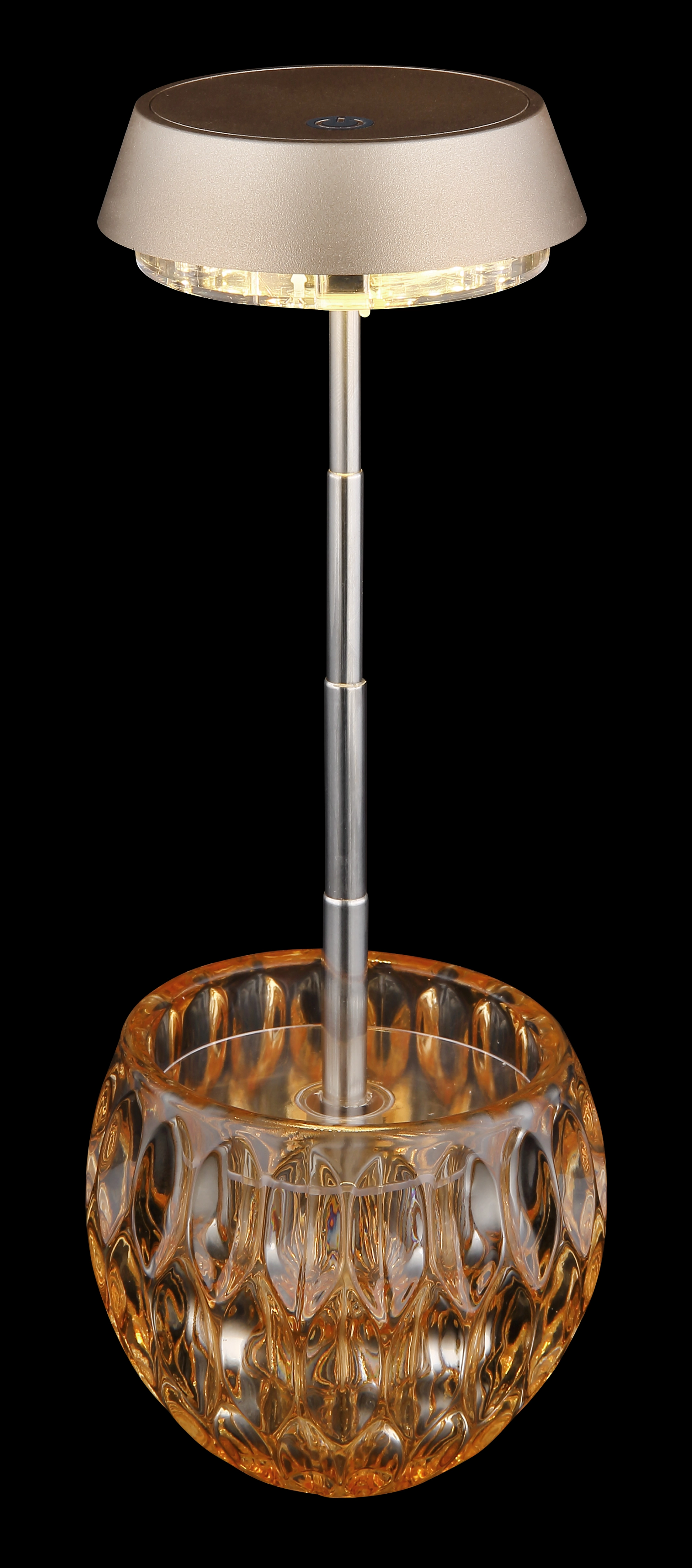 The WANDA table lamp combines stylish design with practical functionality. With its round body made of amber-colored glass and stainless ... Read more Read more