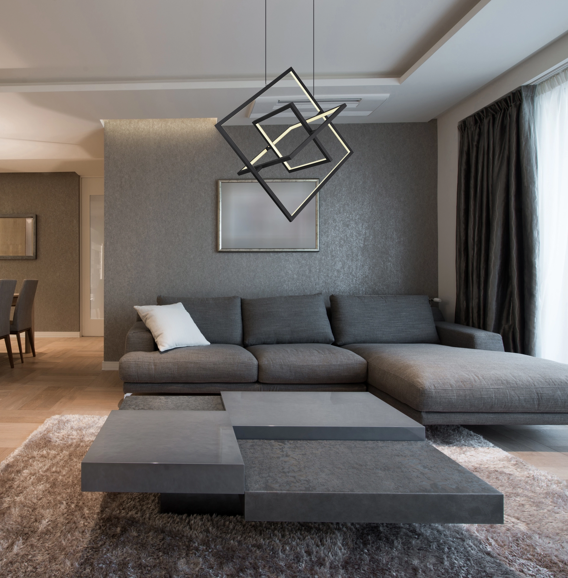 This modern pendant lamp convinces with great design and its functions. From a rectangular ceiling fixture made of black metal, ... Read more Read more