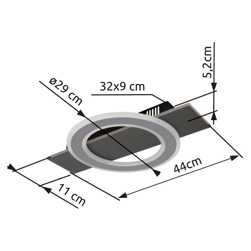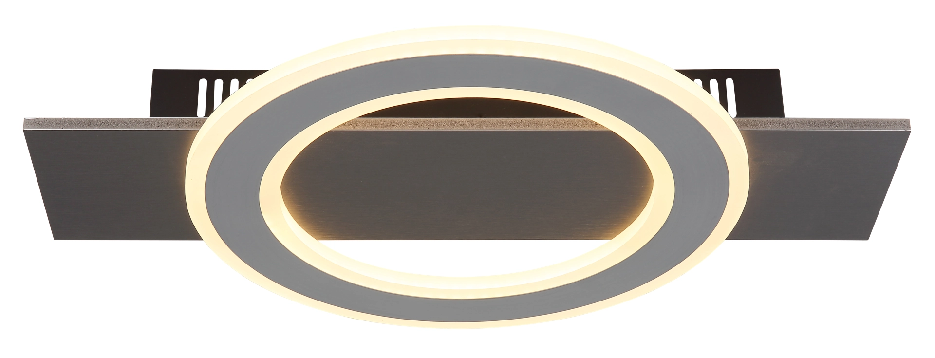 Le plafonnier JAYDEN est une solution attrayante et moderne pour l'éclairage des pièces. Son design rond d'un diamètre de 480 mm s'intègre parfaitement dans n'importe quelle décoration. Le corps est en métal anthracite brossé, tandis que l'abat-jour est en métal acrylique gris, brossé et opale. Cette combinaison crée une lumière douce et diffuse qui crée un effet chaleureux et invitant. La lampe a une puissance élevée de 1100 lumens dans un blanc chaud (3000K) pour créer une atmosphère agréable et paisible. Le plafonnier JAYDEN est idéal pour éclairer les salons, les bureaux ou les chambres d'hôtel afin de créer un éclairage élégant et moderne.