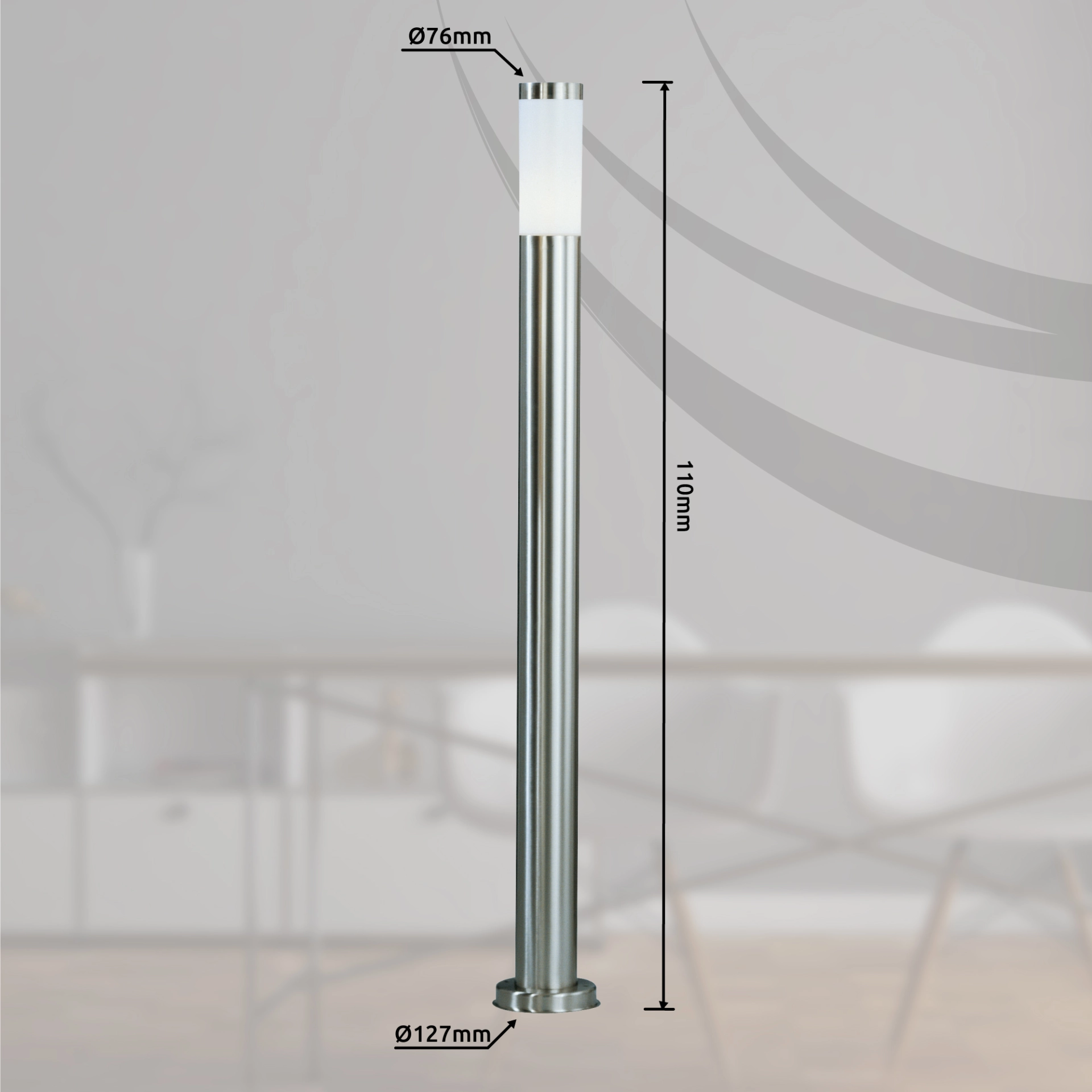 Cette élégante lampe de base de la série Boston LED se caractérise par son design élégant et sa grande finition. La lampe d’extérieur profilée est idéale pour une utilisation en extérieur en raison de son degré de protection IP44. Ce modèle est fabriqué en acier inoxydable et en plastique opale et a une taille totale de 1,1 mètre. L’ampoule LED incluse a une luminosité de 500 lumens et une couleur de lumière agréable de 3000K. Avec d’autres lampes de base et appliques murales de la même série de produits, vous pouvez compléter le tableau.