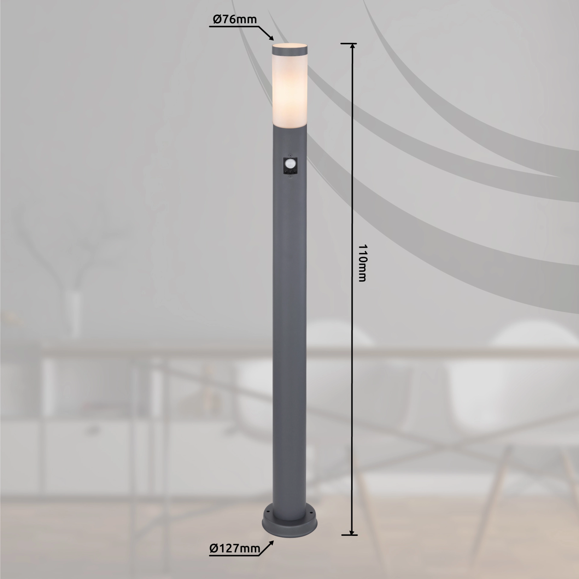 La lampe d’extérieur cylindrique Boston en acier inoxydable anthracié et plastique opale est merveilleuse pour votre jardin. Le luminaire extérieur de 110 cm peut être fixé sur des surfaces planes à l’aide de la base circulaire (ø 12,7 cm) et dispose également d’un détecteur de mouvement. Dans le plastique opale, vous pouvez utiliser une ampoule E27 de votre choix, ce qui vous donne la possibilité de déterminer la couleur et la luminosité de la lumière en fonction de vos idées. Avec la lampe d’extérieur Boston, vous pouvez définir des accents élégants dans votre espace extérieur.