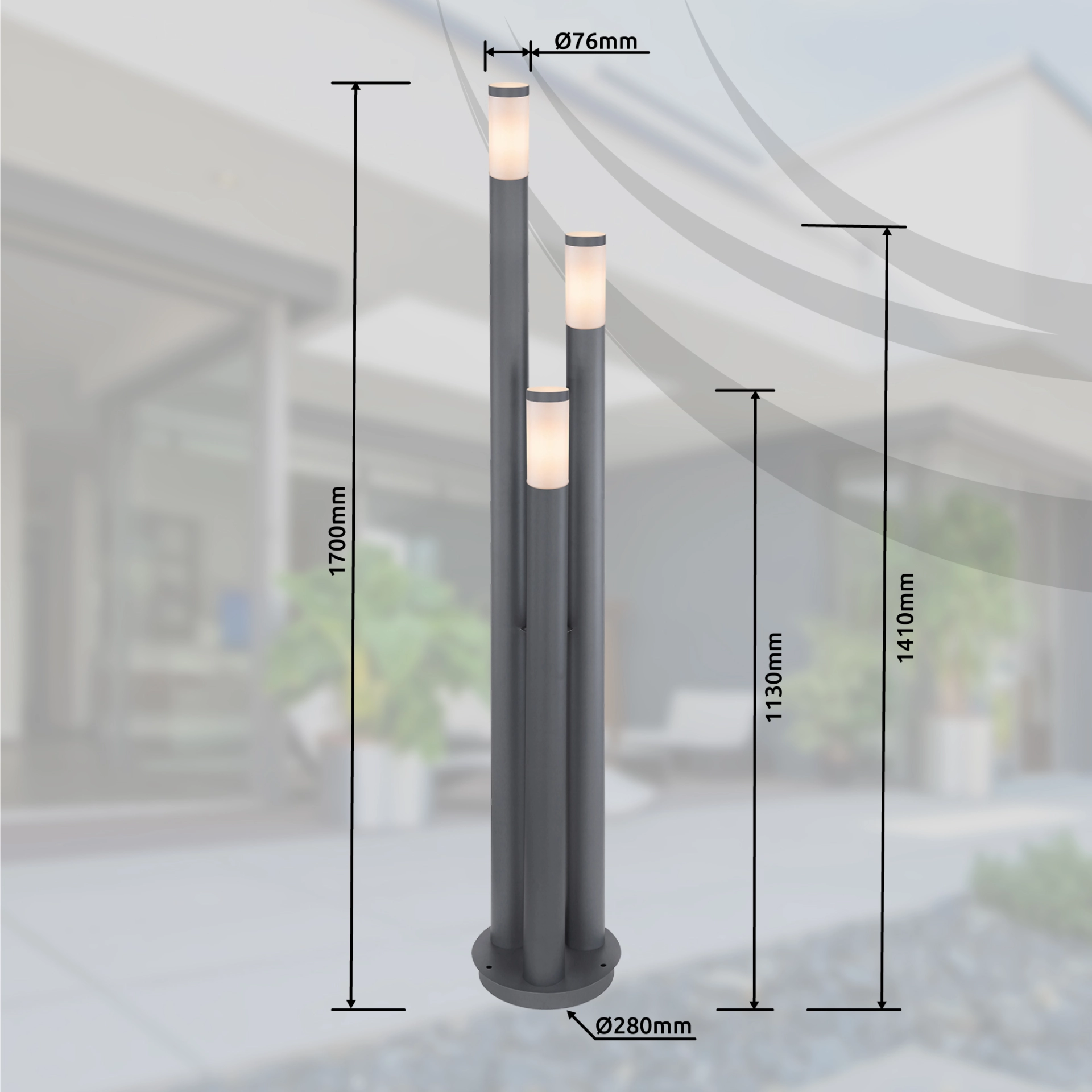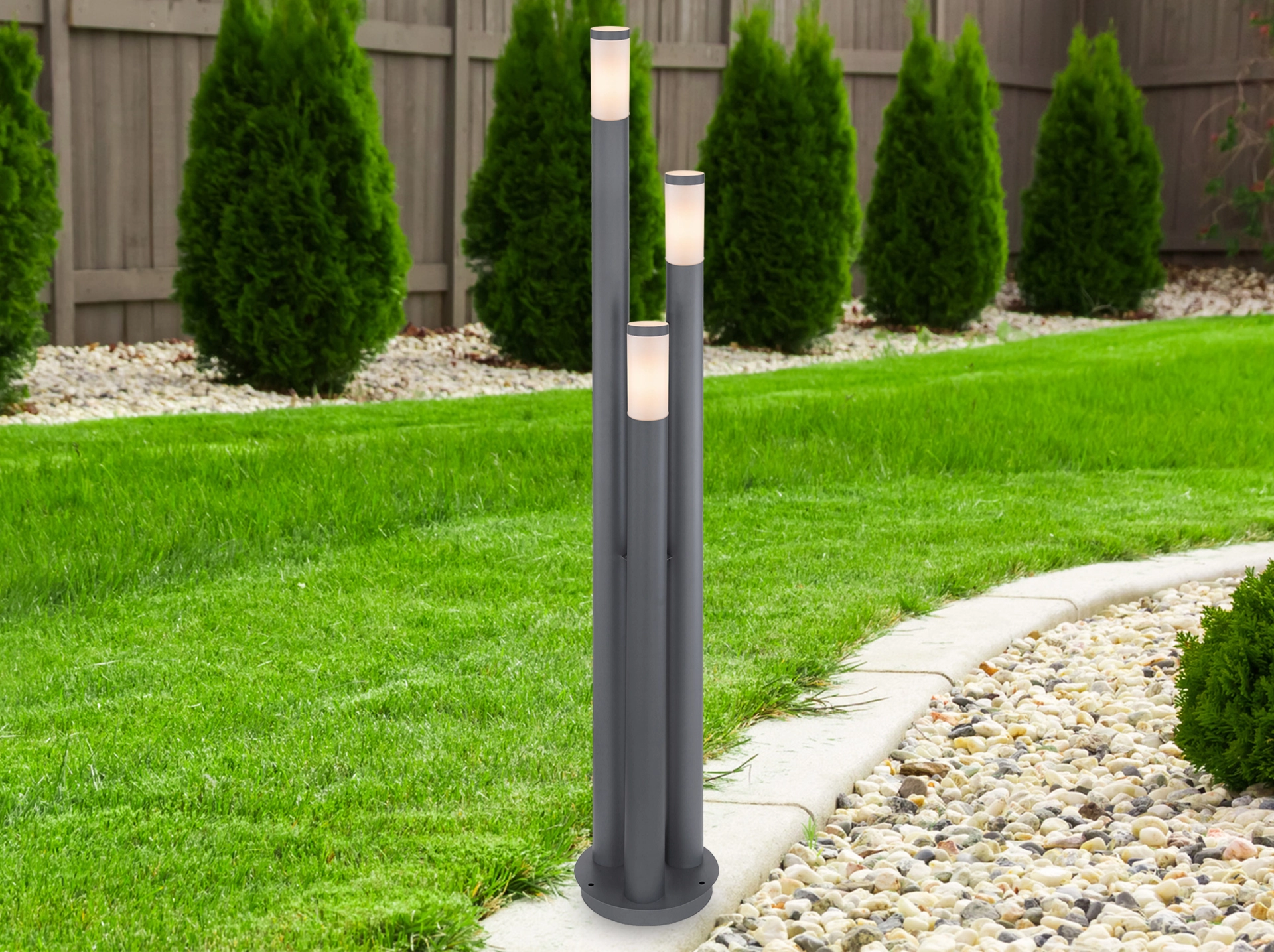 Cette élégante lampe d’extérieur de la série Boston se caractérise par son design élégant et sa grande finition. La lampe profilée en acier inoxydable de couleur anthracite, est idéale pour une utilisation en extérieur en raison de sa classe de protection IP44. Ce modèle a une hauteur totale de 170 cm et est équipé de trois prises E27 (max. 60W). En raison des économies d’énergie et de la longévité, nous vous recommandons d’utiliser des ampoules LED. Pour compléter le tableau d’ensemble dans le jardin, nous vous recommandons d’utiliser d’autres modèles de cette série. Un accroche-regard est certainement garanti.