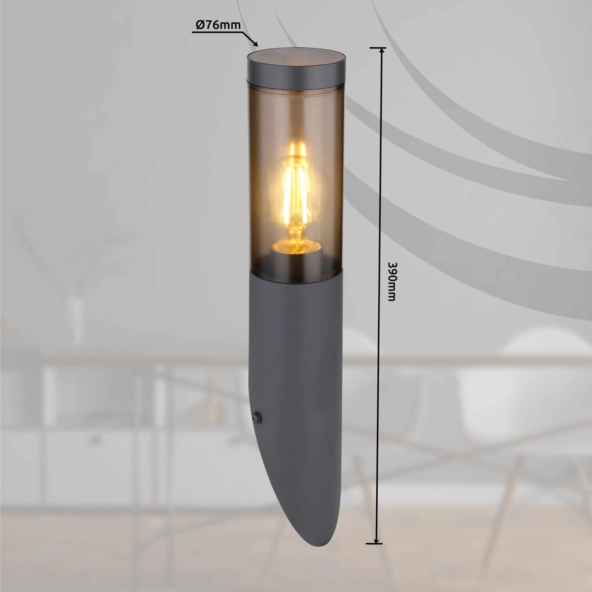 Cette élégante applique murale extérieure de la série Boston se caractérise par son design élégant et sa grande finition. La lampe d’extérieur profilée est idéale pour une utilisation en extérieur en raison de son degré de protection IP44. Ce modèle est fabriqué en acier inoxydable et en plastique en anthracite et a une taille totale de 40cm. La lampe est équipée d’une douille E27 et vous permet d’utiliser une ampoule (max. 23W) de votre choix. En raison de leur économie d’énergie et de leur longévité, nous recommandons les lampes LED. Avec d’autres lampes de base et appliques murales de la même série de produits, vous pouvez compléter le tableau.