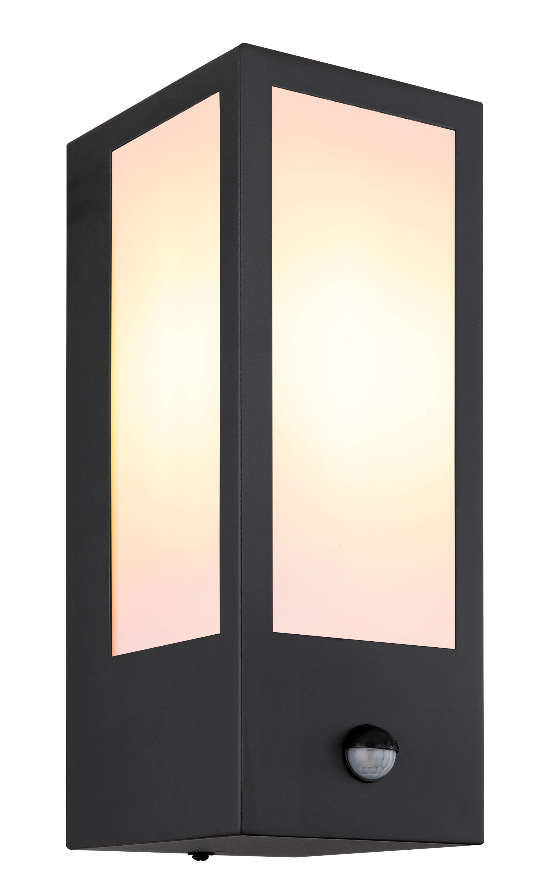 Cette lampe d’extérieur moderne séduit par son design sobre et élégant en verre acrylique et métal. Le luminaire noir est composé d’une structure métallique rectangulaire (12 x 32 cm), entourée de panneaux en verre acrylique opalin sur chaque côté. La douille E27 vous permet de choisir la couleur et l’intensité de la lumière jusqu’à 60 watts selon vos envies. Un autre atout de ce luminaire est son capteur intégré, qui détecte les mouvements dans un rayon de 4 à 8 mètres et un angle de 110°. Grâce à son indice de protection IP44, il est protégé contre les éclaboussures d’eau et convient parfaitement à une installation en extérieur.