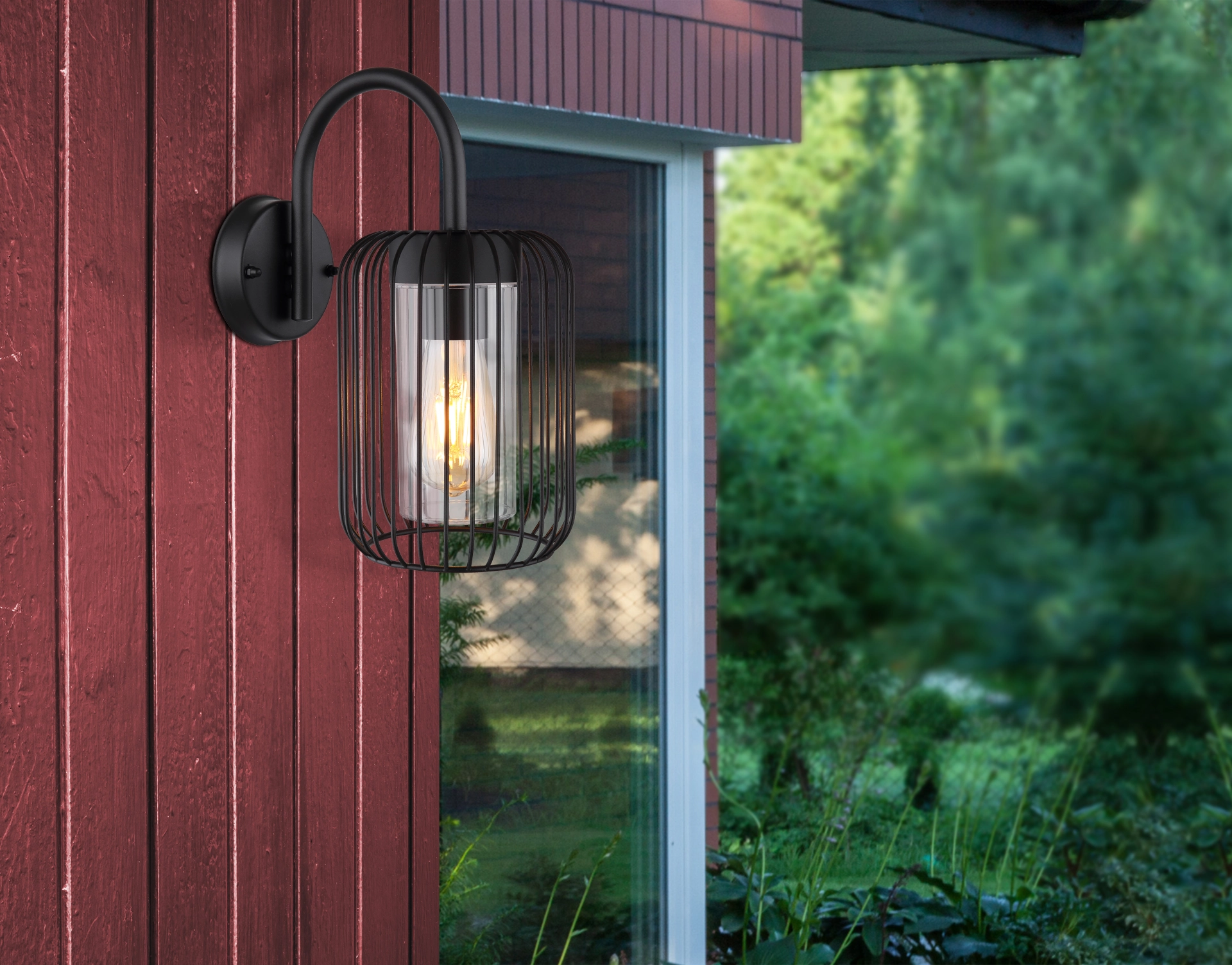 Cette lampe d’extérieur moderne convainc par son beau design en verre et en métal. La lampe en noir se compose d’une cage métallique rectangulaire (12x32cm) et d’un beau mur de verre avec des décorations de chaque côté. La prise E27 vous permet de déterminer la couleur de la lumière et la luminosité jusqu’à une ligne maximale de 60 watts. Le degré de protection IP44 contre les éclaboussures d’eau garantit que le luminaire est installé à l’extérieur.