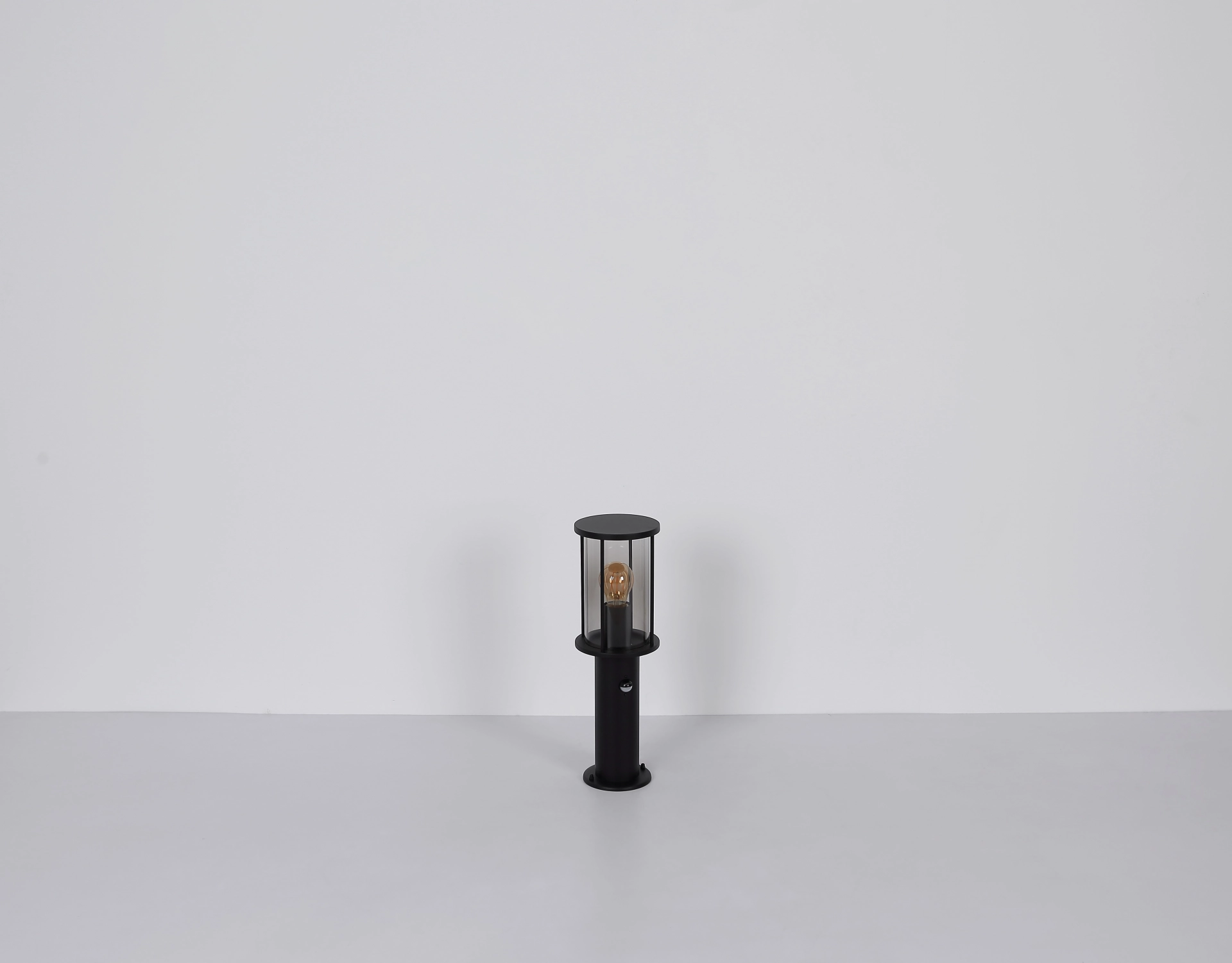 La lampe d’extérieur de la série GRACEY a un boîtier en acier inoxydable noir mat et un abat-jour en verre de couleur fumée. Les tiges métalliques entourant l’abat-jour sont également noir mat. Le degré de protection du luminaire est IP54. Les dimensions de la lampe sont ø143mm x H600mm. La lampe est destinée à une lampe à incandescence E27 avec un maximum de 60W et 230V. Ceci n’est pas inclus dans la livraison et doit être acheté séparément.