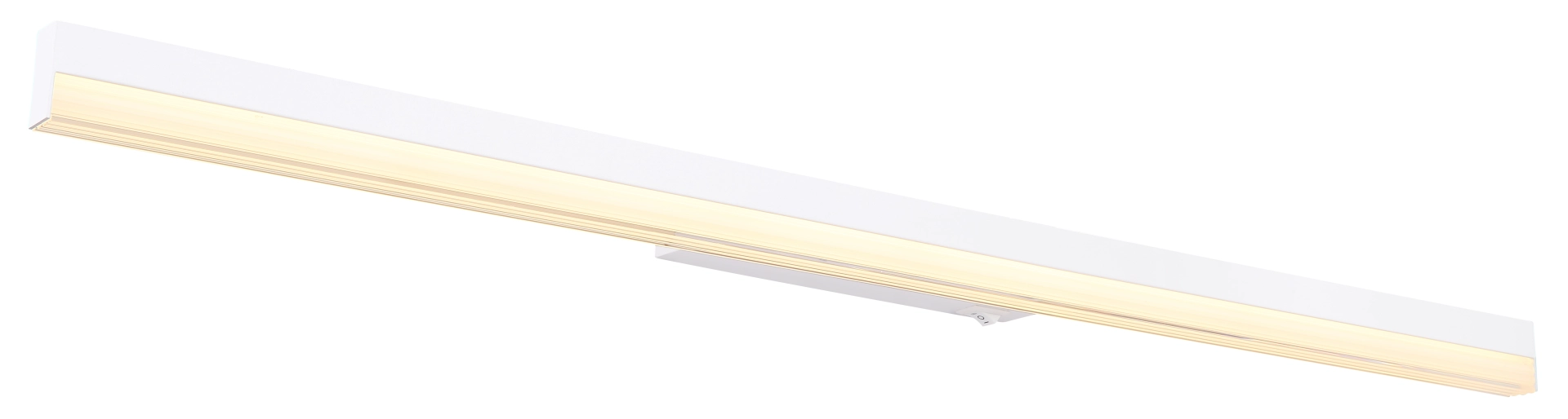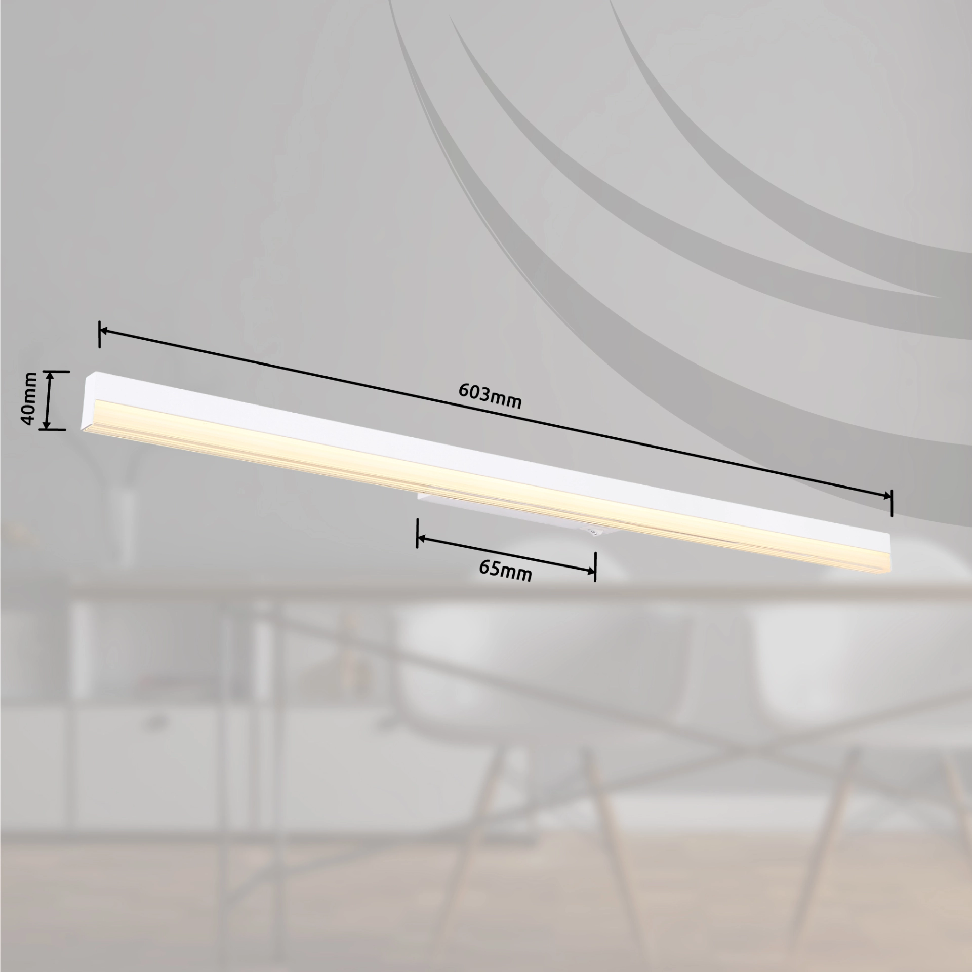 L’applique est faite de métal blanc mat et d’aluminium blanc mat, ainsi que d’acrylique opale, disposée dans un diamètre de 800 mm x 40 mm x 65 mm (longueur x largeur x hauteur). Le luminaire est alimenté par une ampoule LED d’une puissance de 18 W et d’une tension de 230 V. La source lumineuse a une luminosité de 2200 lm source et une puissance de sortie de 1300 lm à une température de couleur de 3000/6000K. Cette applique murale attire vraiment le regard et est idéale pour les espaces de vie modernes. Avec l’interrupteur à bascule sur l’article et le changeur de robinet, vous pouvez régler la luminosité individuellement. Les couleurs sont réparables et peuvent être commutées entre 3000K ou 6000K. L’applique a une taille de 800 mm x 40 mm x 65 mm (longueur x largeur x hauteur) et une hauteur de suspension de 65 mm. Il est idéal pour les pièces avec des plafonds bas ou comme élément central dans une pièce. La luminosité de la lampe LED fournit un éclairage agréable qui baigne la pièce d’une lumière chaude.