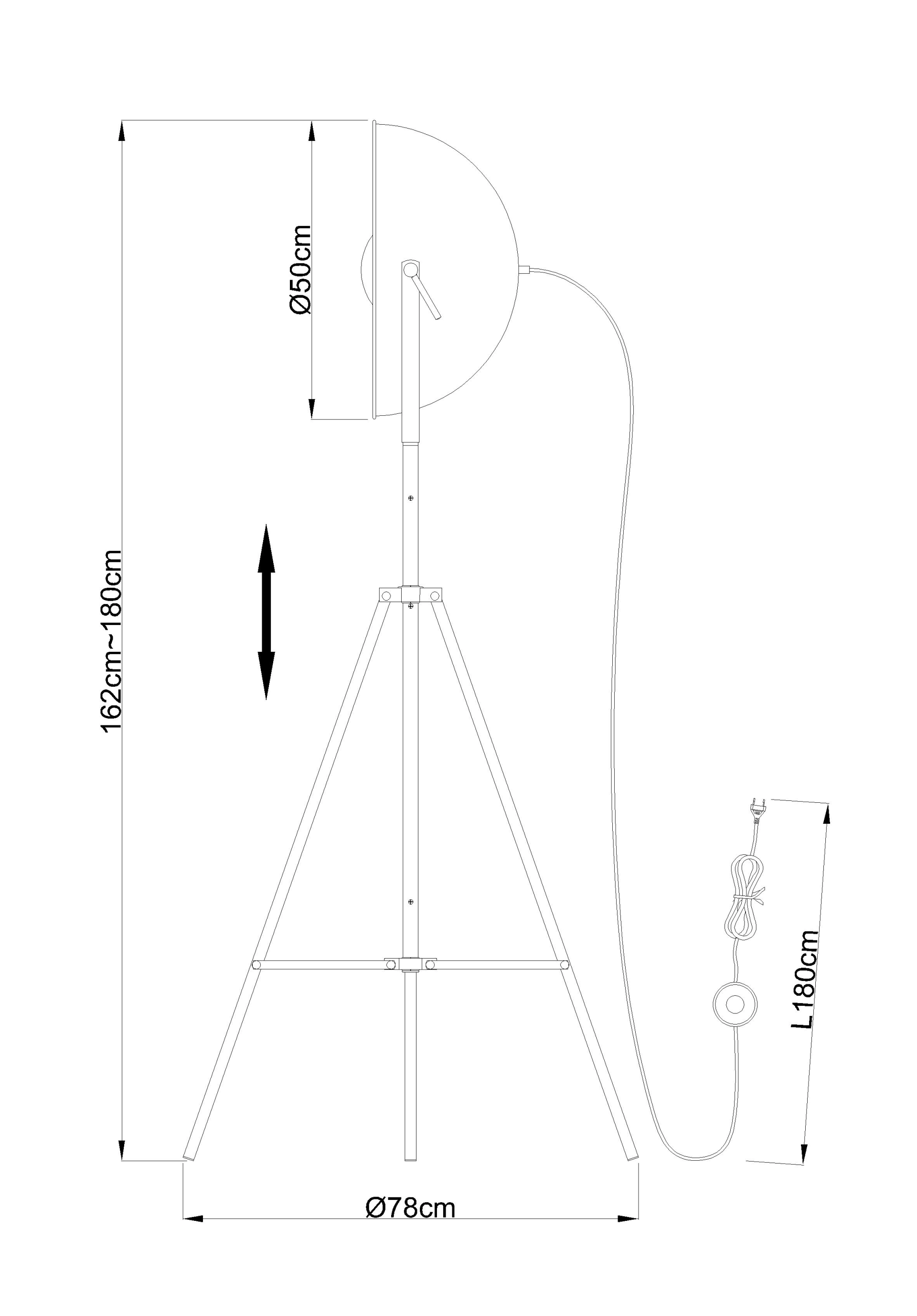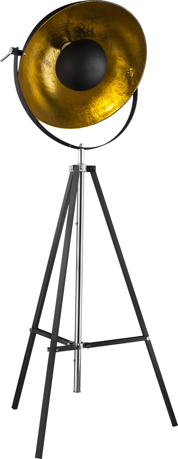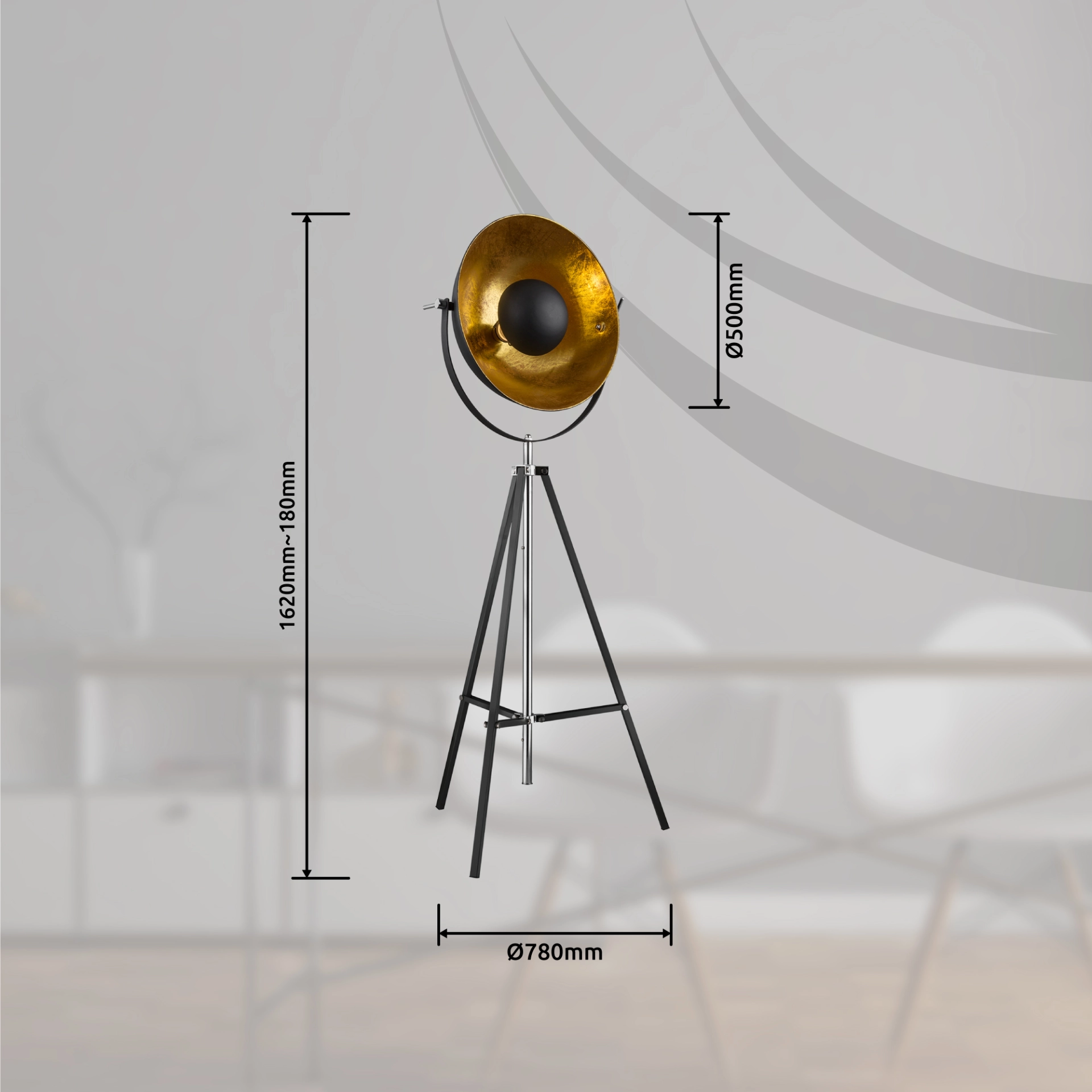 Ce lampadaire noir à trois pattes, de la série Xirena, impressionne par son look original et accrocheur. L’abat-jour est pivotant et doré à l’intérieur. De plus, cette lampe est réglable en hauteur, est actionnée par un interrupteur marche-arrêt et dispose d’une prise E27, pour laquelle une ampoule jusqu’à une puissance de 60 watts peut être librement sélectionnée.