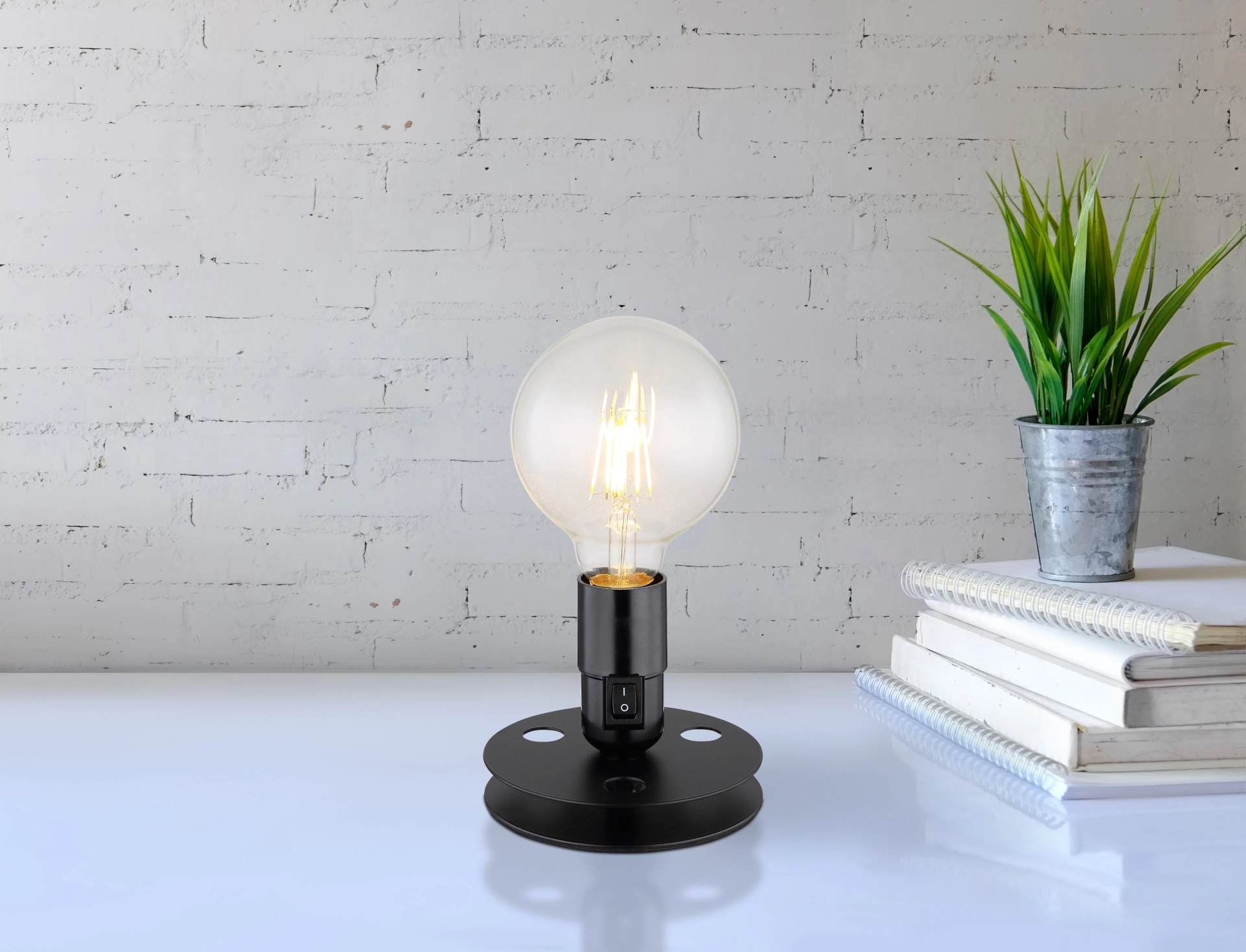 Cette lampe de table simple est une excellente extension de votre décoration intérieure. Sur une base noire mate (Ø12cm) sur laquelle le câble de 1,5 m de long peut être enveloppé, il y a une douille E27 en noir, qui peut être équipée d’une ampoule de votre choix, jusqu’à une puissance maximale de 40 watts.