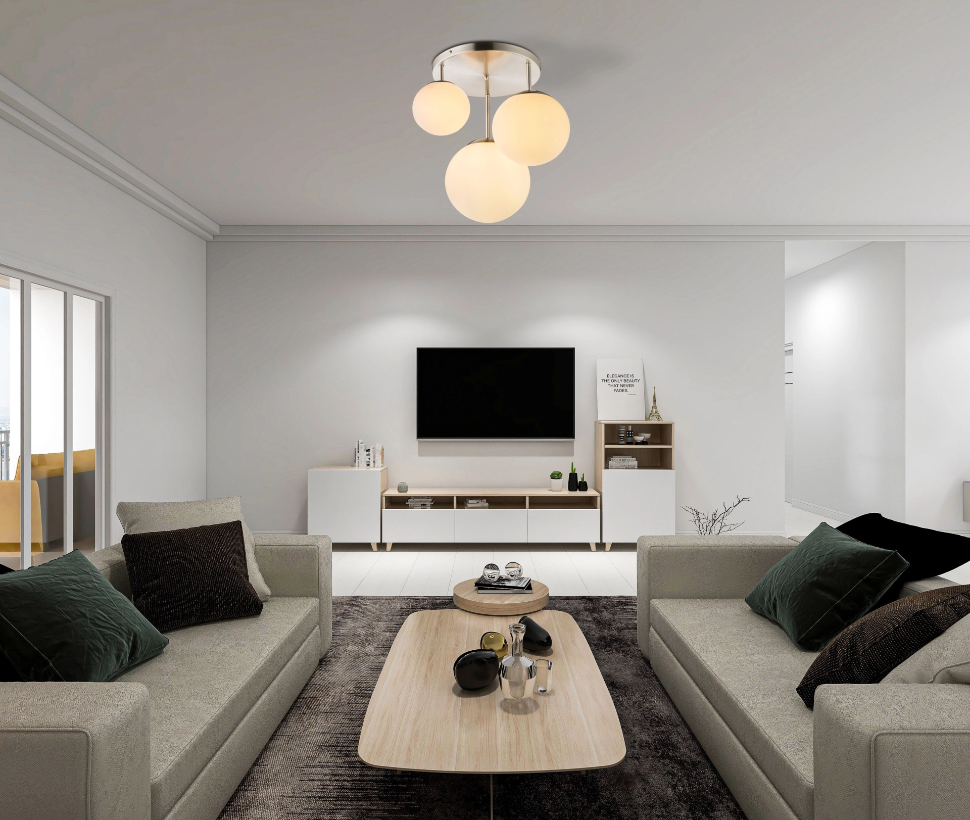 Le plafonnier élégant et en même temps moderne Joel, attire l’attention dans chaque salon. Les sphères lumineuses de différentes tailles (Ø15cm, Ø20cm et Ø25cm) en verre opale blanc fixées à la suspension ronde permettent, grâce aux prises E27 intégrées, la libre sélection (max. 60W / l’une d’entre elles « forme goutte ») de sources lumineuses. En raison de leur économie d’énergie et de leur longévité, nous recommandons les lampes LED. Cette série de modèles vous offre d’autres possibilités pour rendre votre espace de vie d’une beauté saisissante.