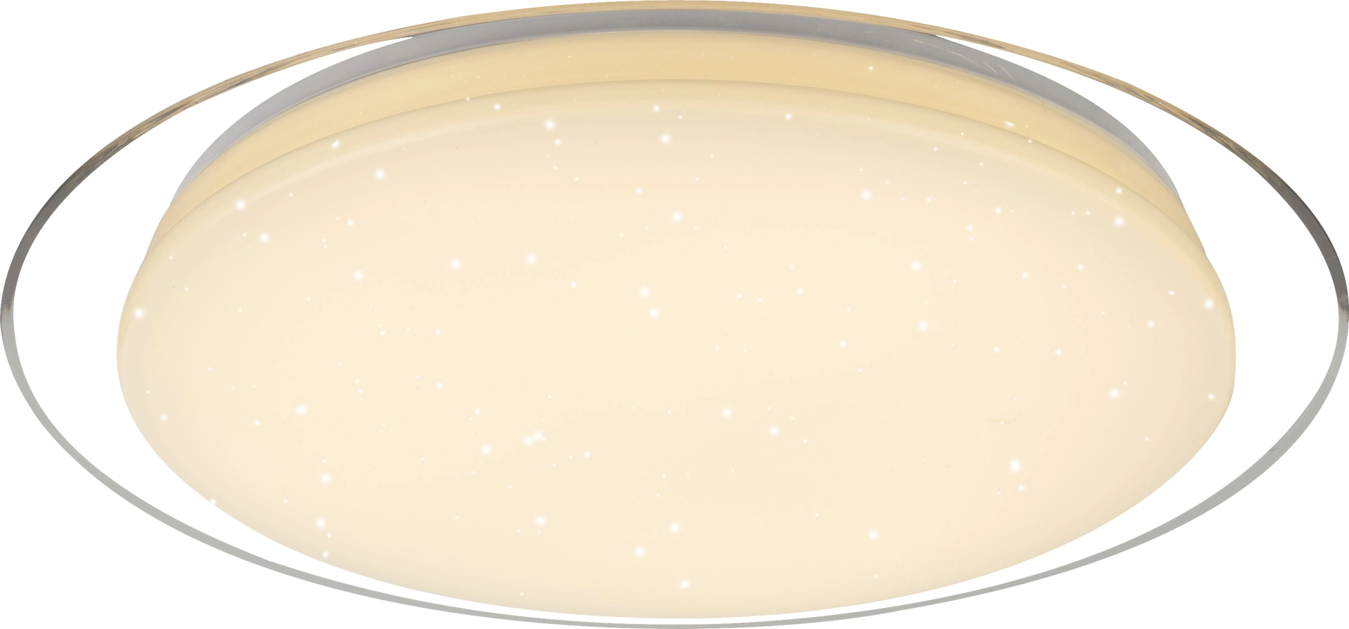 Ce plafonnier de forme ronde, de la série Optima, se caractérise par son aspect adaptable. Pour ce bijou, du métal en blanc, des éléments chromés, de l’acrylique transparent, du plastique satiné et un décor Sparkle ont été utilisés. Avec un diamètre de 45,5 cm, il est particulièrement adapté aux grandes pièces. Avec une puissance de 2600 lumens et une lumière chaude de 3000-6000K jusqu’à la lumière du jour, cette lampe a également une fonction dimmable. Avantageux sont la télécommande et le changeur de couleur avec fixation des couleurs. Laissez votre maison briller sous un nouveau jour et complétez le tableau avec d’autres lampes de cette série.
