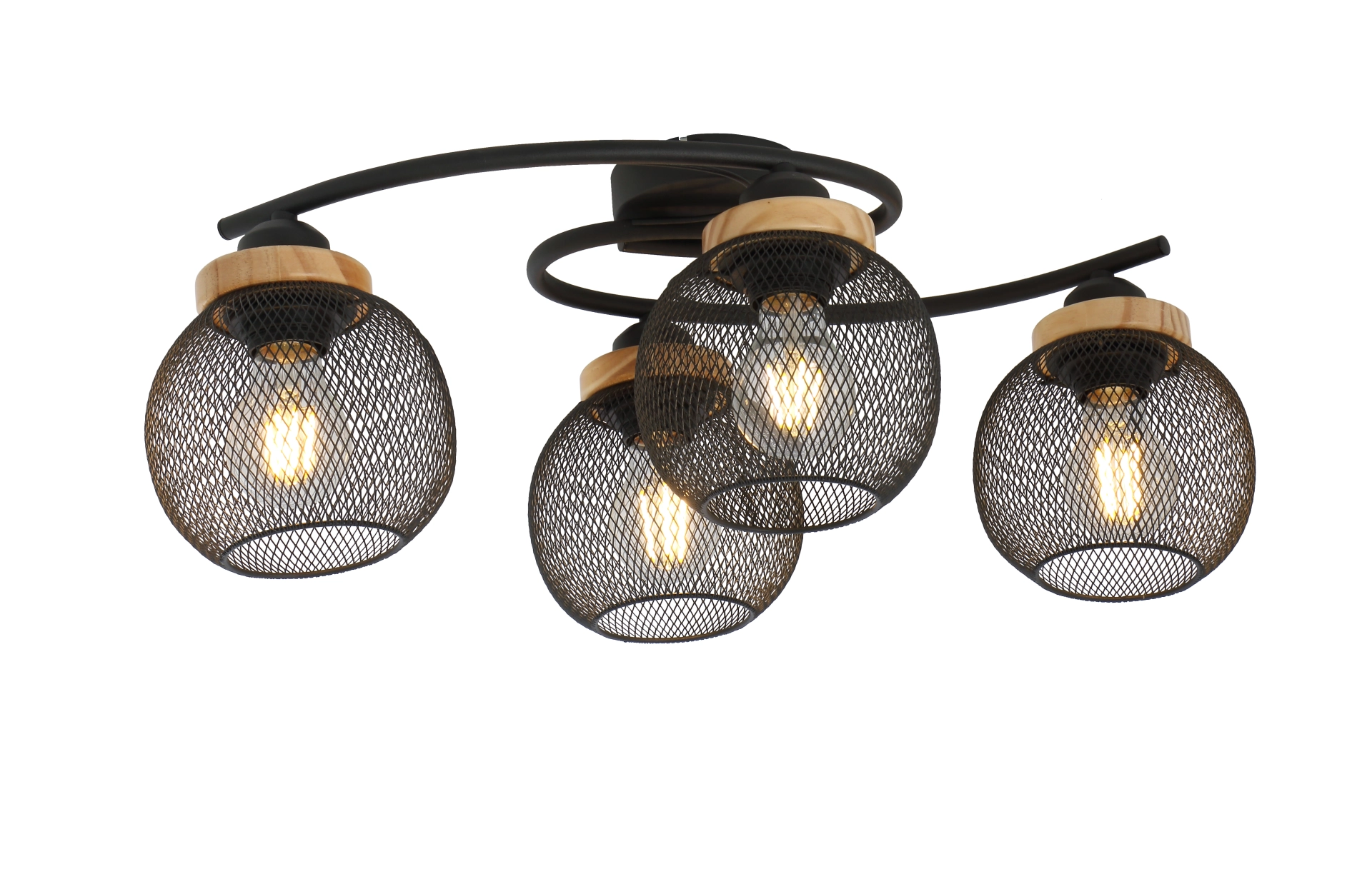 Ce plafonnier de la série Pablo (60x35 cm) est un bel ajout à vos intérieurs. Il se compose d’une tige en métal noir mat magnifiquement incurvée à laquelle sont fixées quatre vitres en bois avec des nuances en treillis métallique incurvé. Vous pouvez les équiper d’ampoules E27 de votre choix, ce qui vous donne la possibilité de déterminer individuellement la couleur et la luminosité de la lumière. Avec d’autres modèles de cette série, vous pouvez compléter l’image globale dans vos quatre murs.