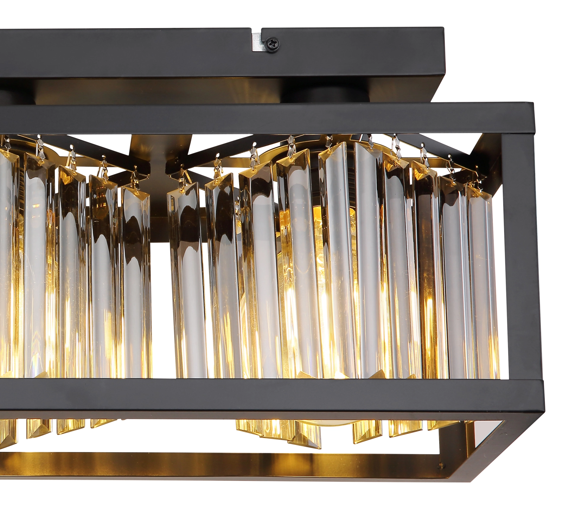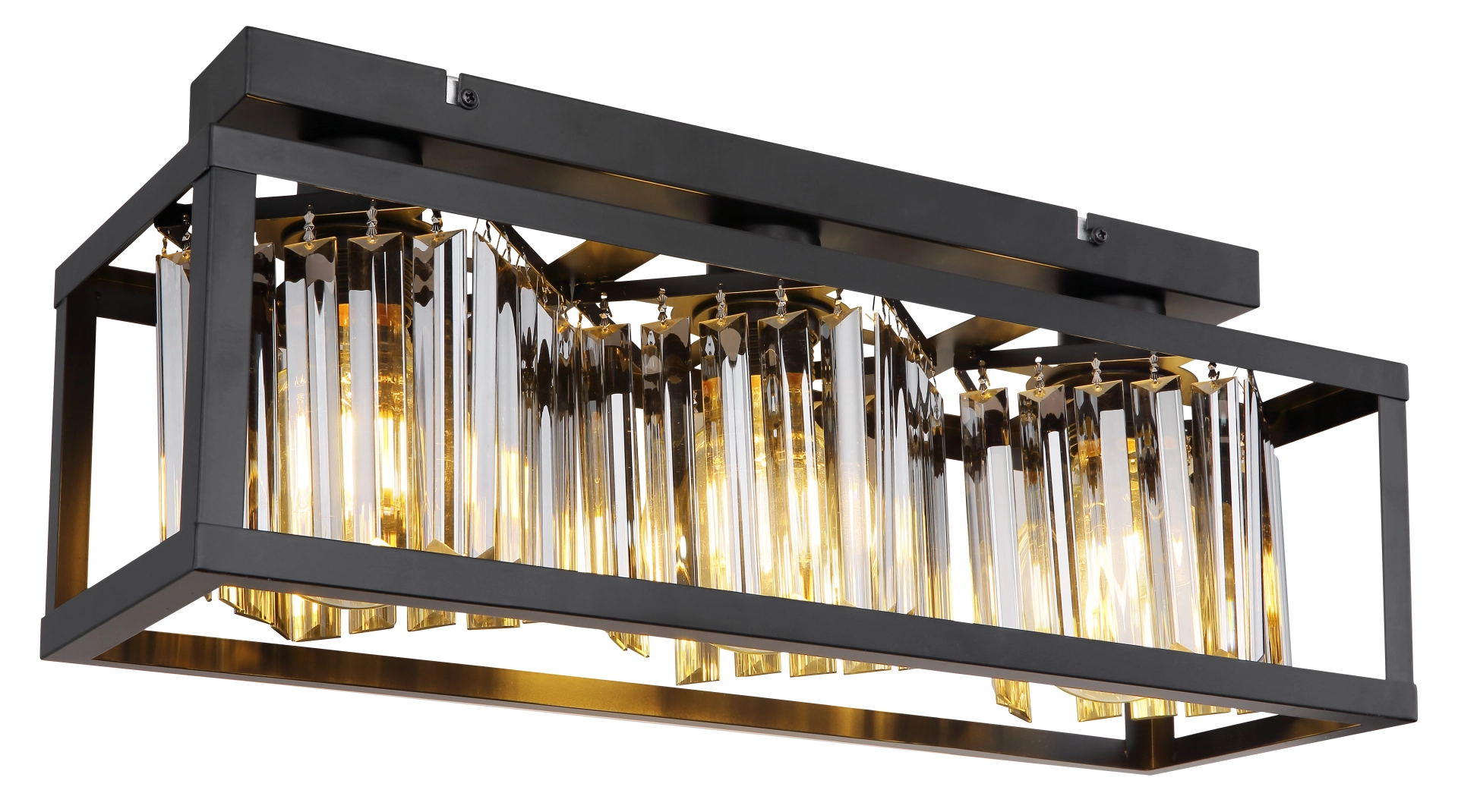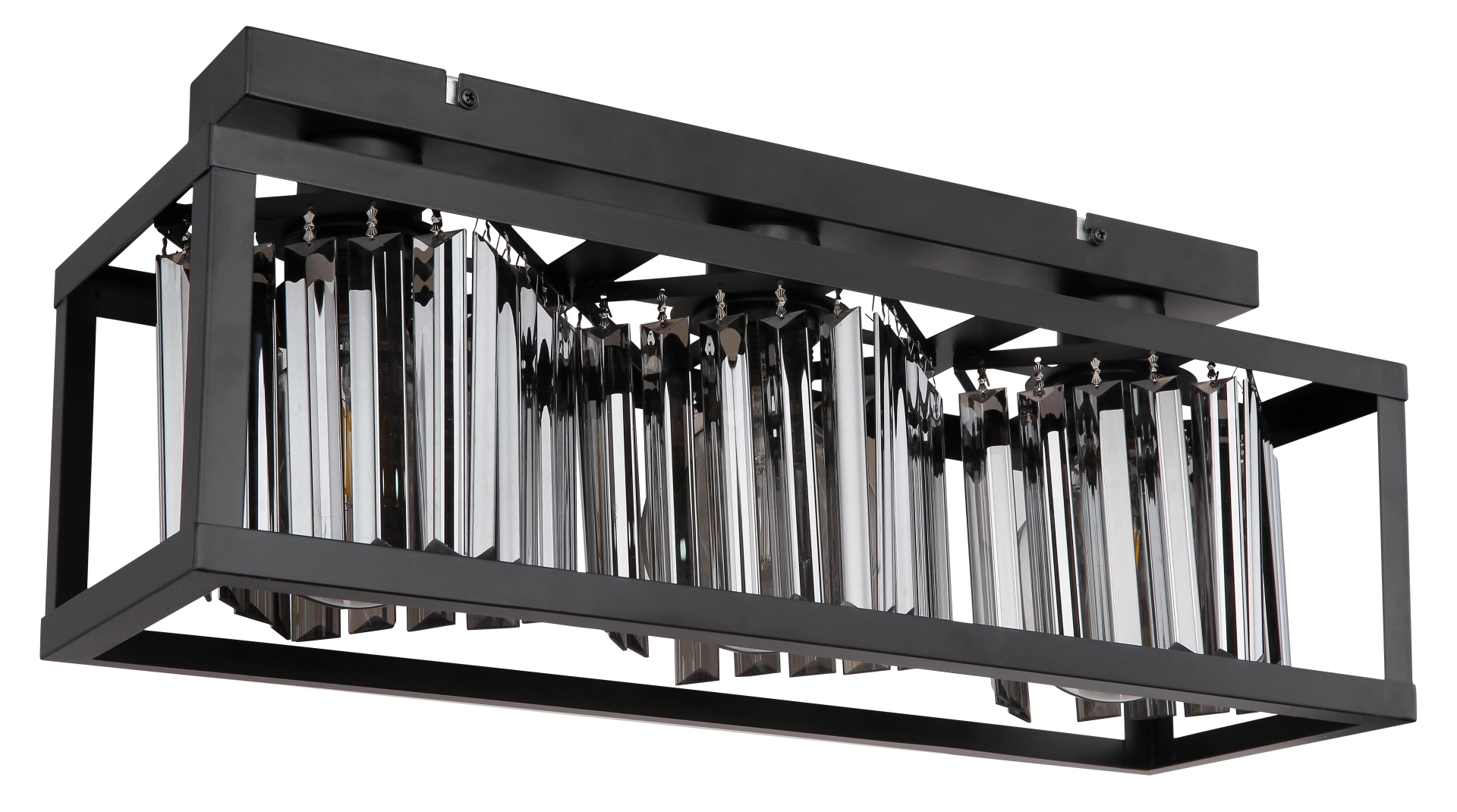 Ce magnifique plafonnier inspire par son superbe design et devient l’accroche-regard de chacune de vos pièces. Composée d’une cage rectangulaire noire mate (51x17cm) avec une variété de tiges de verre à l’intérieur, la lampe a une hauteur de 20,5cm. Trois prises E27, jusqu’à une puissance maximale de 40 watts, vous donnent le libre choix de la source lumineuse. Définissez des accents.