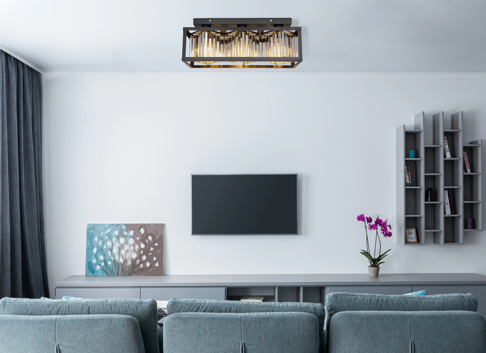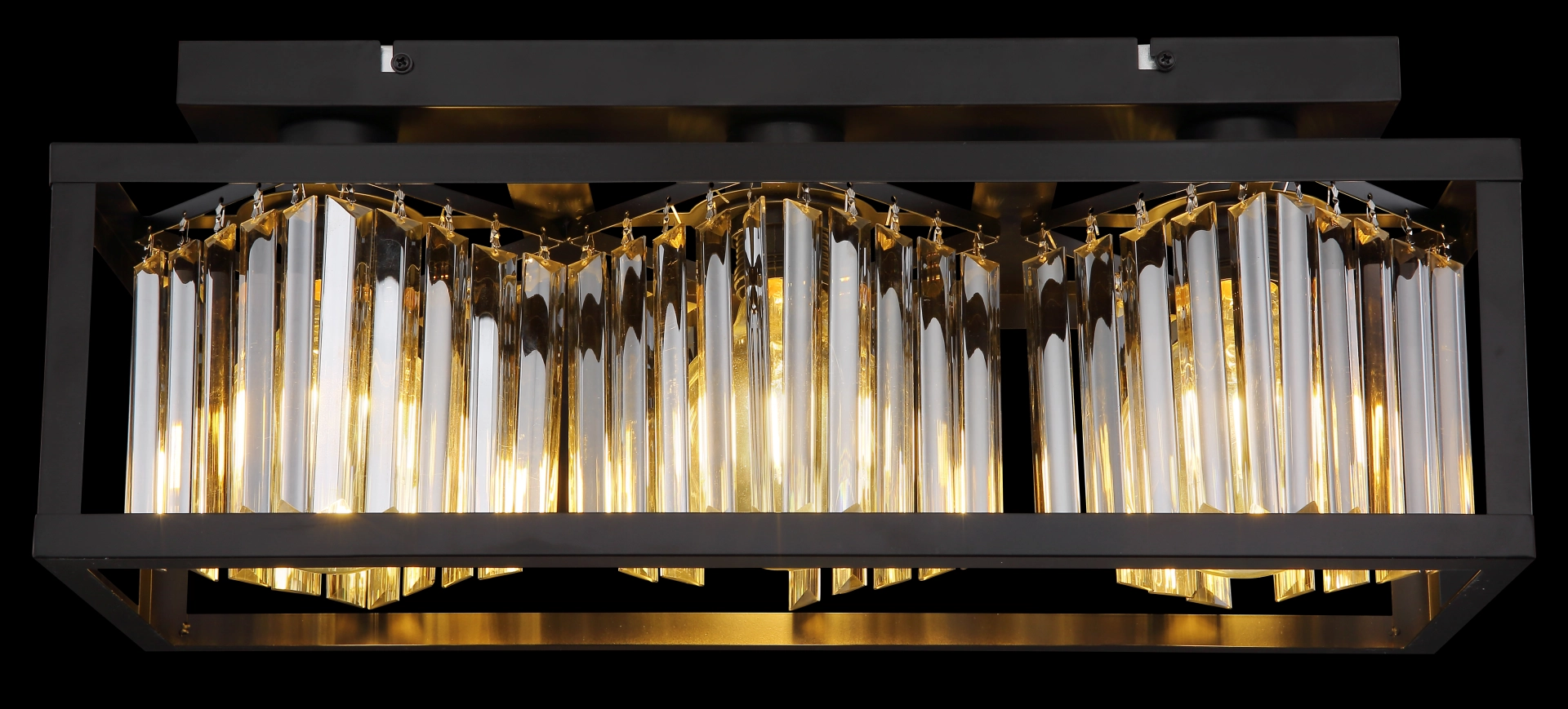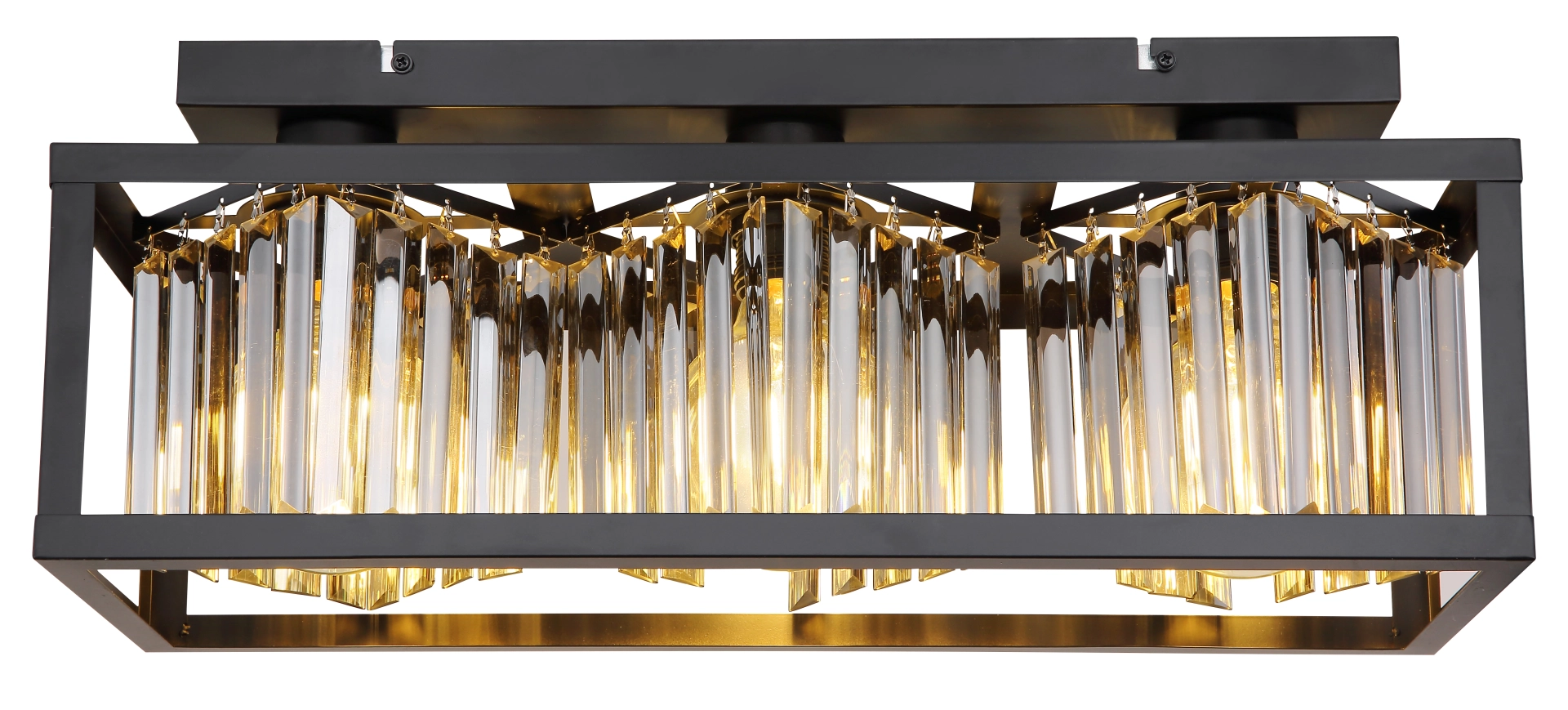 Ce magnifique plafonnier inspire par son superbe design et devient l’accroche-regard de chacune de vos pièces. Composée d’une cage rectangulaire noire mate (51x17cm) avec une variété de tiges de verre à l’intérieur, la lampe a une hauteur de 20,5cm. Trois prises E27, jusqu’à une puissance maximale de 40 watts, vous donnent le libre choix de la source lumineuse. Définissez des accents.