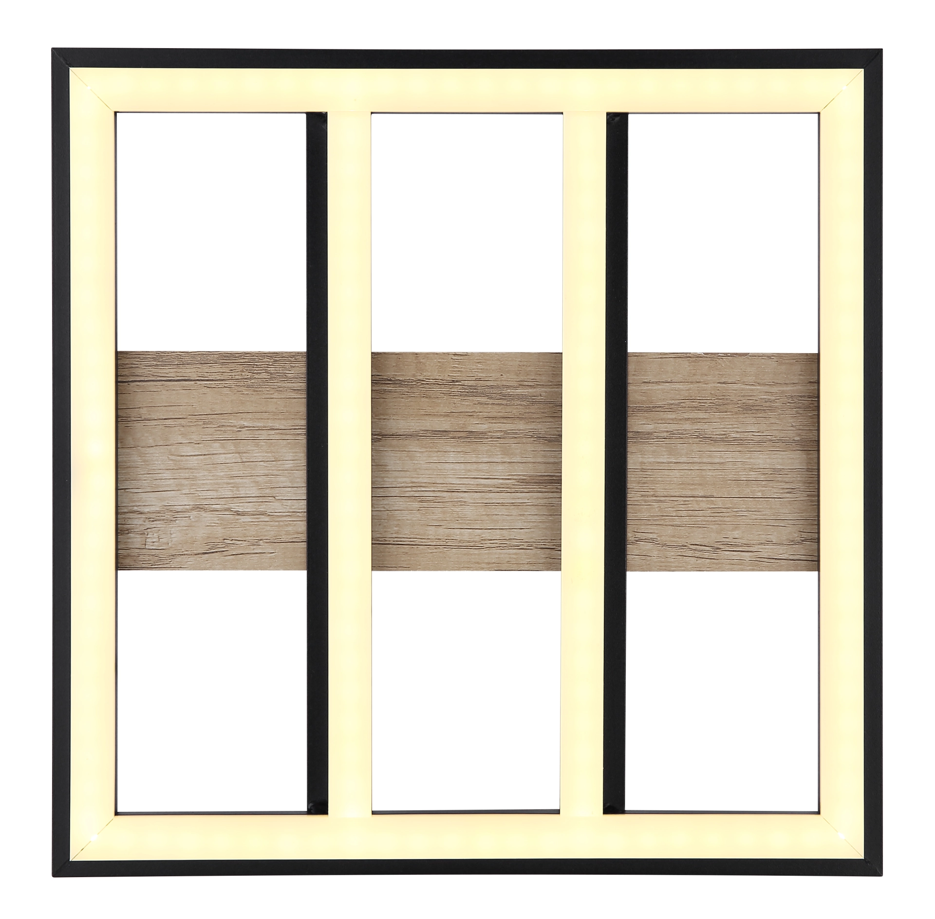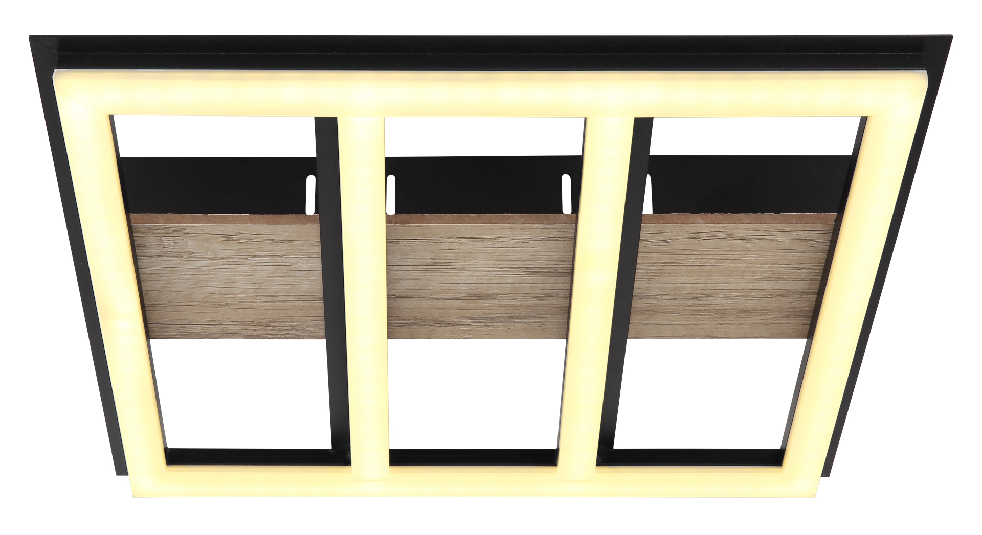 Le plafonnier galbé de la série LEA inspire par son design simple. Sur un plafond noir mat, il y a un cadre carré en MDF de forme en aspect bois (30 x 30 cm) avec un couvercle en plastique opale. Un panneau LED inclus fournit une lumière blanche chaude de 3000 Kelvin et assure ainsi une atmosphère agréable.